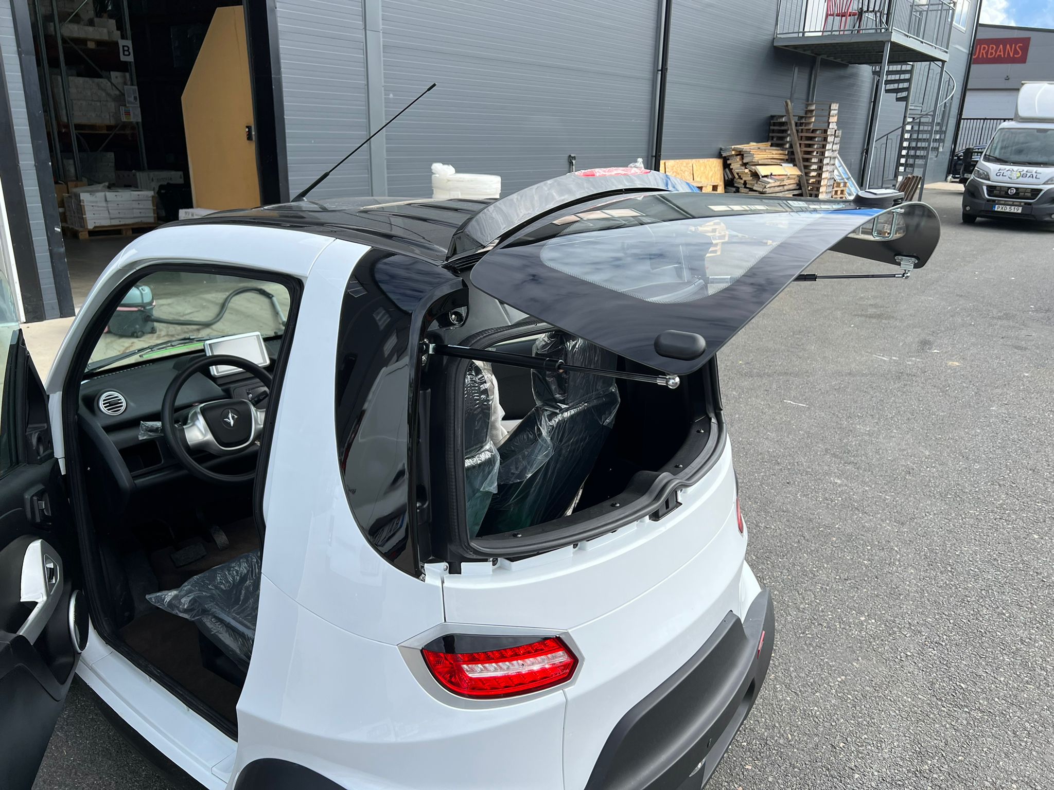 Mopedbilen har ett premiumpaket med AC, Kupévärmaruttag DEFA inklusive sladd,
