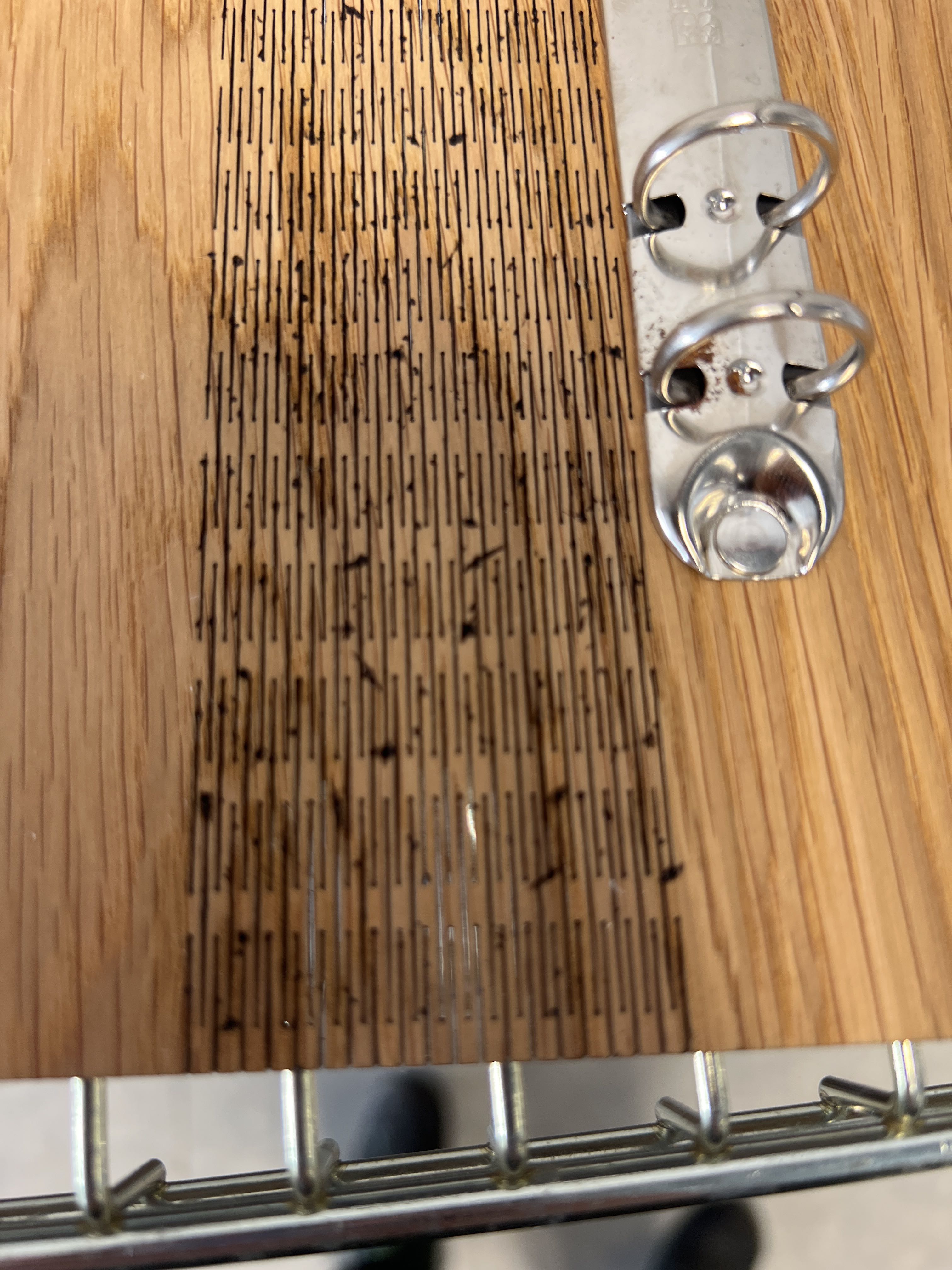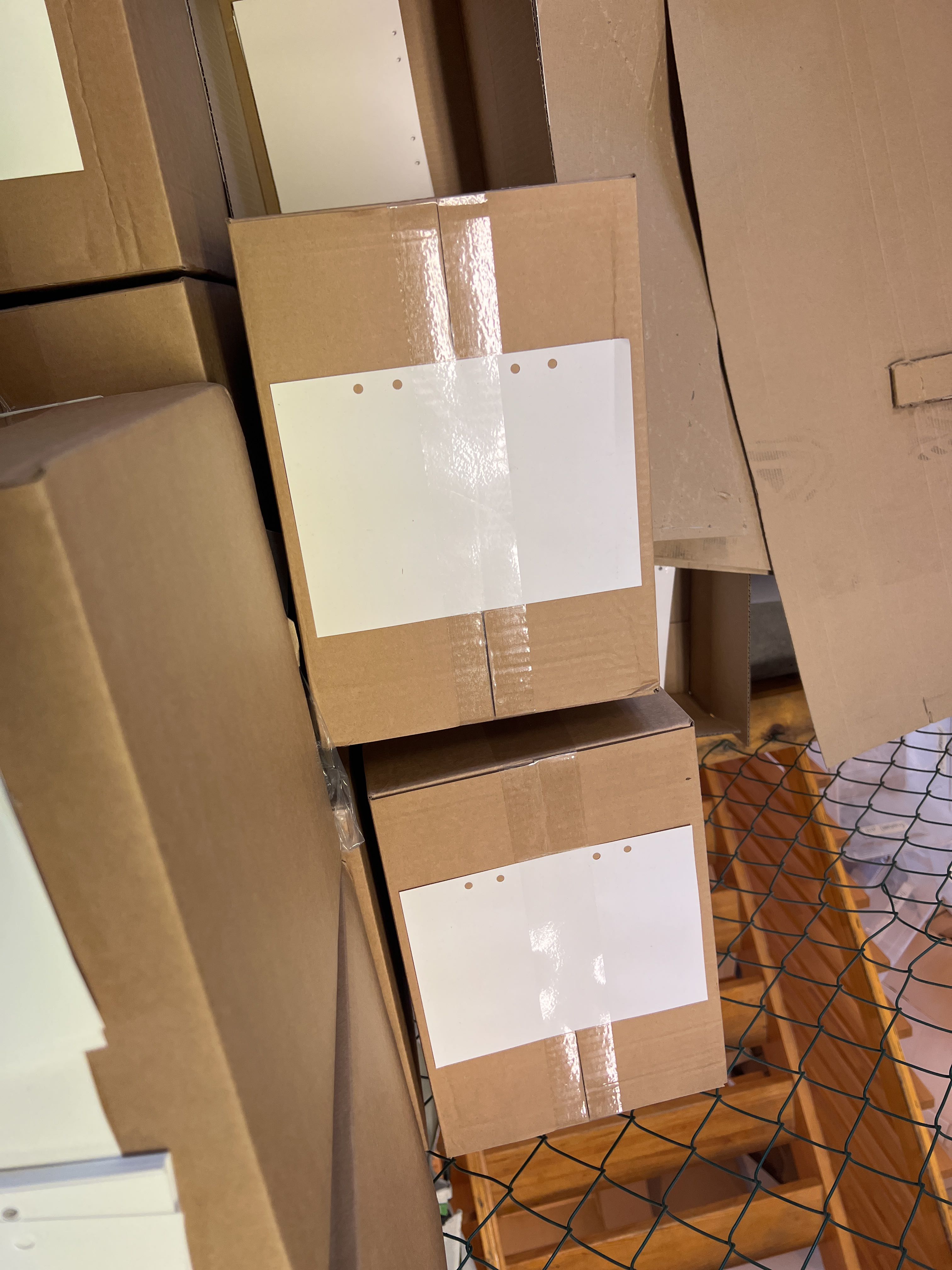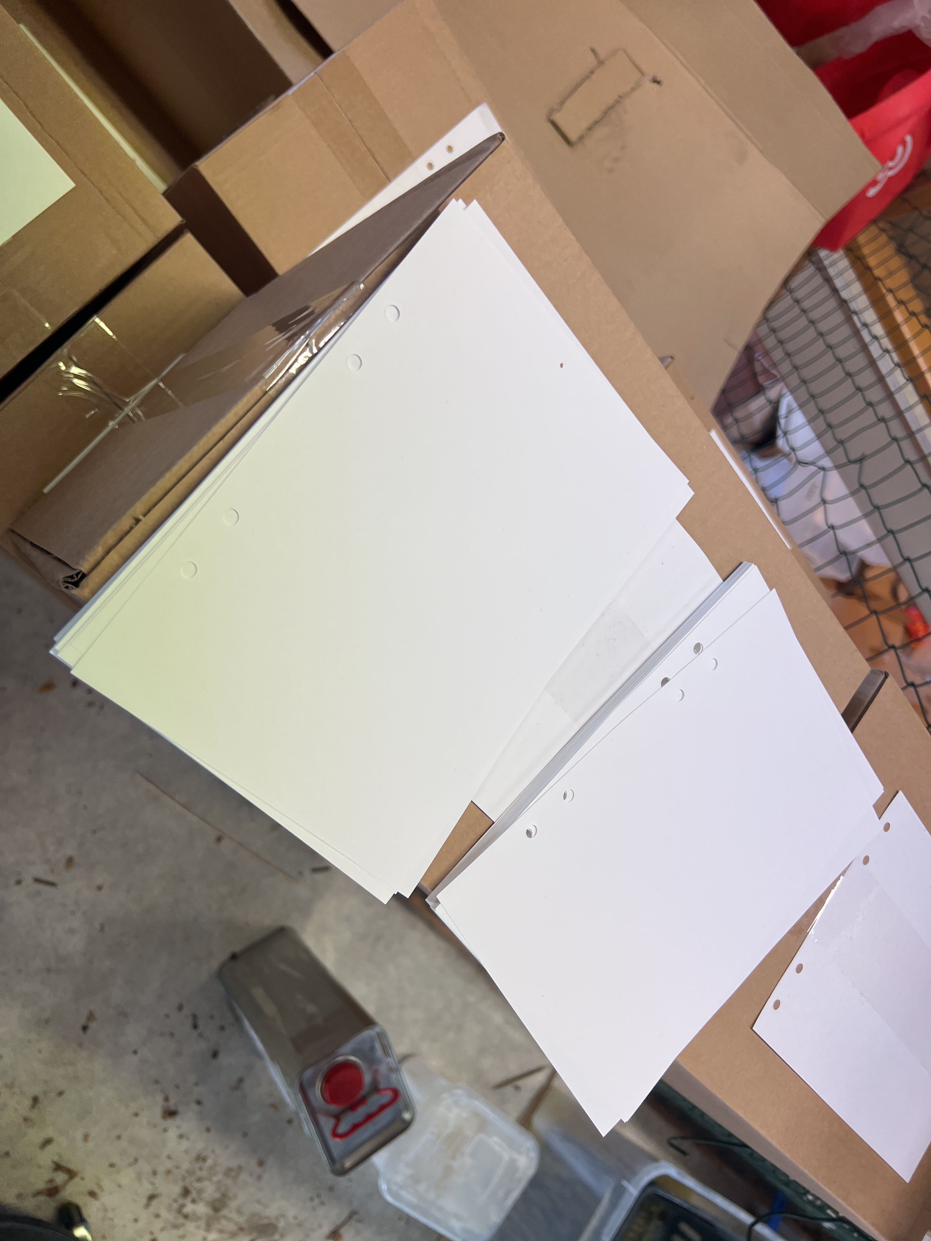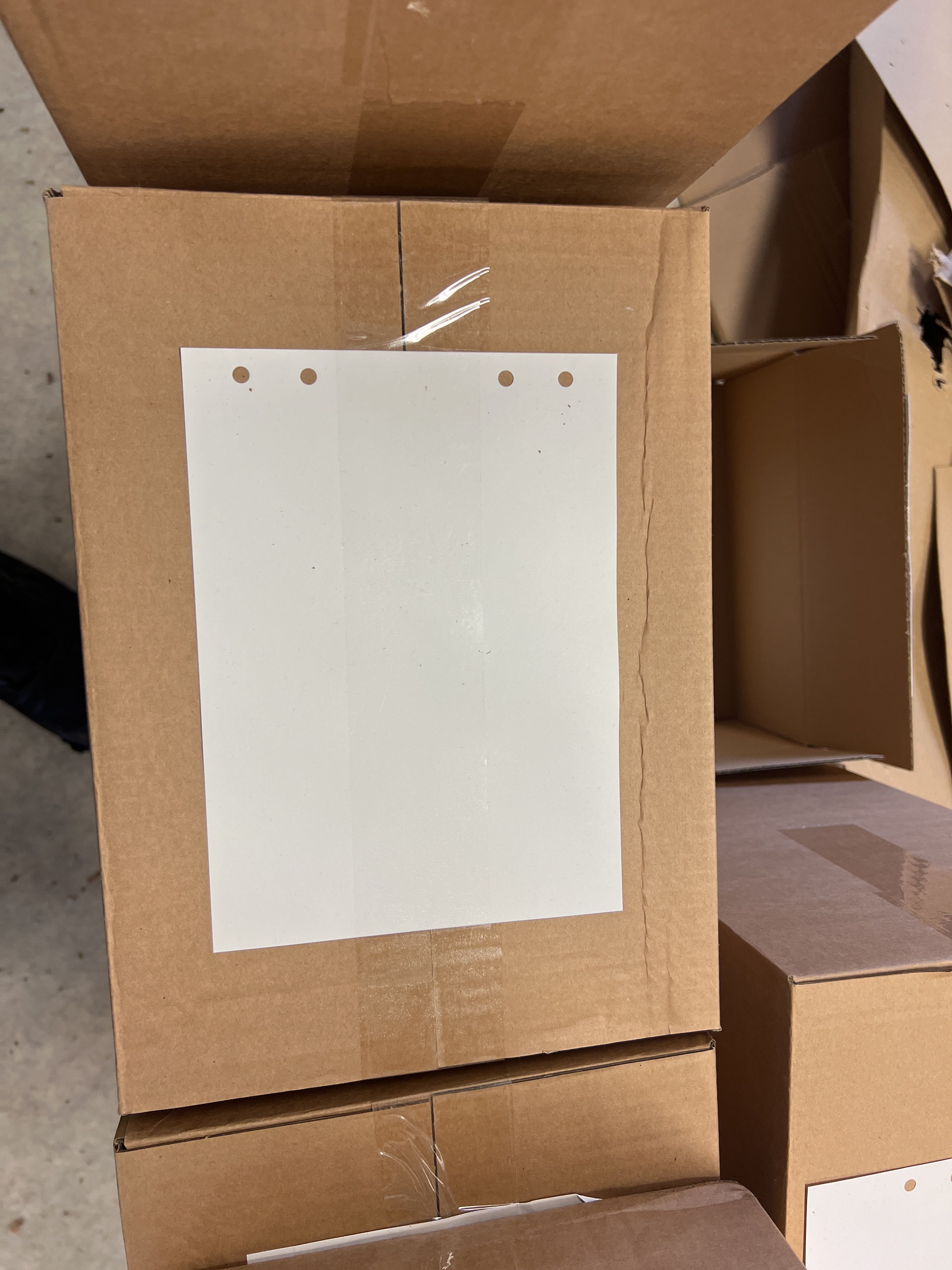 Gästböcker i trä med lösa pappersark i lådor.