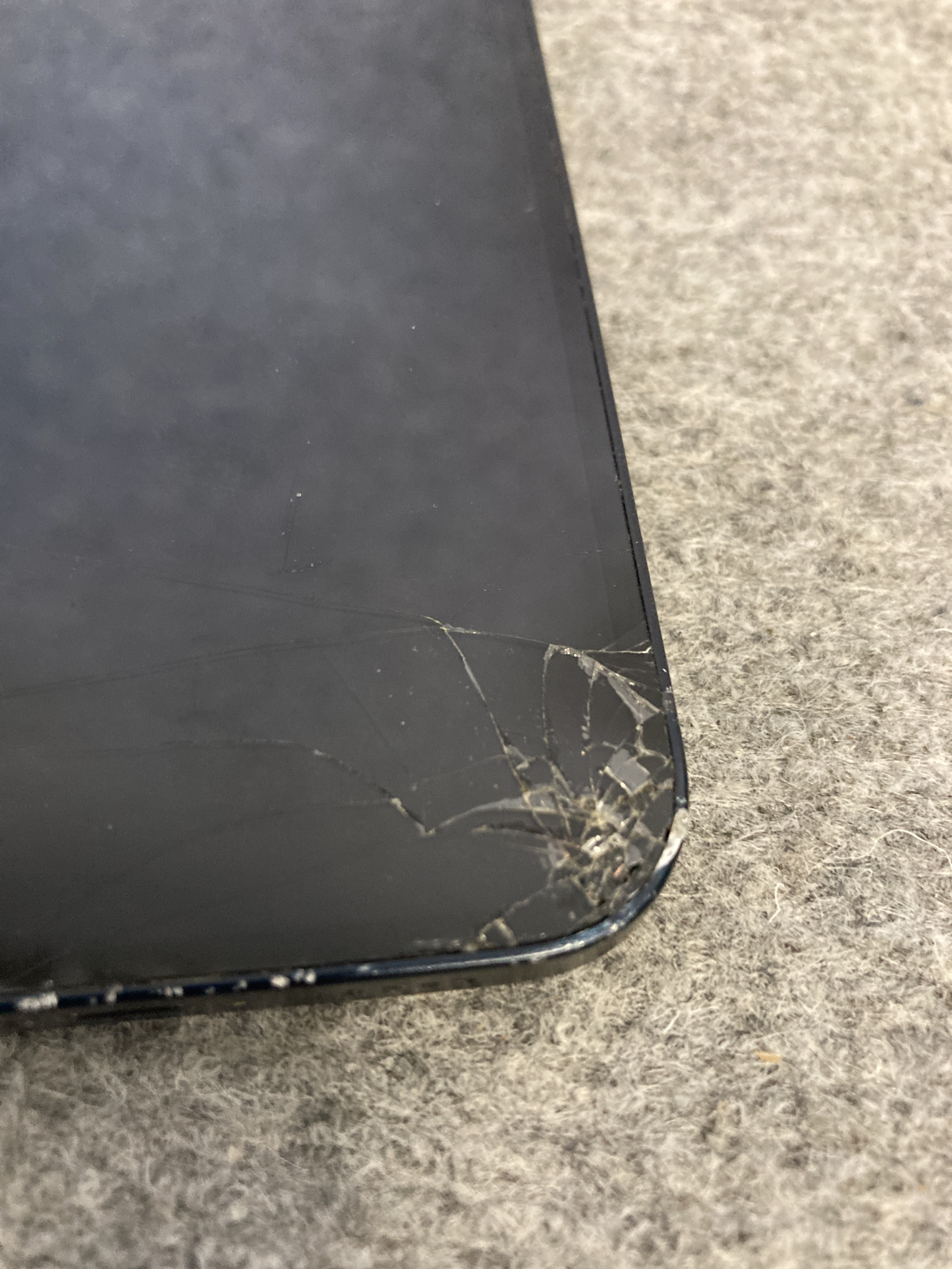 Trasig skärm. Betraktas som rep objekt. Spår av användning förekommer.