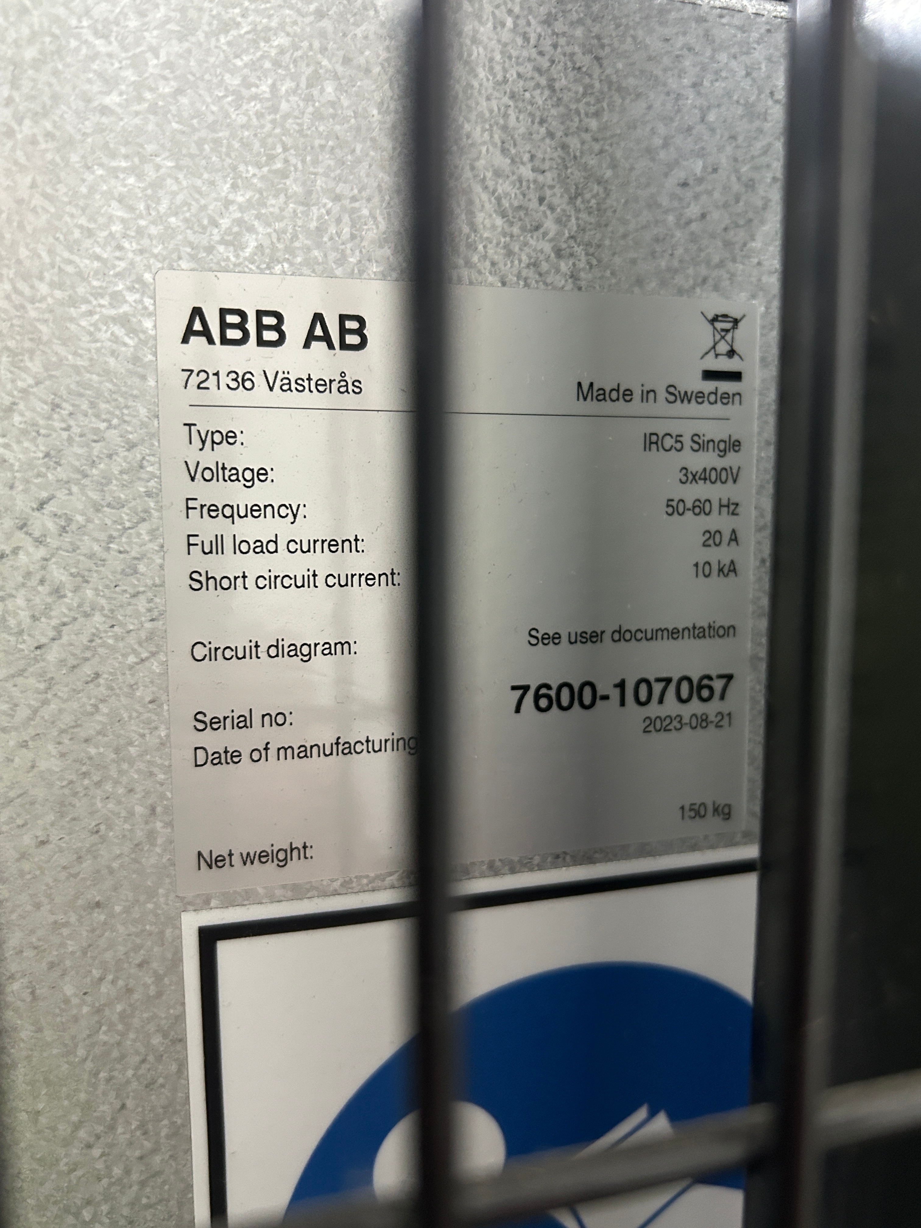 Serienummer styrskåp: 7600-107067