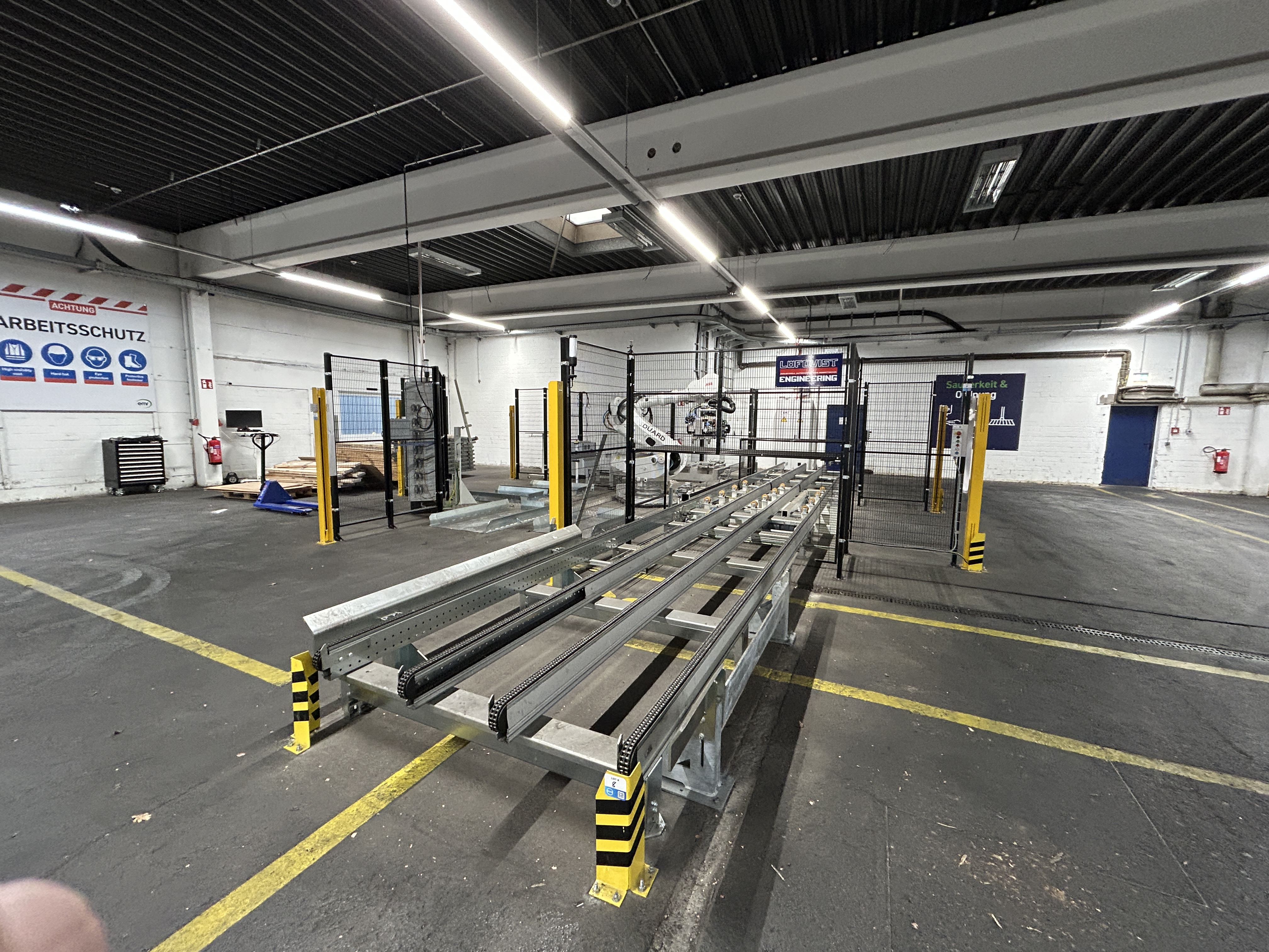 - Utrustad med robot, gripdon, transportbanor, styrsystem och säkerhetslösningar. Systemet är utvecklingsutrustning och inte fullt industrialiserad.