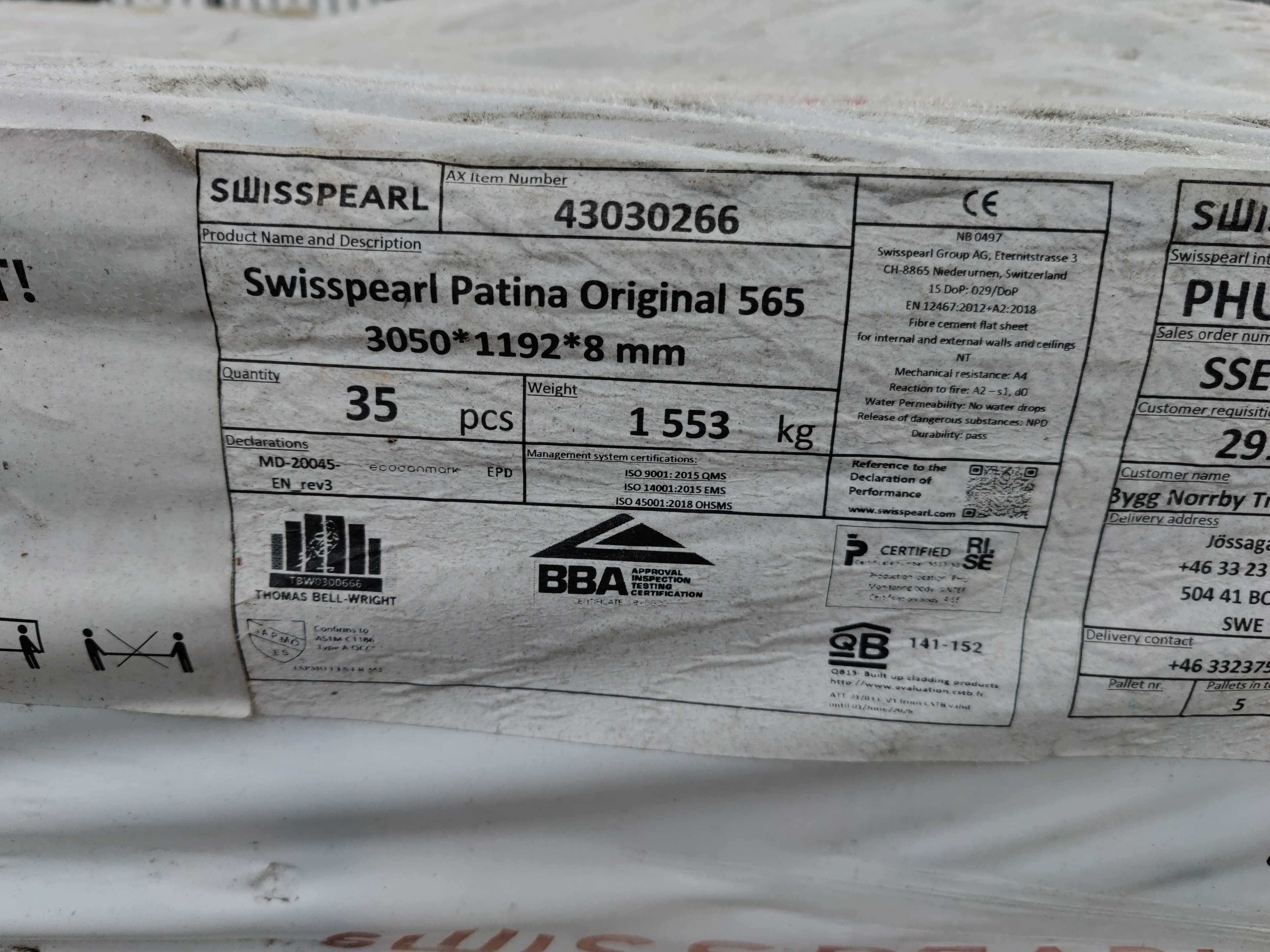 70 st Swisspearl Patina 565 8x1192x3050 mm
