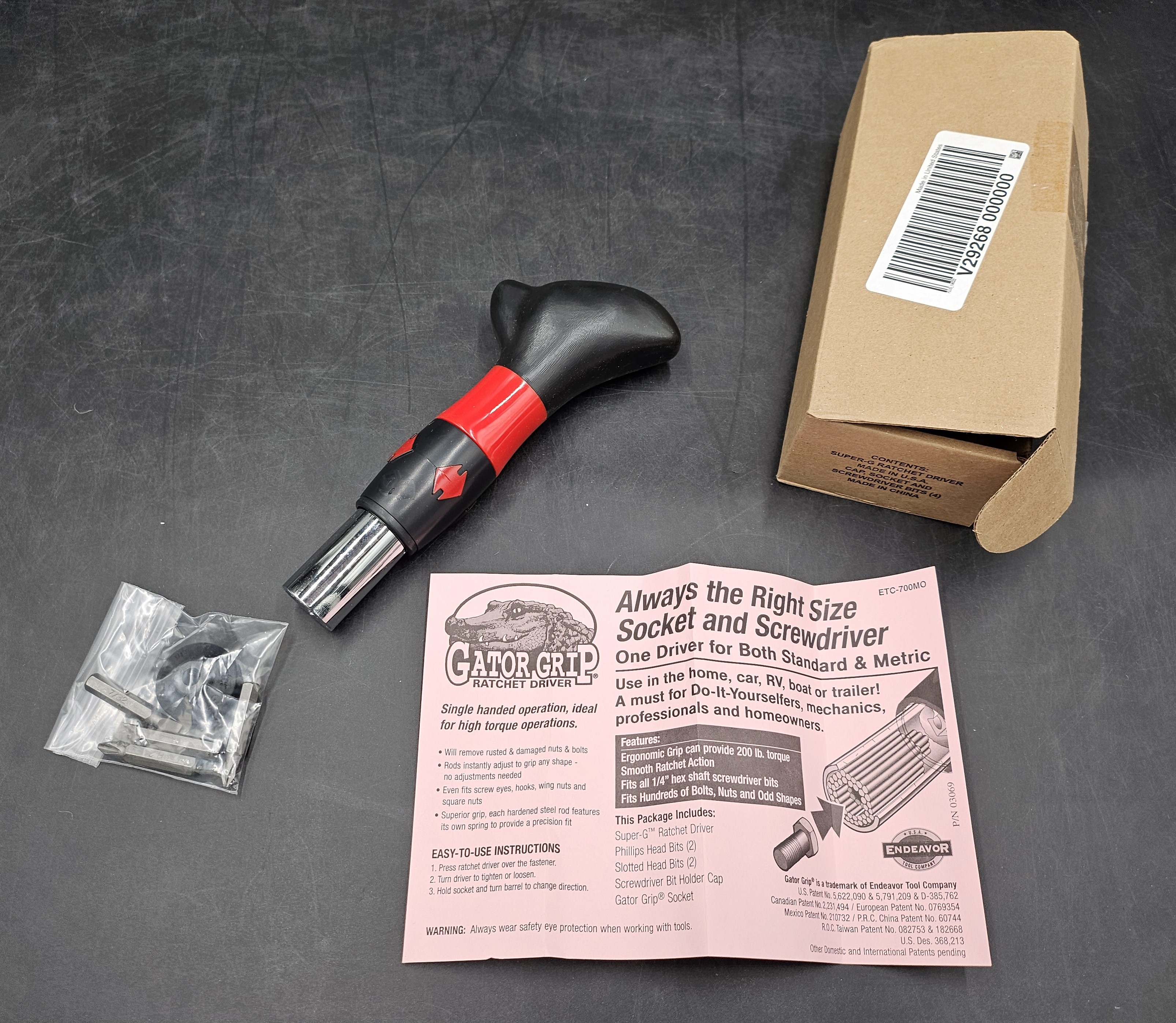 Gator-Grip passar i stort sett allt som inte är runt: sexkantiga muttrar och bultar, ögonbultar, vingmuttrar, fyrkantiga muttrar, trasiga muttrar, krokar med mera. Använd Gator-Grip runt hemmet, på båtar, husbilar, bilar, motorcyklar och cyklar. Tryck bara på den och vrid. Det fungerar utmärkt med elverktyg . Unikt patenterat grepp ger två gånger mer drivkraft än vanliga skruvmejslar. 200 in-lb vridmoment.