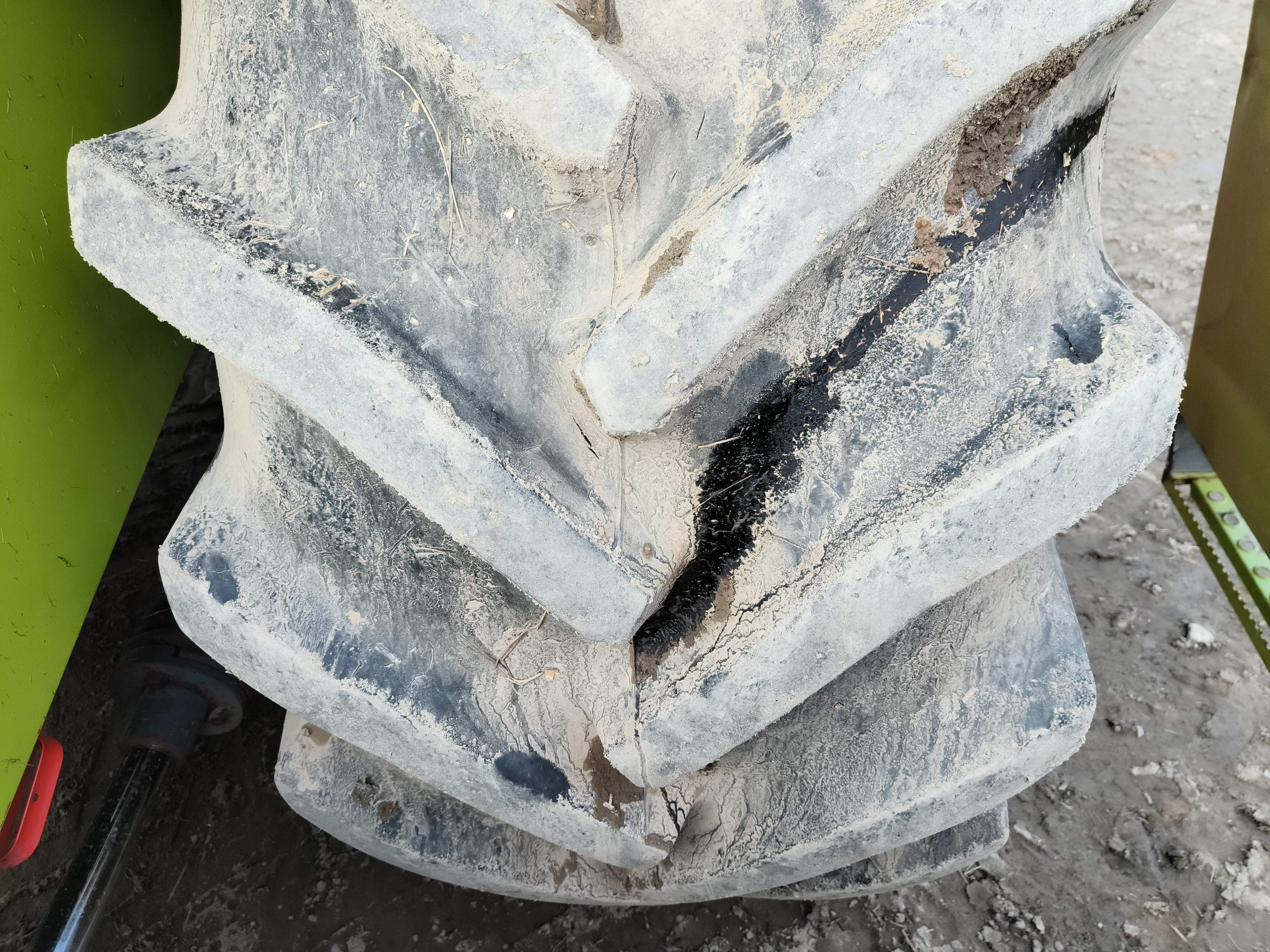Styrdäck: 500/60-22.5, Cirka 60% kvarstår av mönsterdjupet.