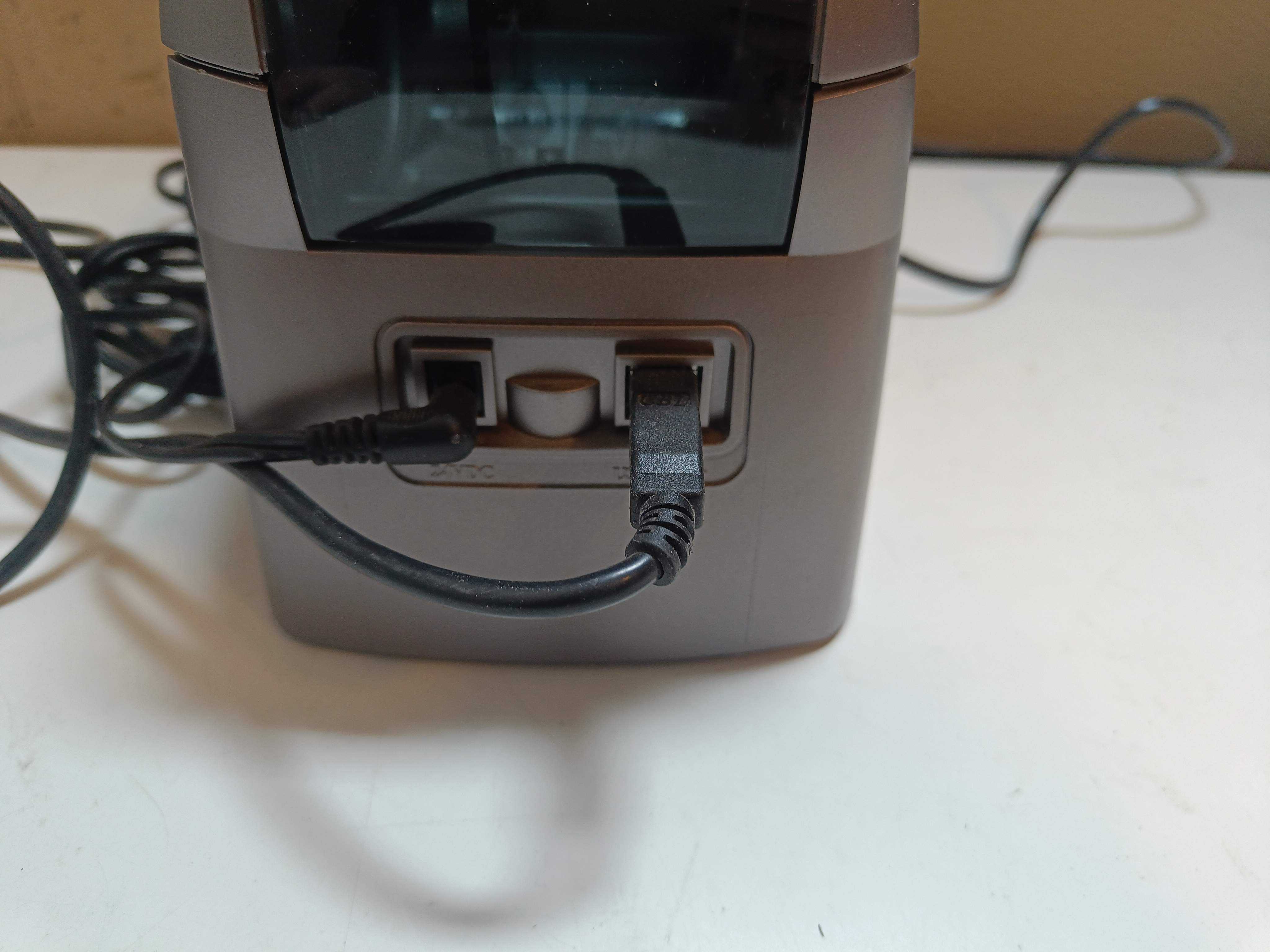 Etikettskrivare med dubbla etikettrullar för kontorsbruk som skriver ut upp till 71 etiketter/min. Maximal utskriftsbredd på 56 mm.
