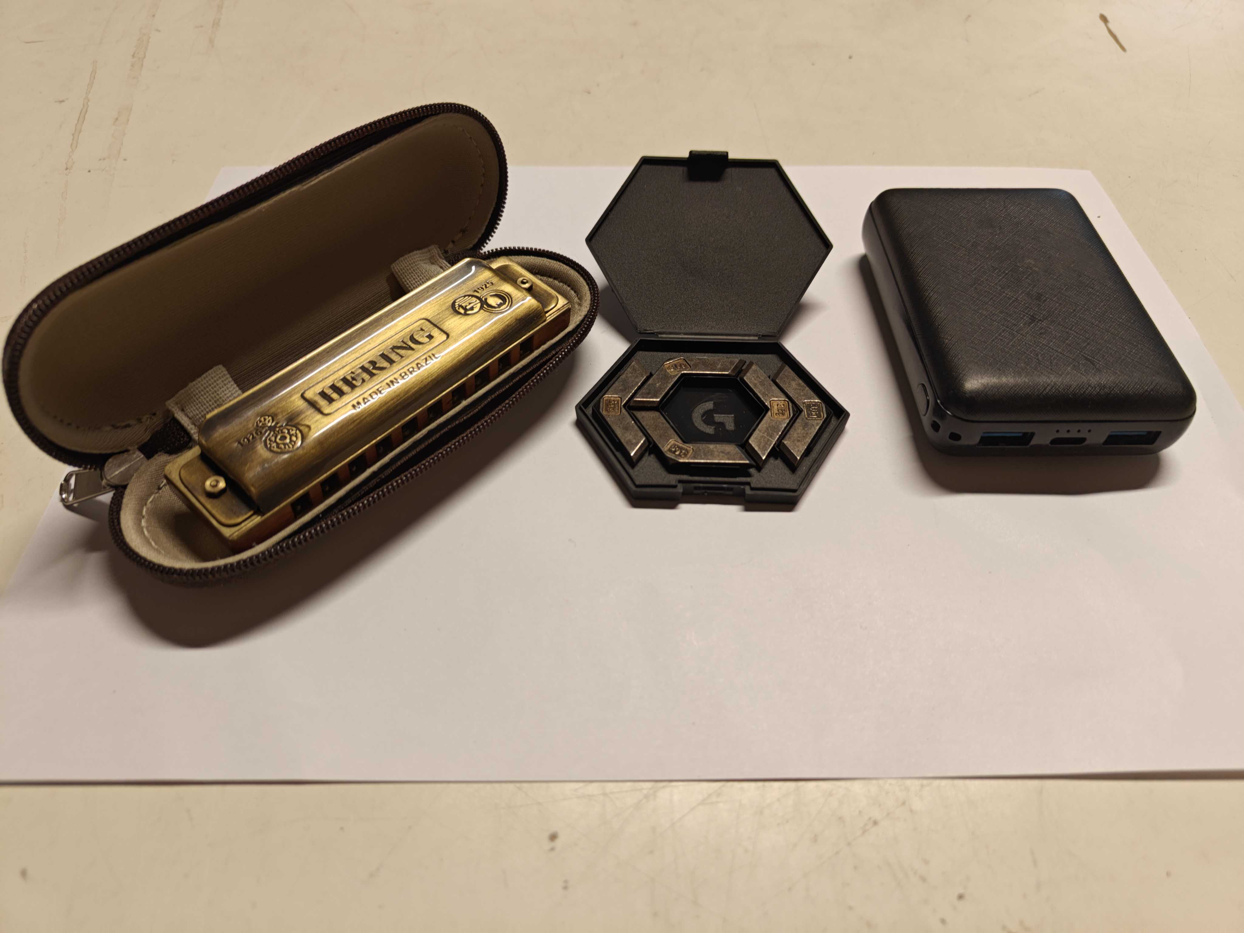 Munspel, portabel laddare samt viktsats till gamingmus.