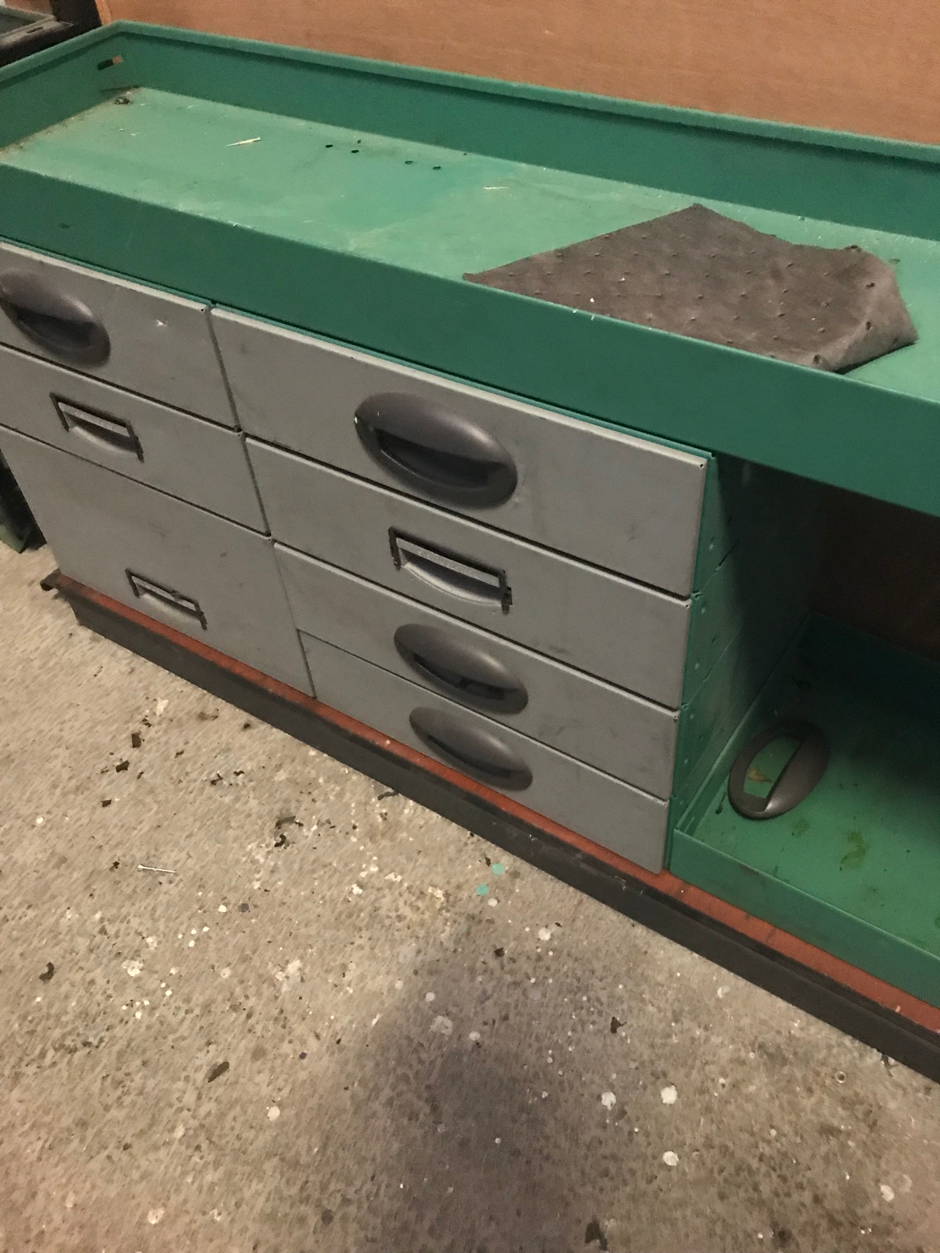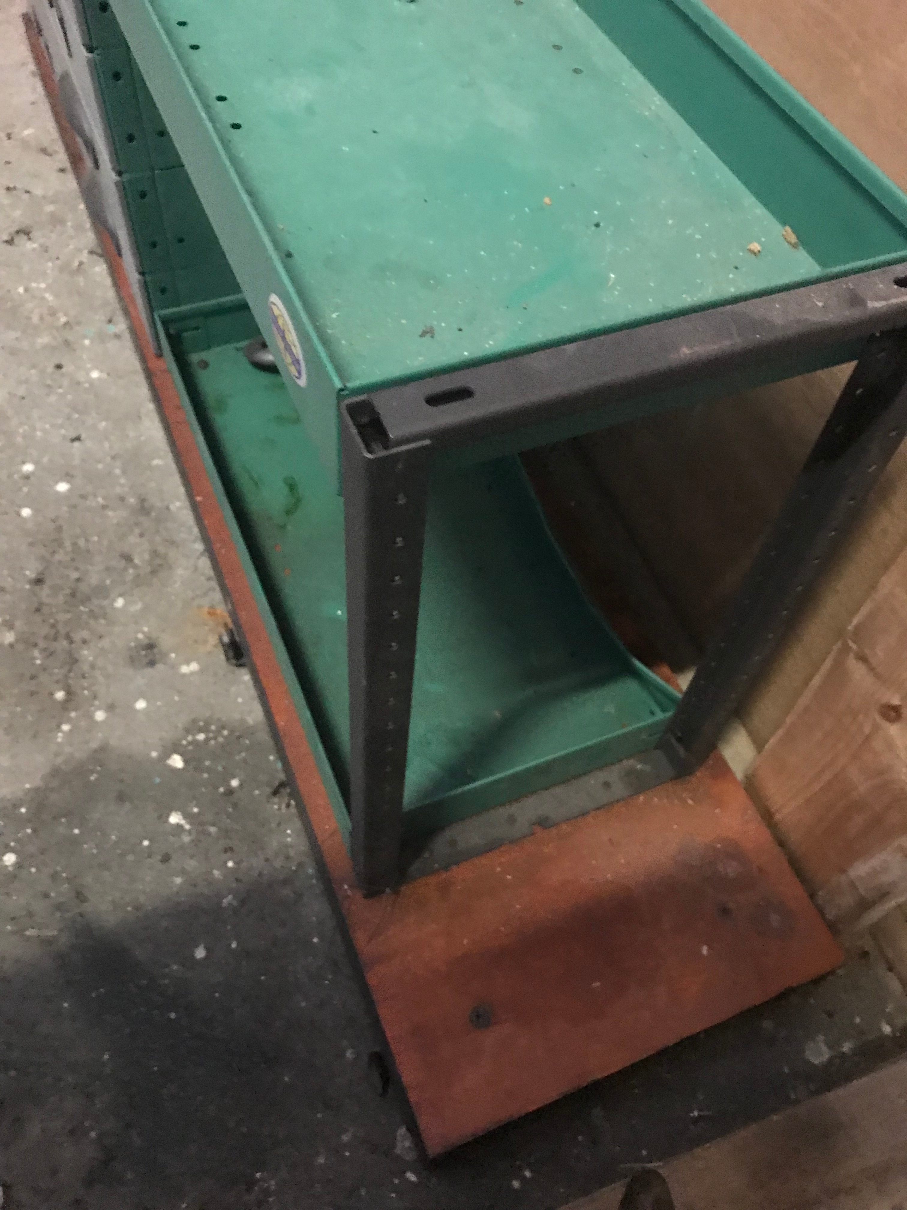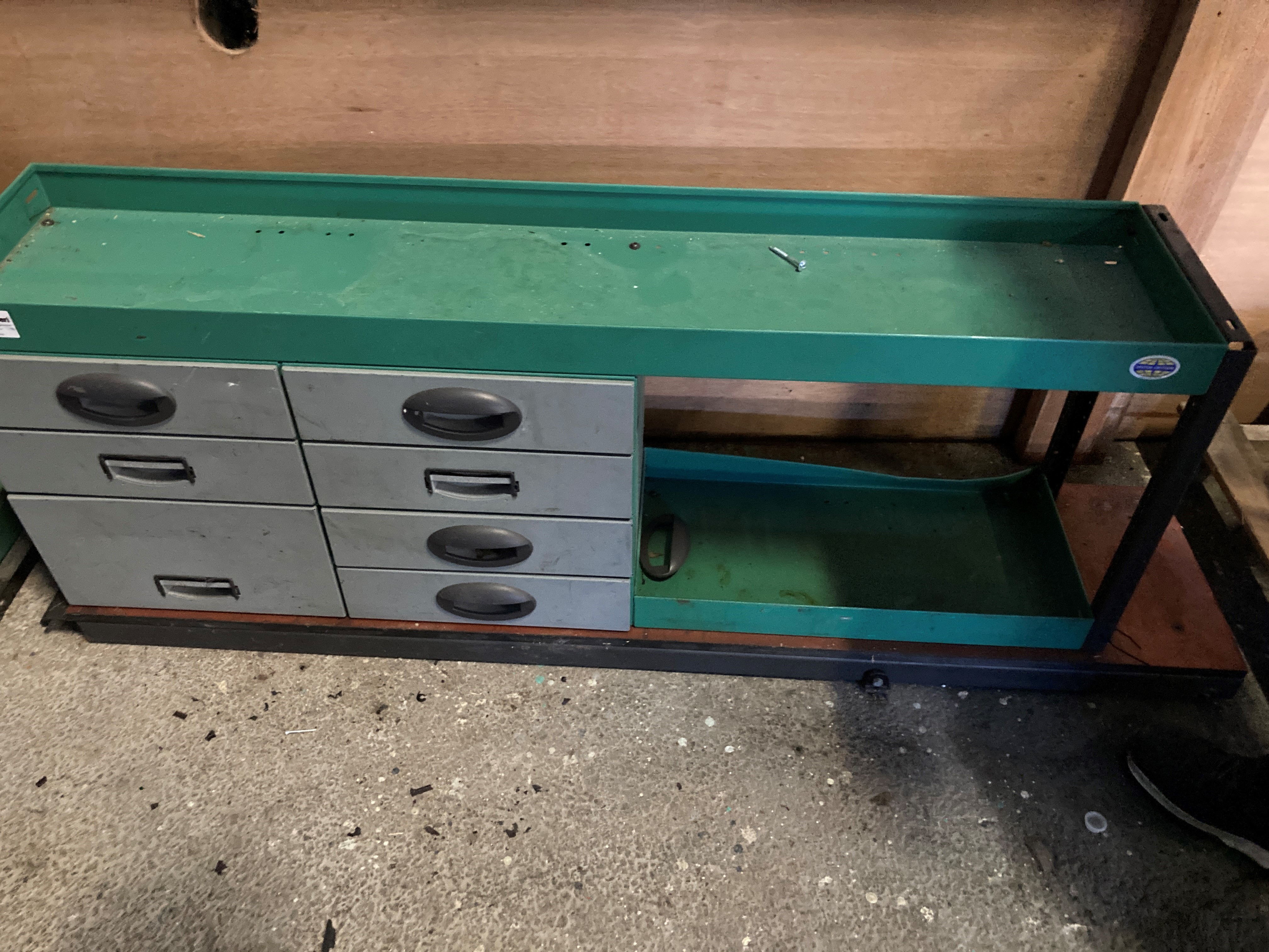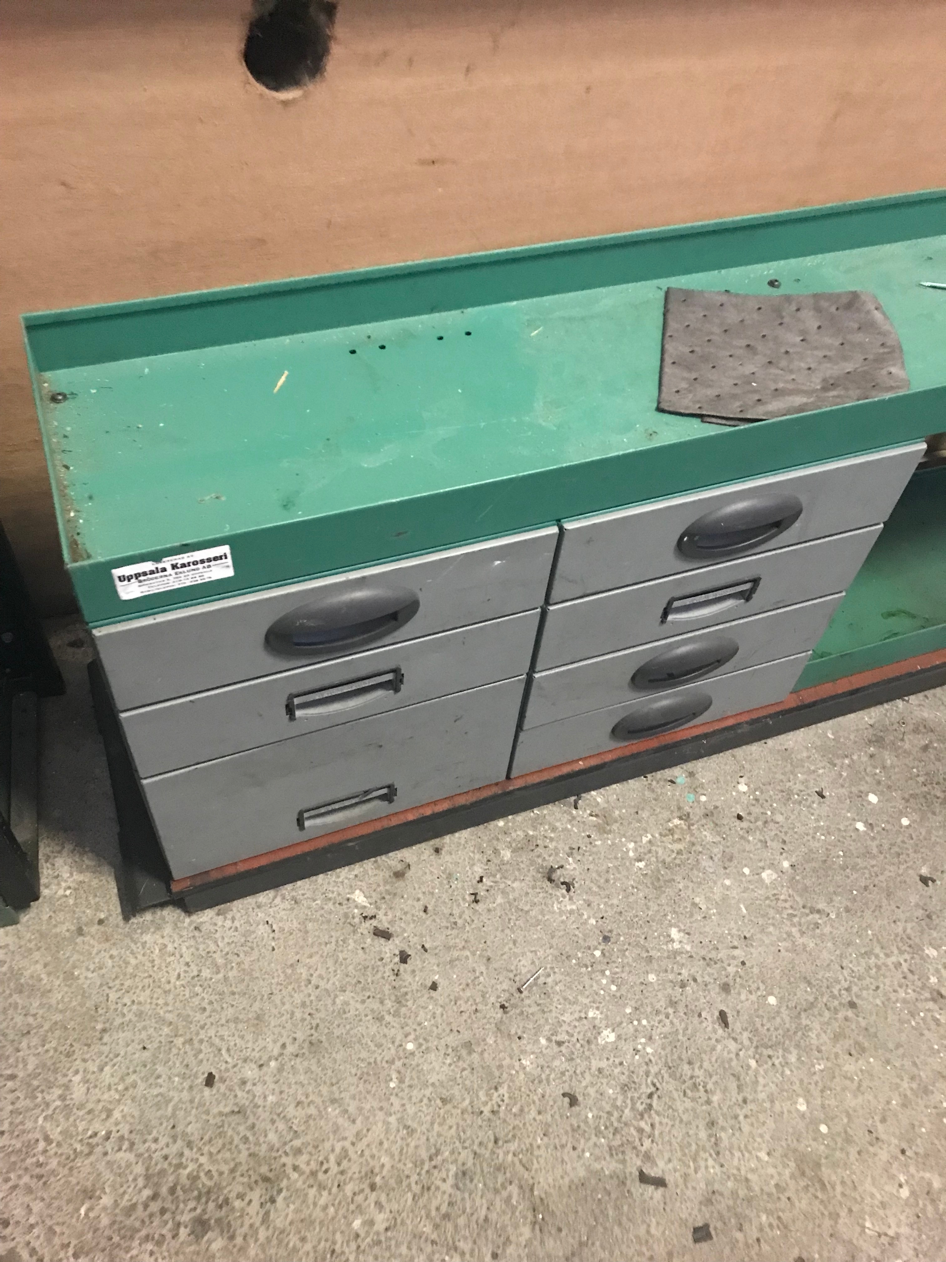 Skåpbilsinredning. Hylla med lådor.