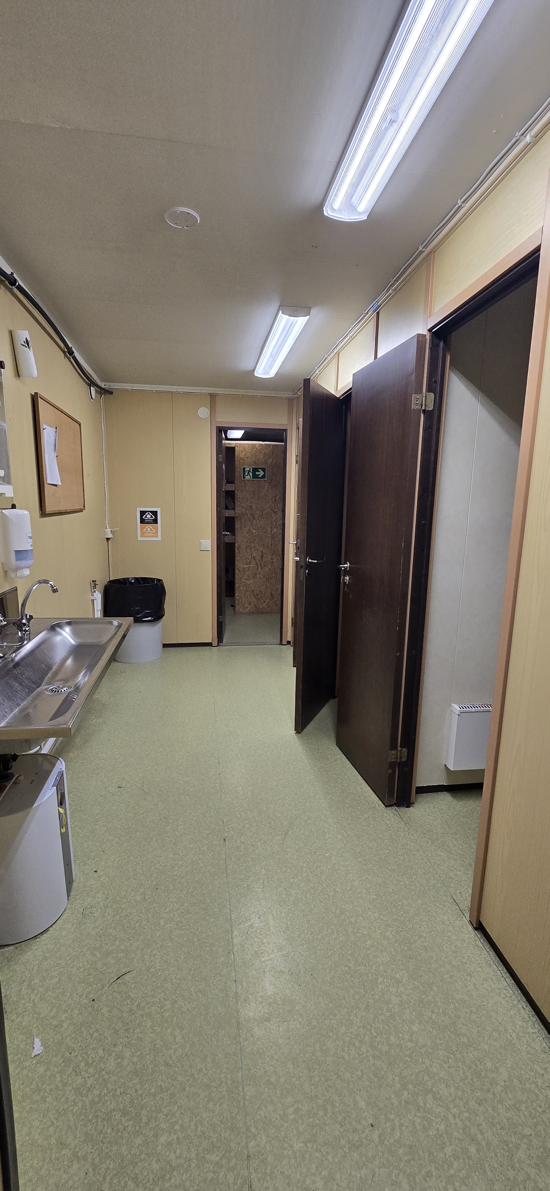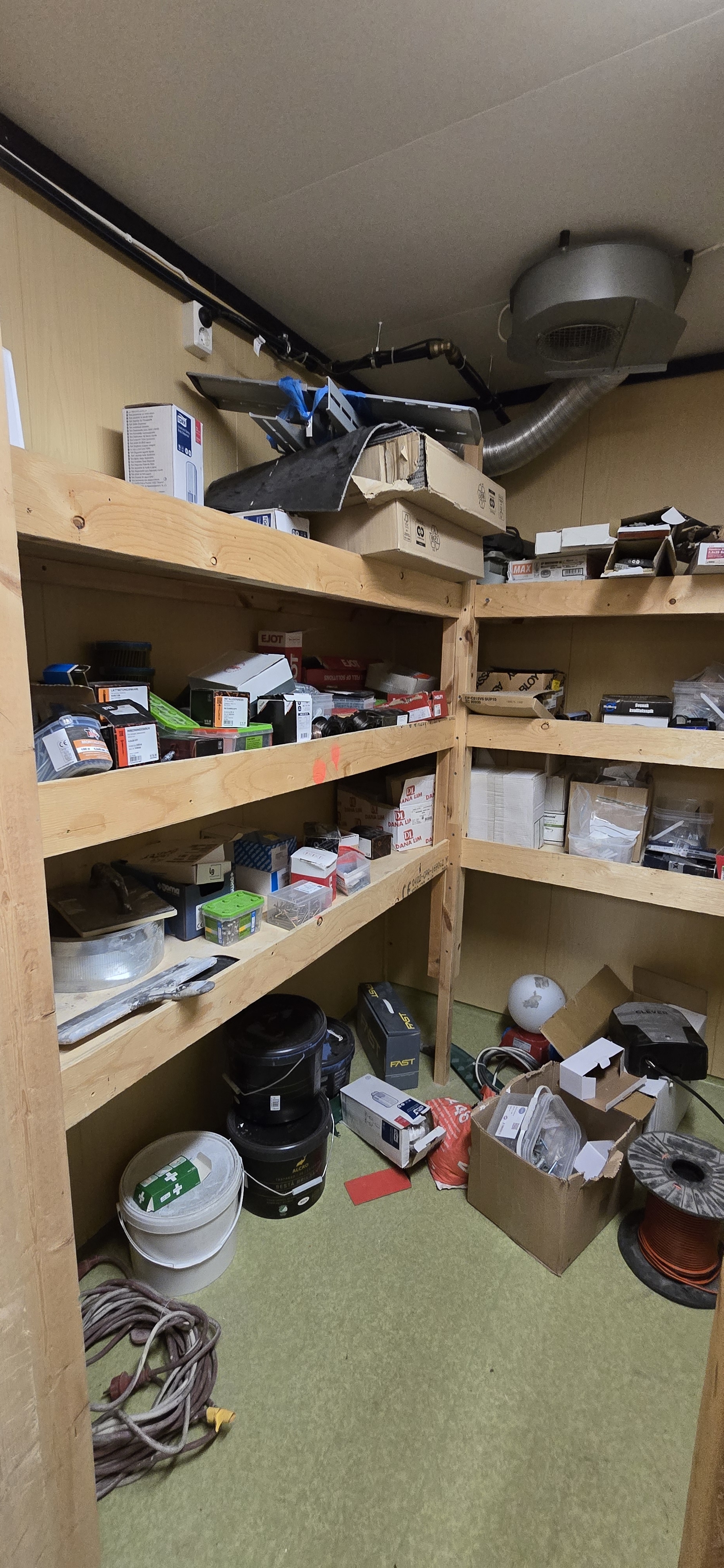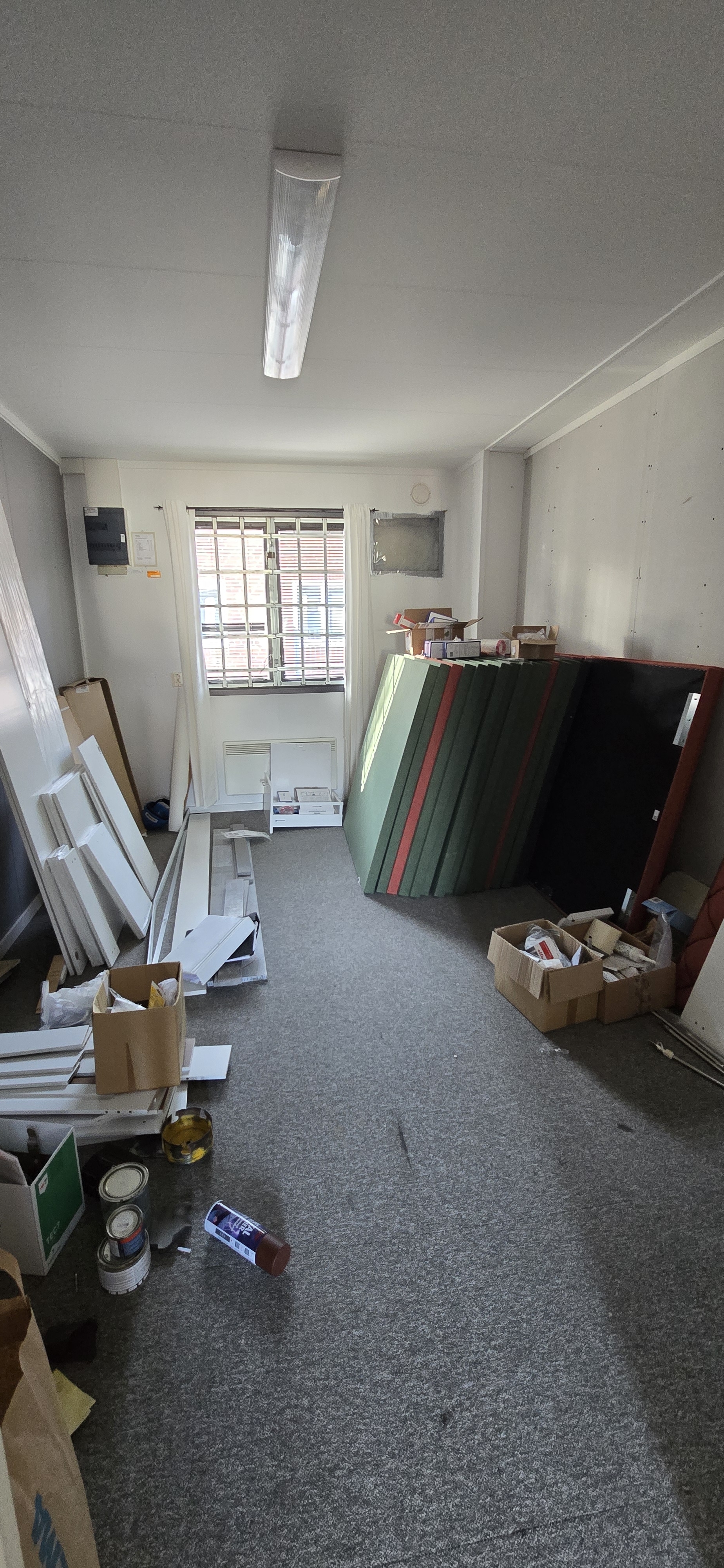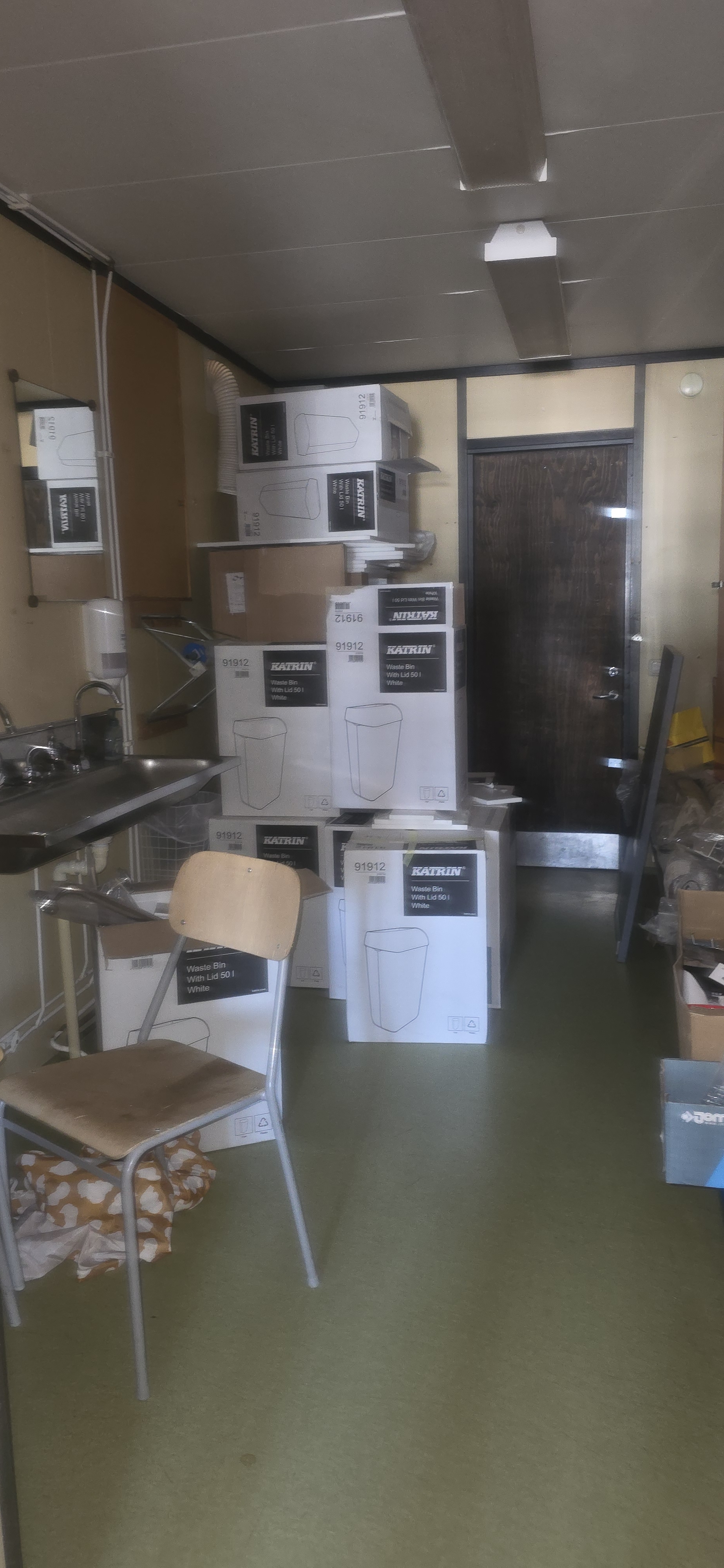 14 st byggbodar ca 1990-2000 års modell uppställda i Tumba. Måste skyndsamt monteras ner och forslas bort senast 29/4-2025.