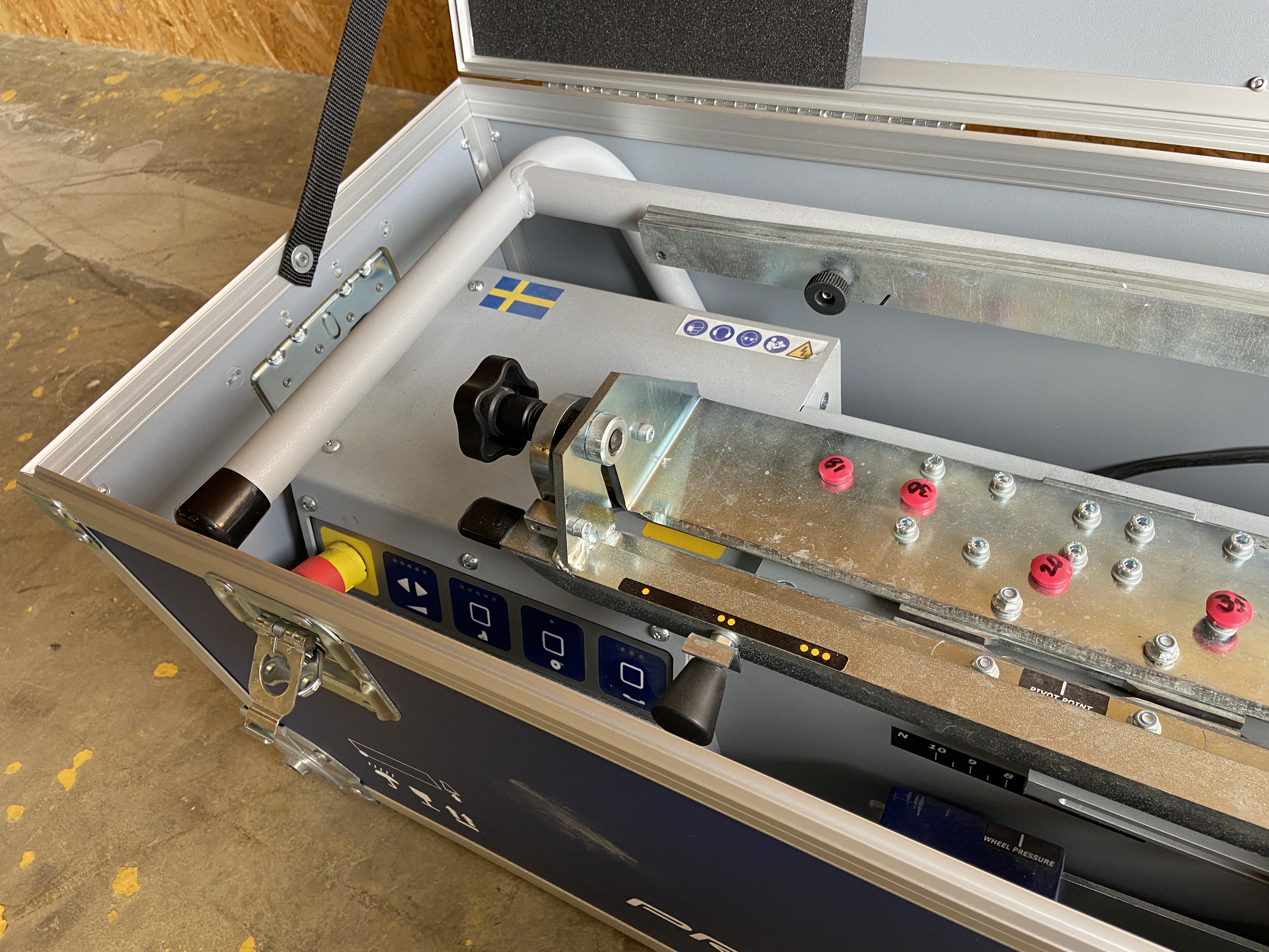 Modell: AS 2001.Tillhörande låda med 2 hjul.