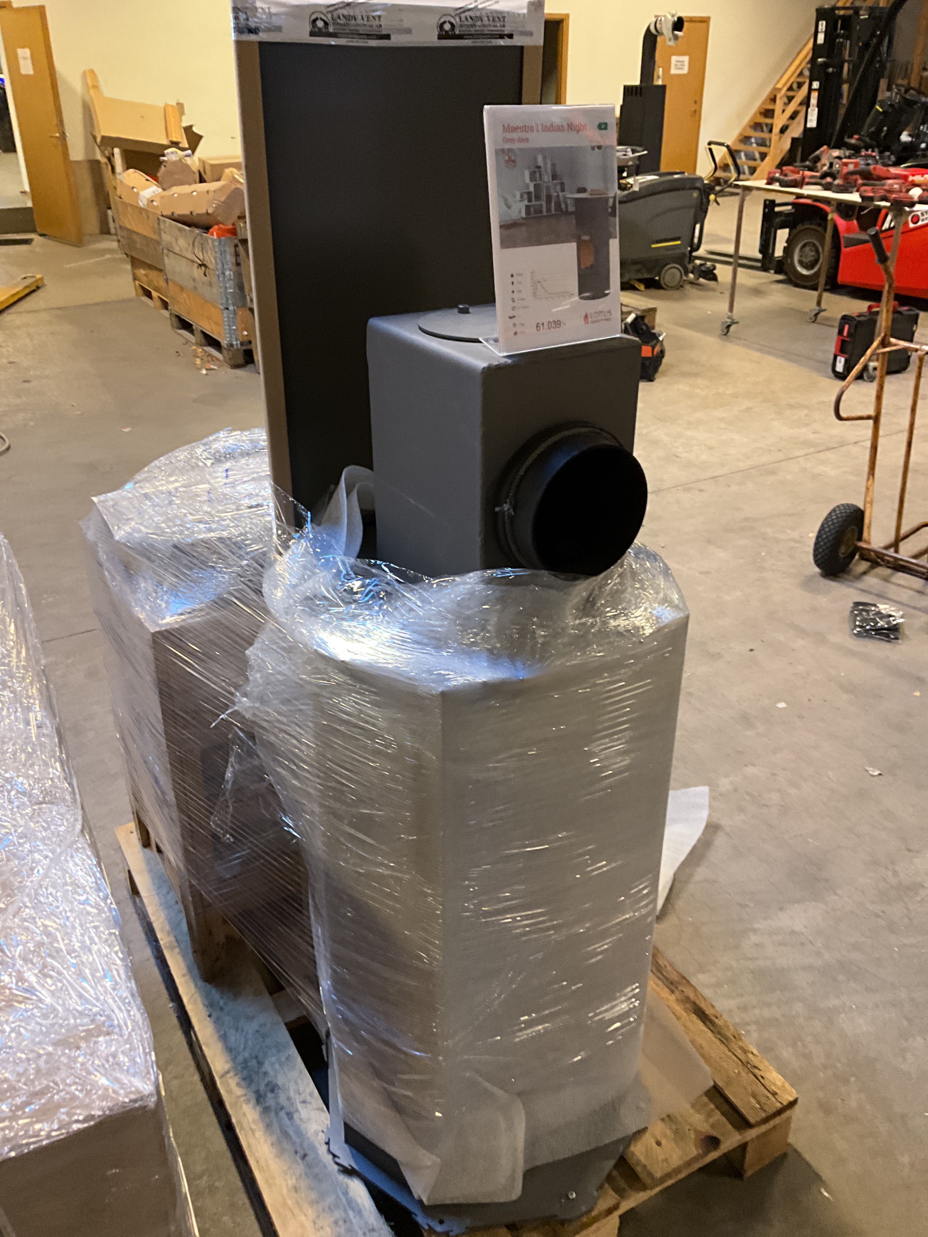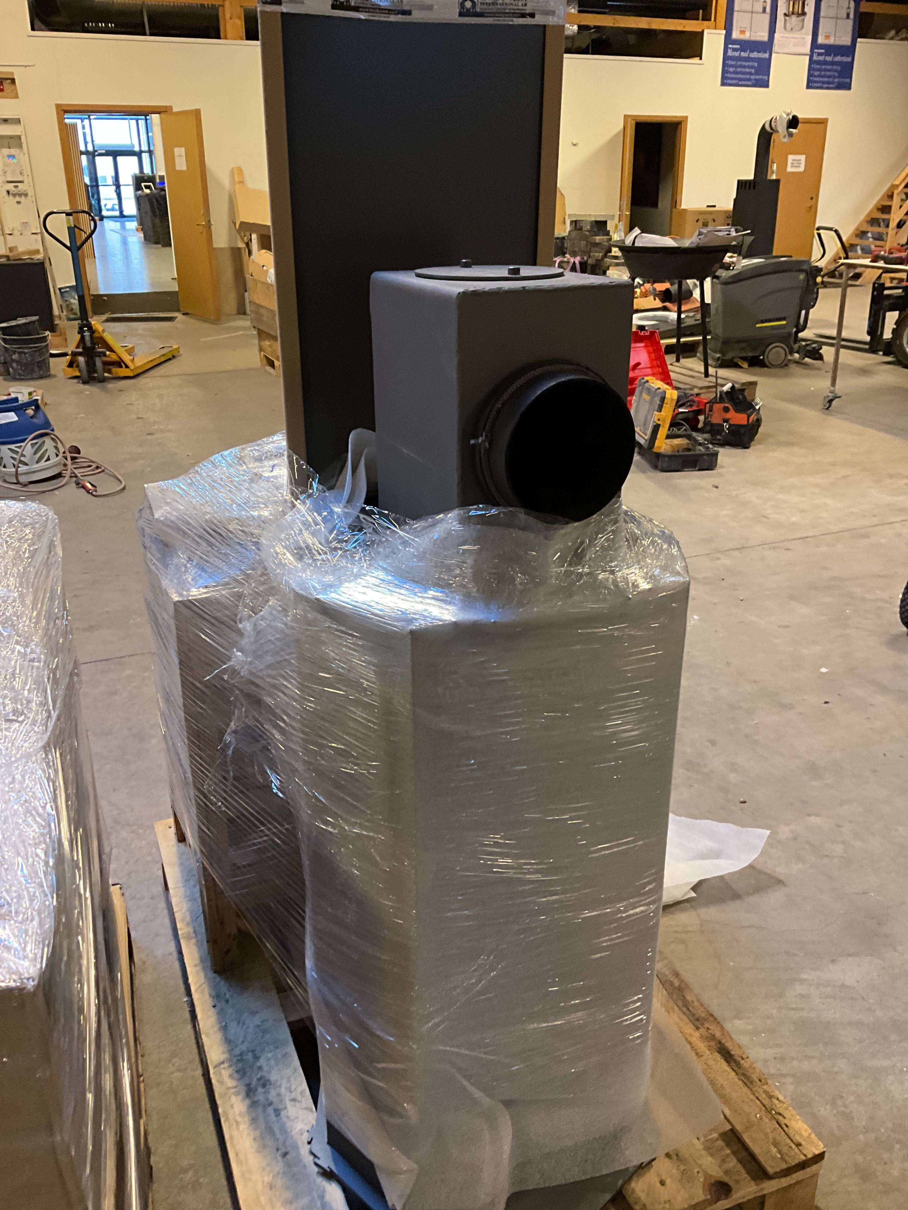 Auktionen innehåller: Braskaminer, täljstenskaminer, eldstäder i cortenplåt, kontorsutrustning, elverktyg m.m