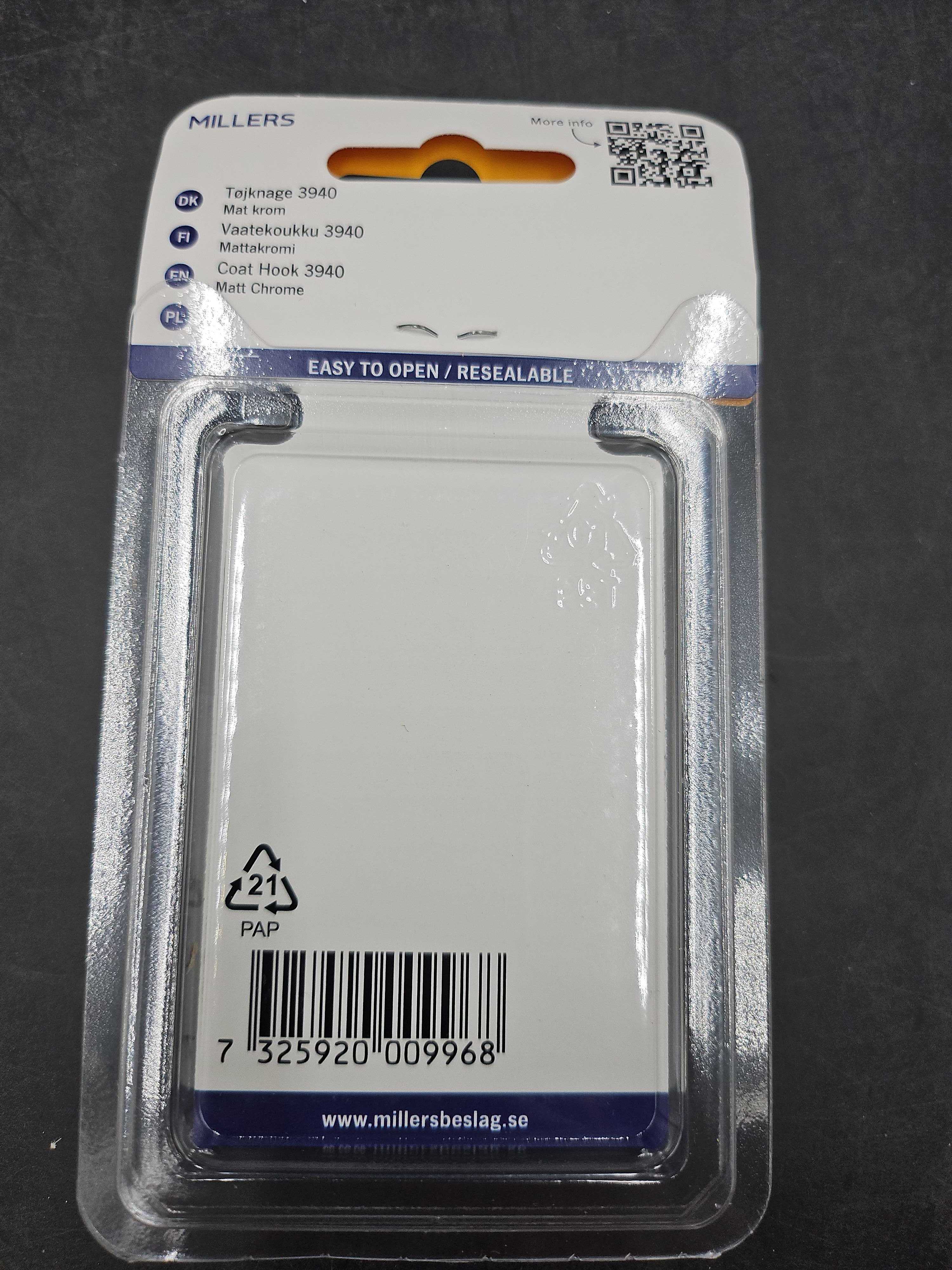 31 st 2-pack Millers klädkrok, 39 mm - Frakt ingår