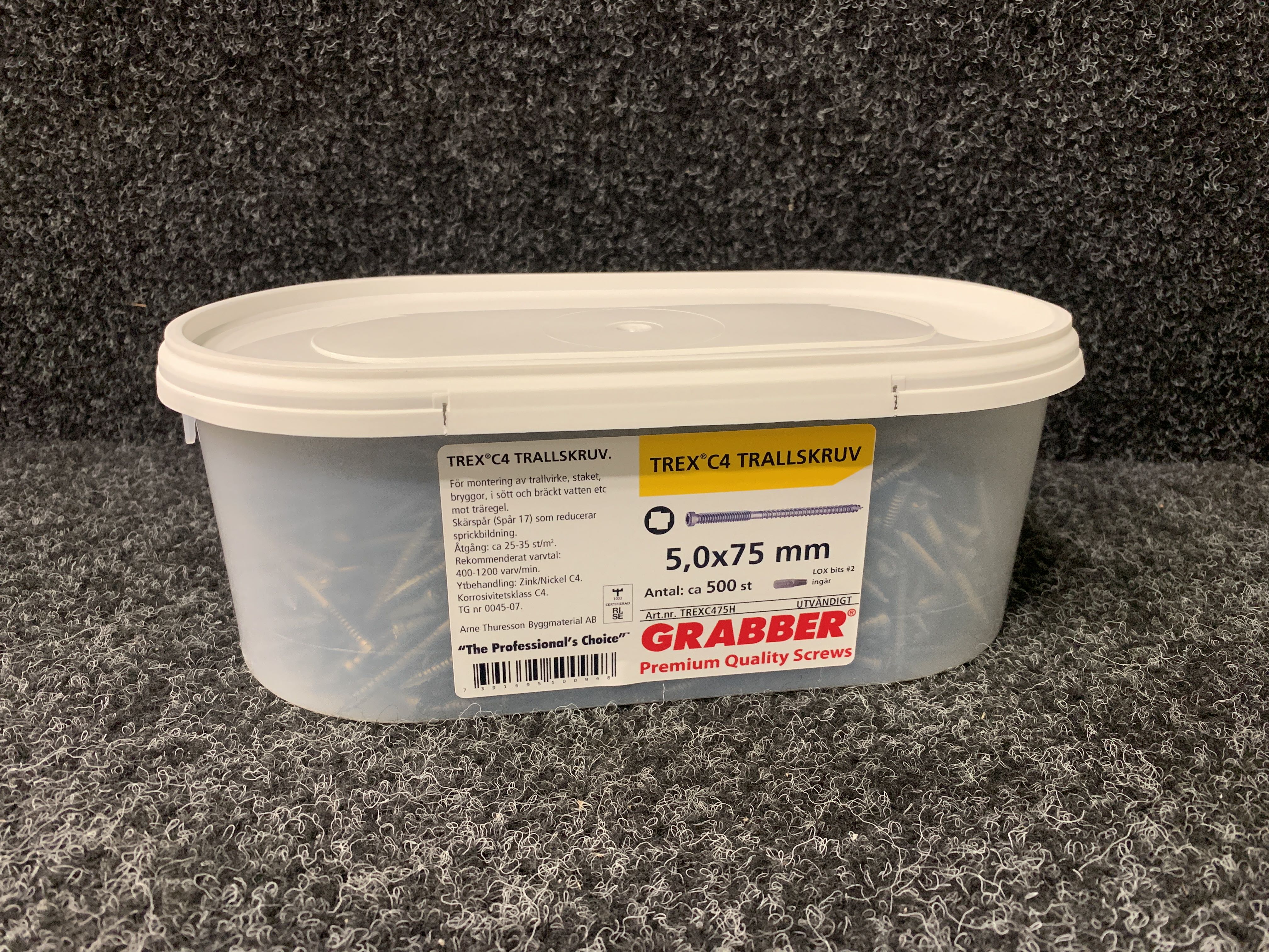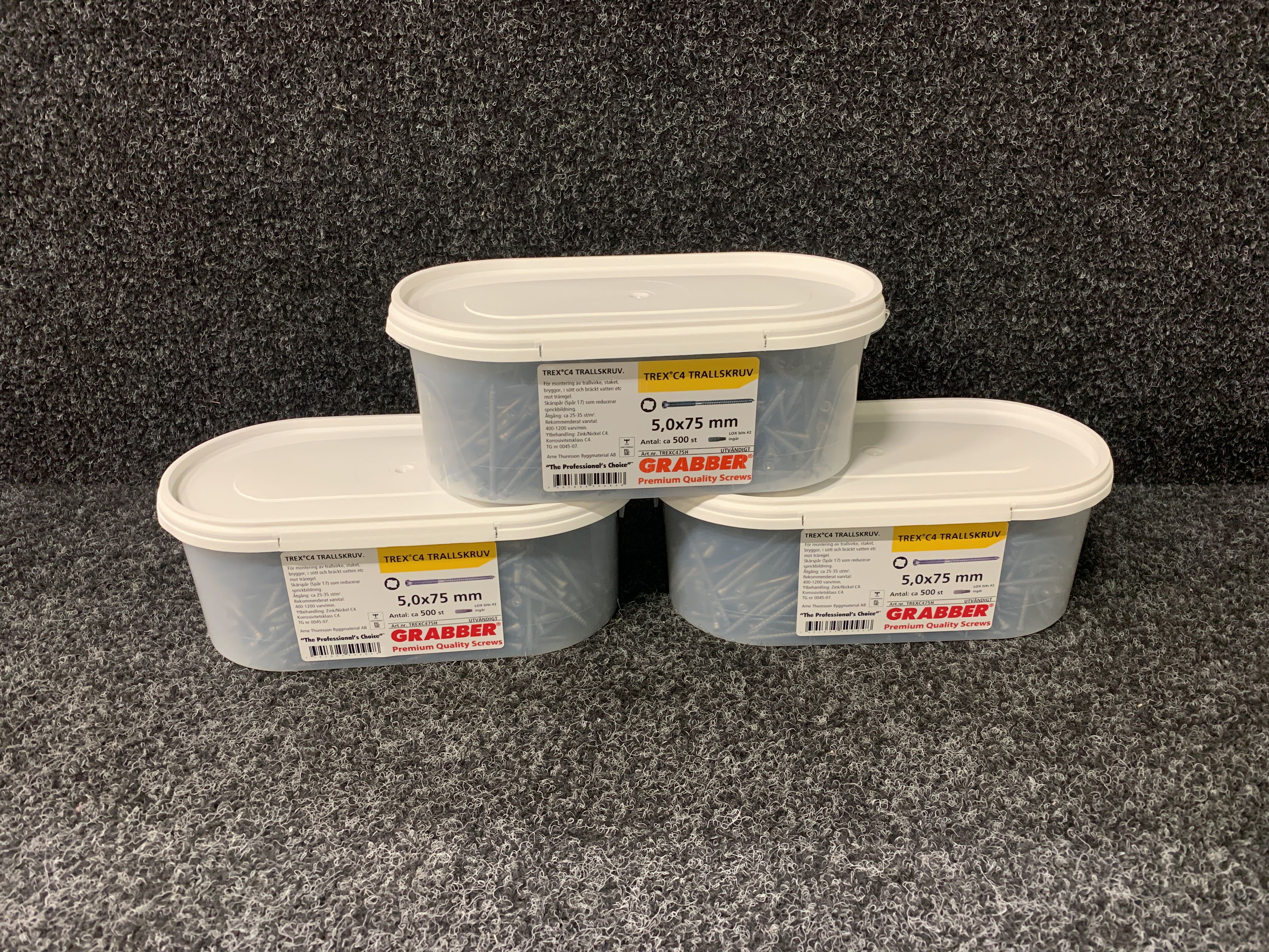 3 st Förpackningar Trallskruv 5.0x75, Grabber TREX C4