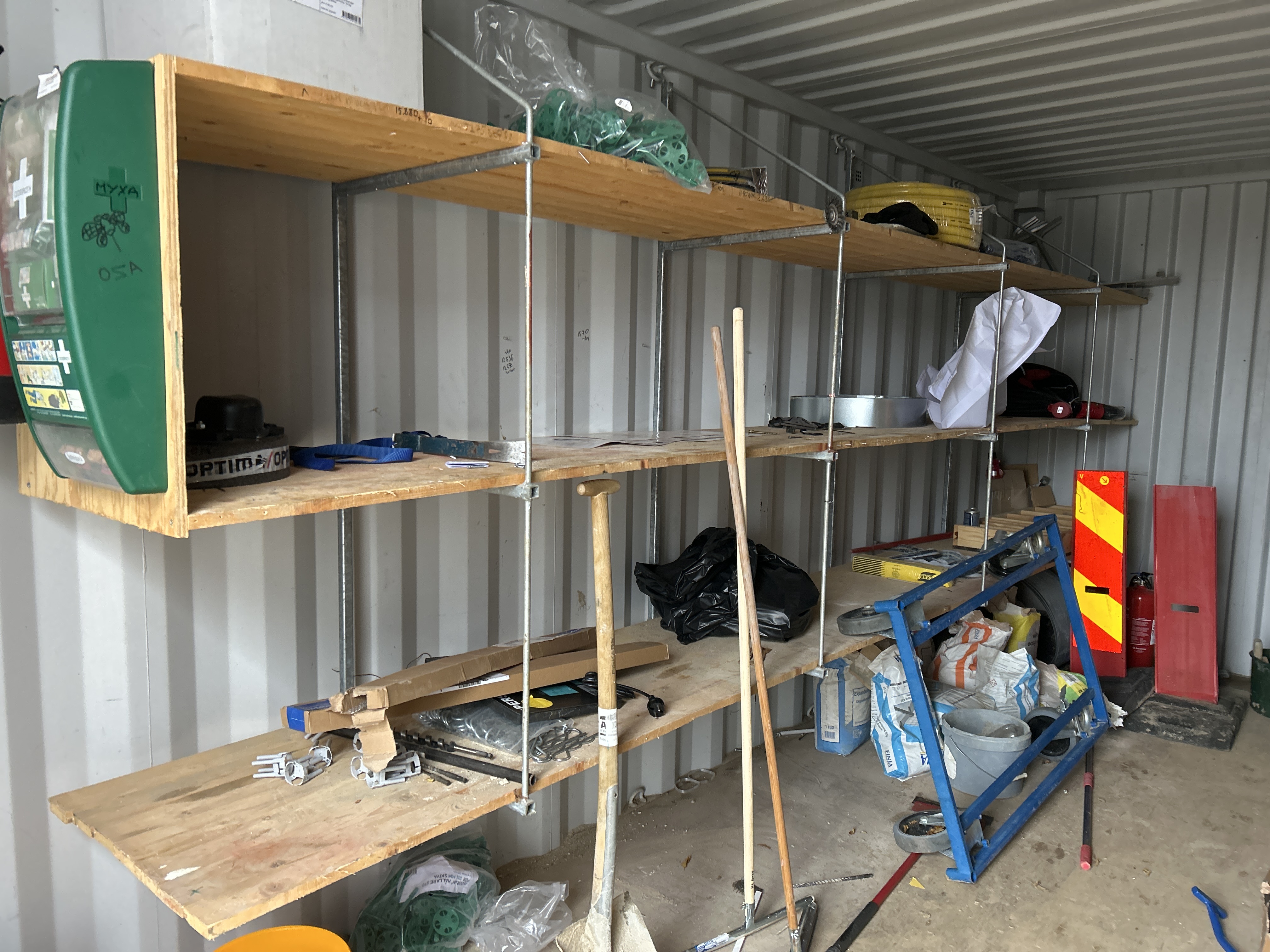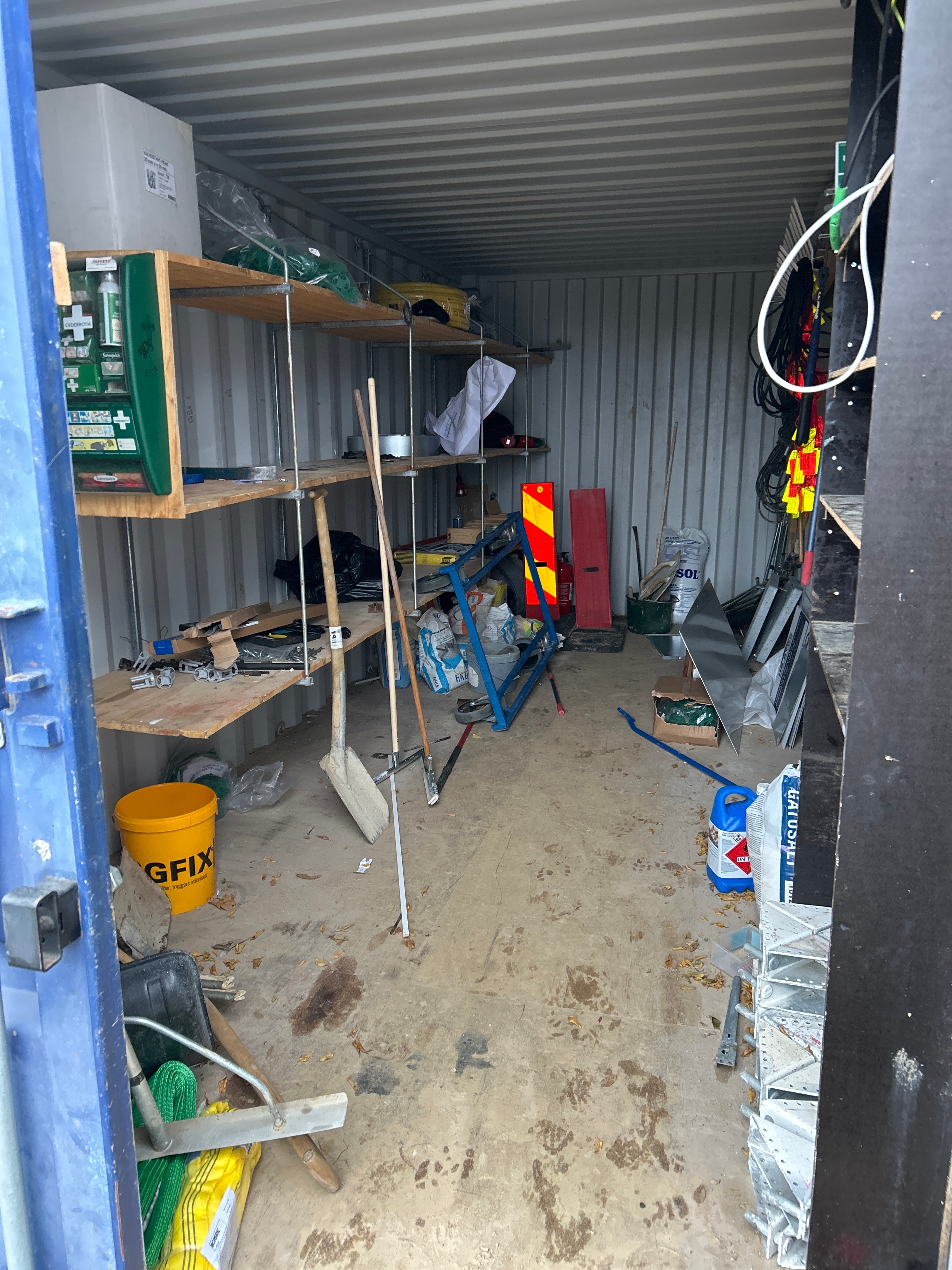 - Diverse byggutrustning så som central, vagn, första hjälpen låda, trädgårdsredskap med mera, se bilder för att få en uppfattning
