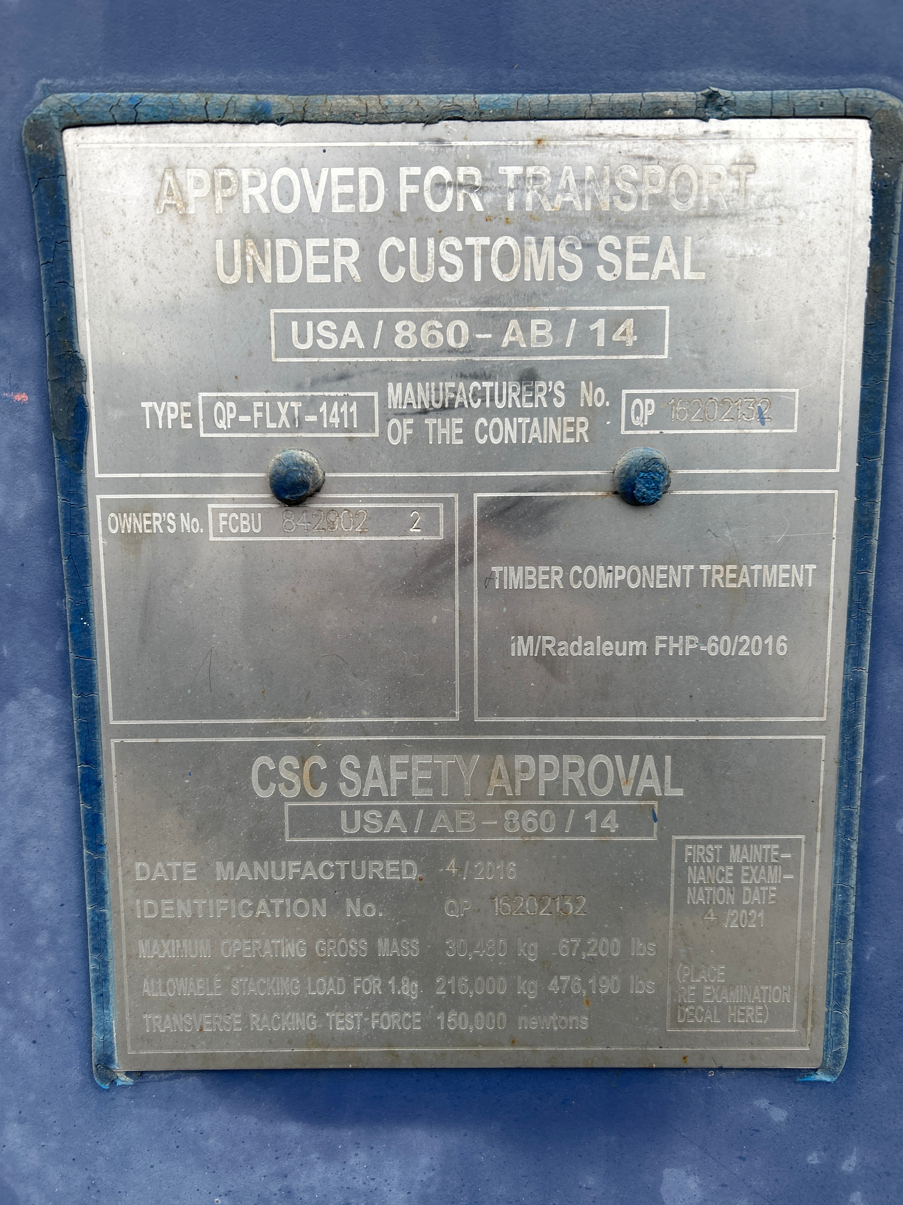 - Märkning: FCBU 842902 22G1