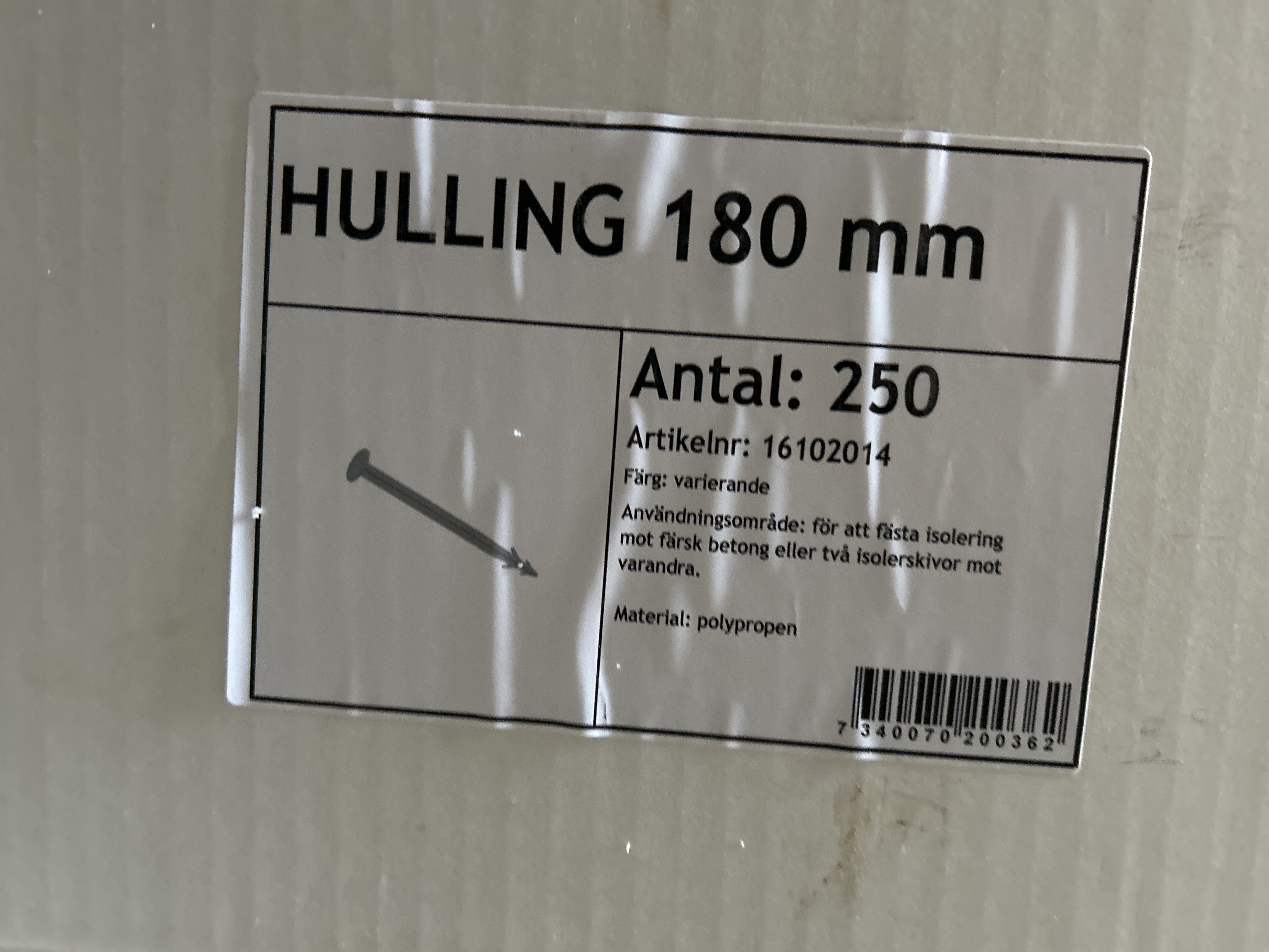 - Hulling 180 mm (för fastsättning av isolering)