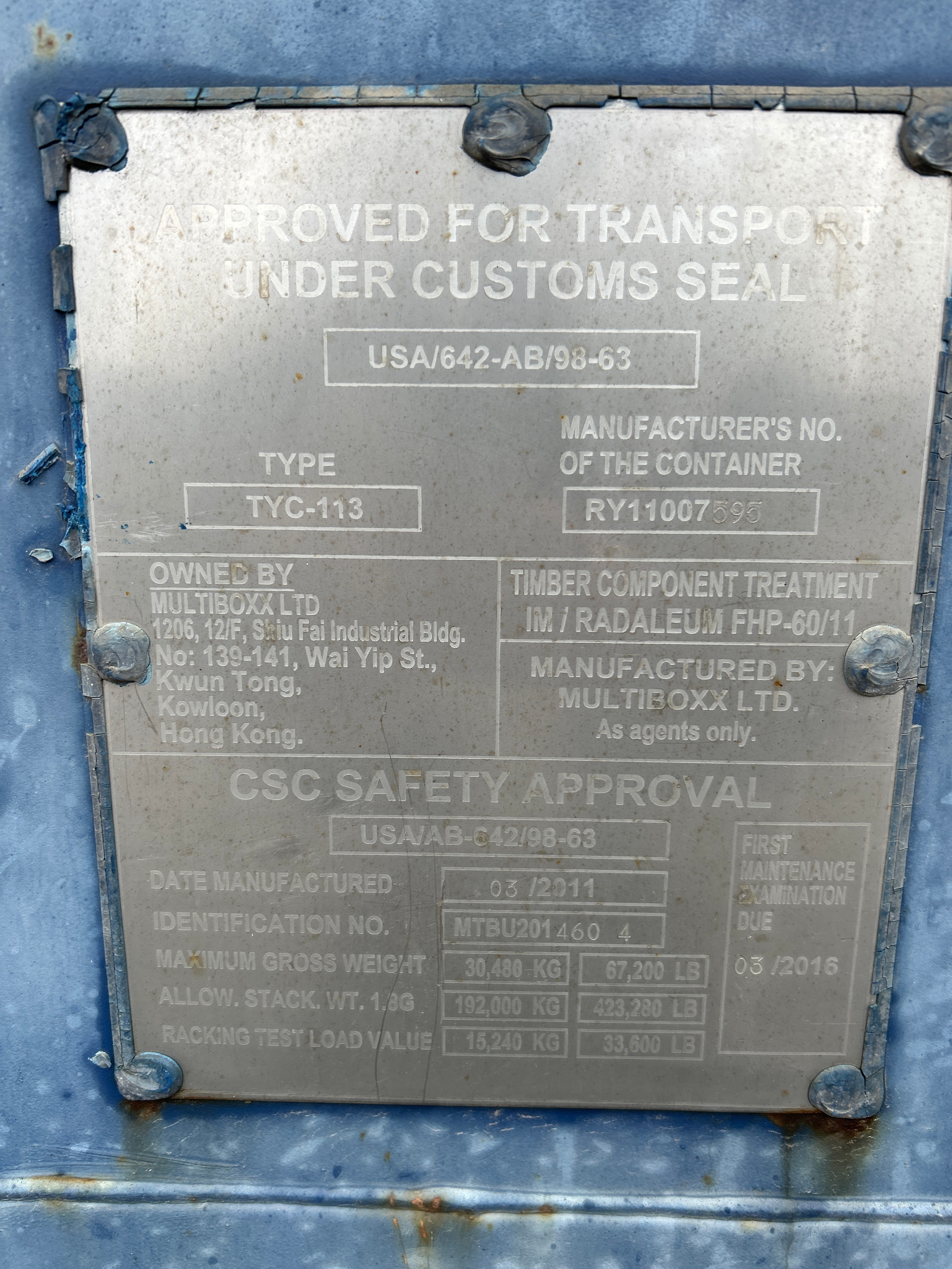 - CSC-godkänd för transport under tullförsegling