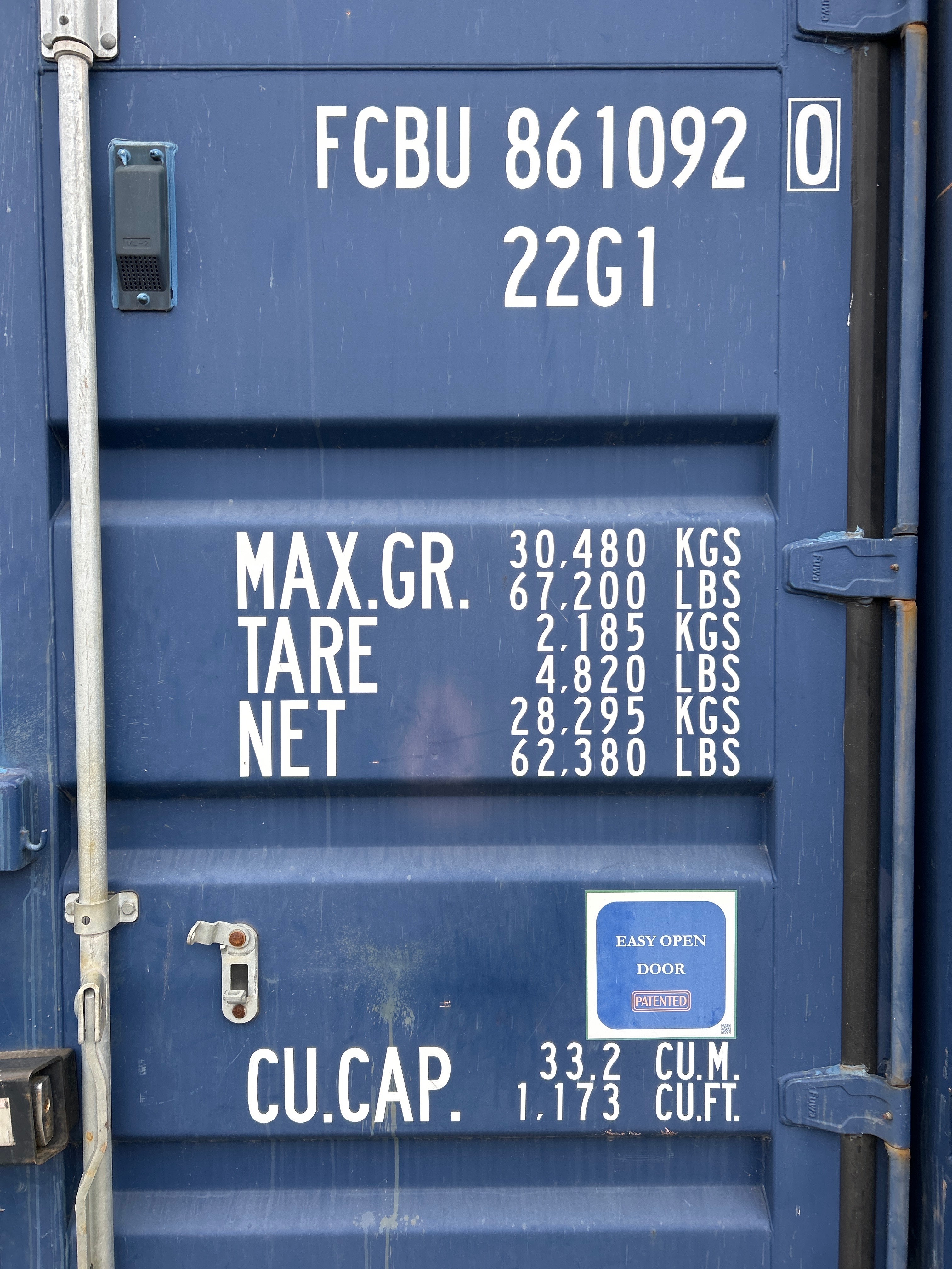 - Invändig lastkapacitet: 28 295 kg