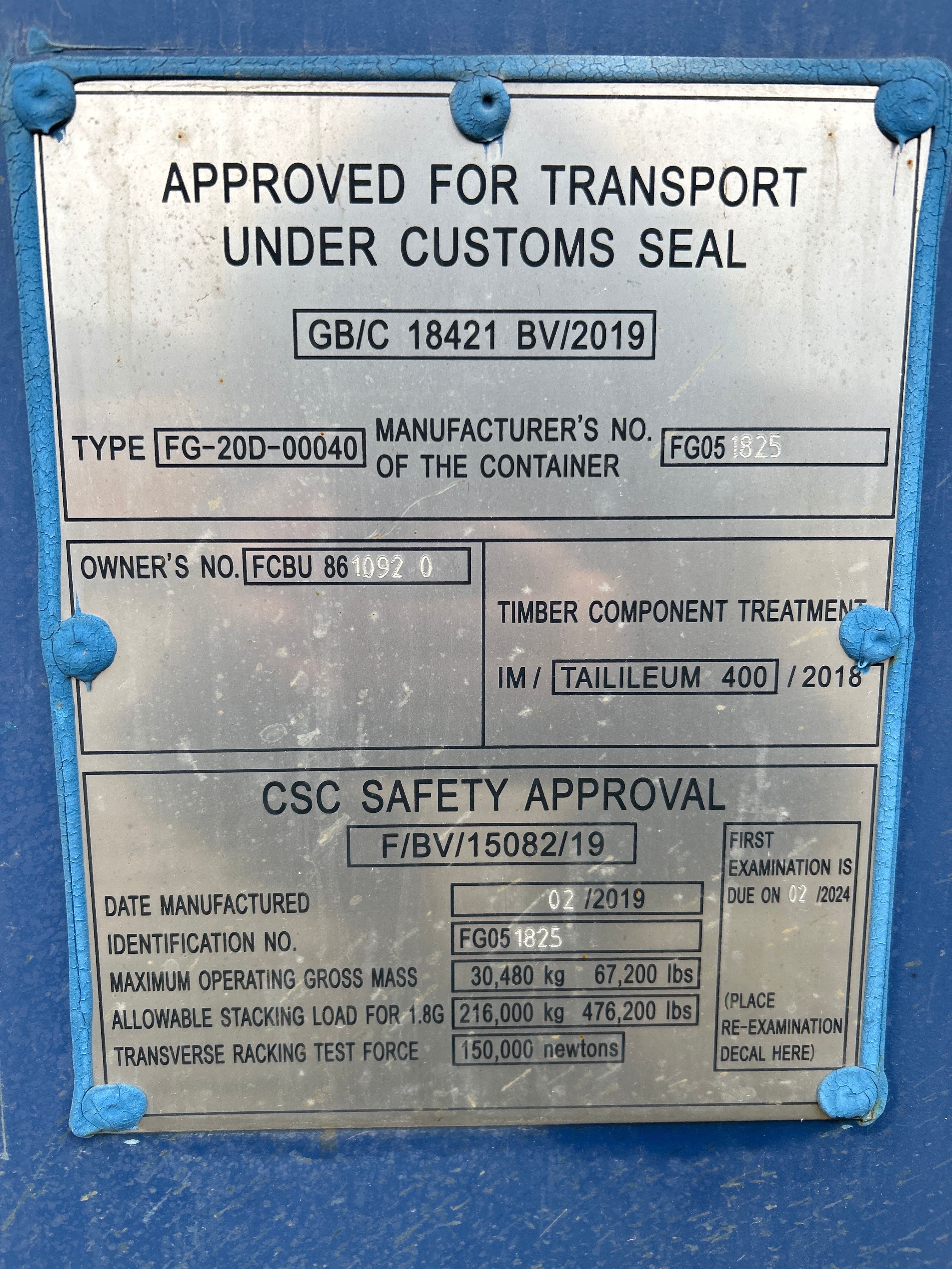 Container 20 fot med innehåll -2019