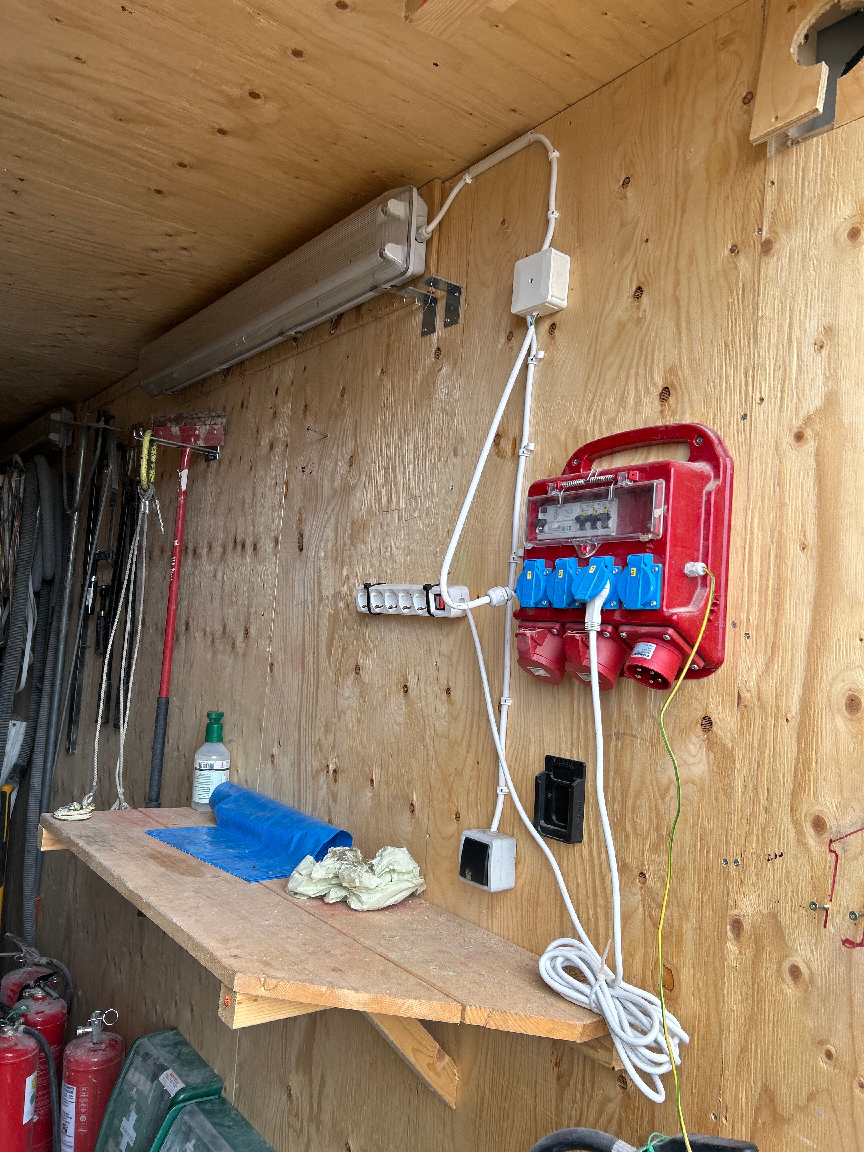 - Elektriskt material: Flera buntar av el- och kraftkablar med anslutningar.