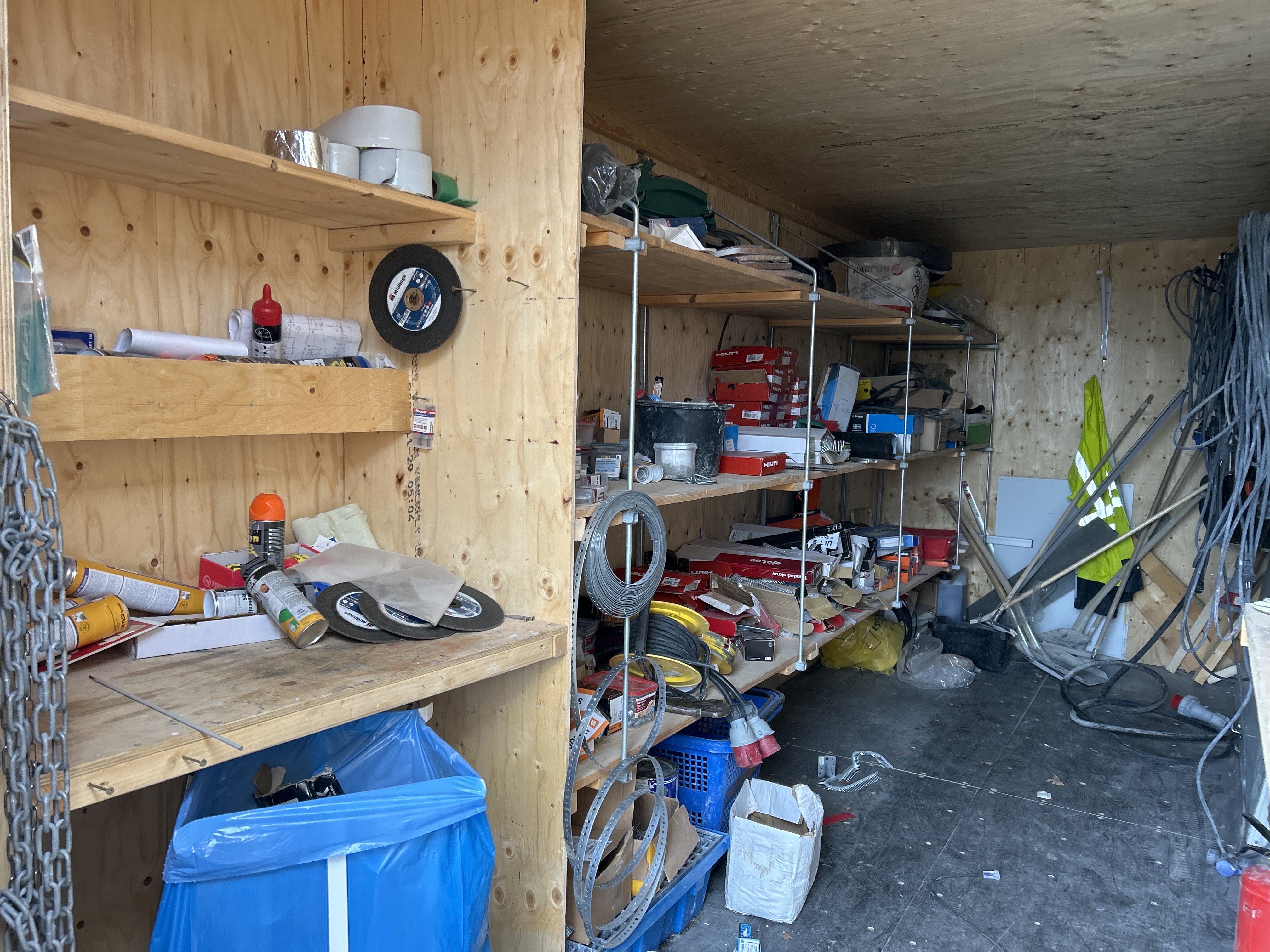 Containern innehåller ett större antal verktyg och förbrukningsmaterial, inklusive: