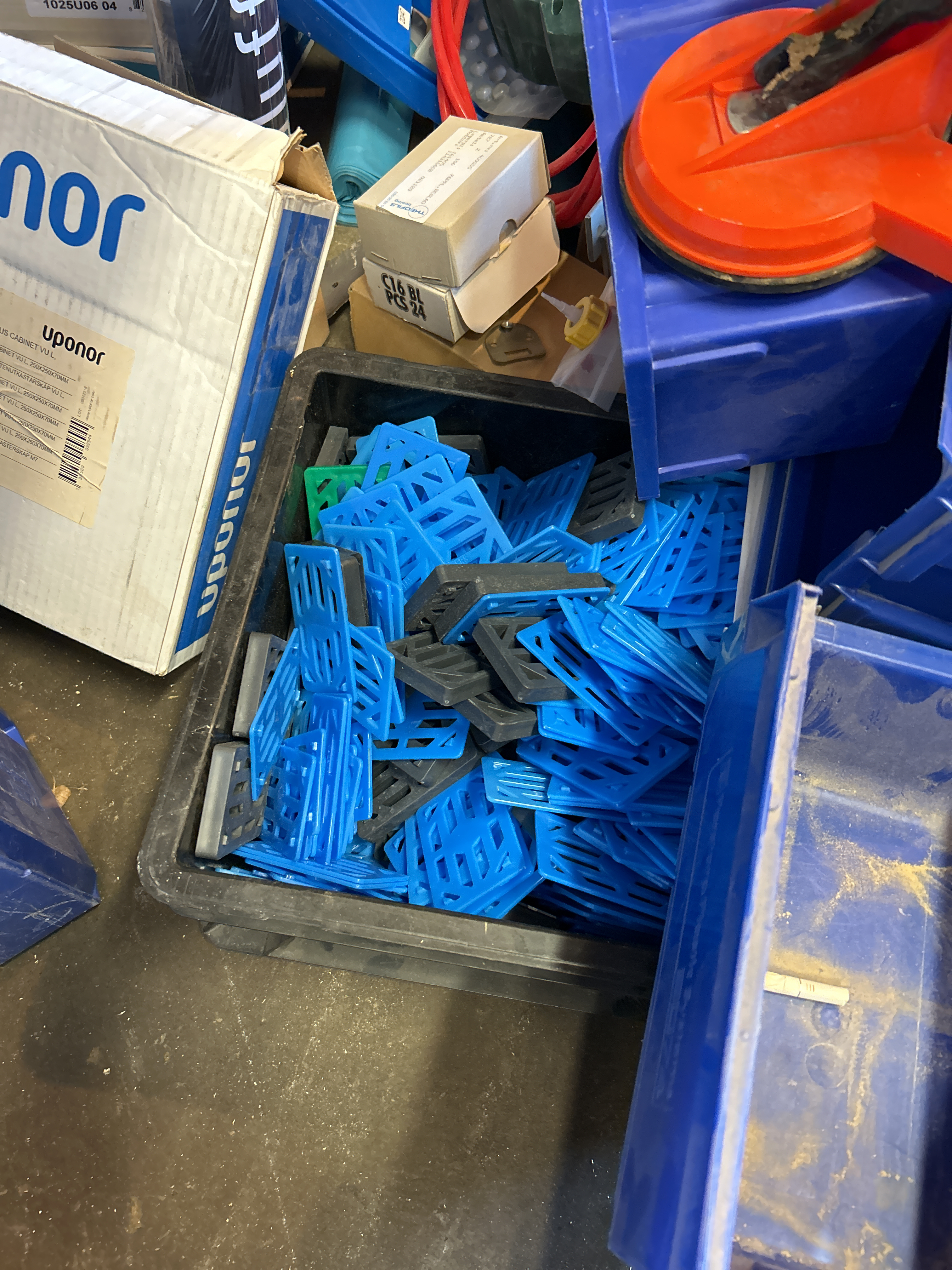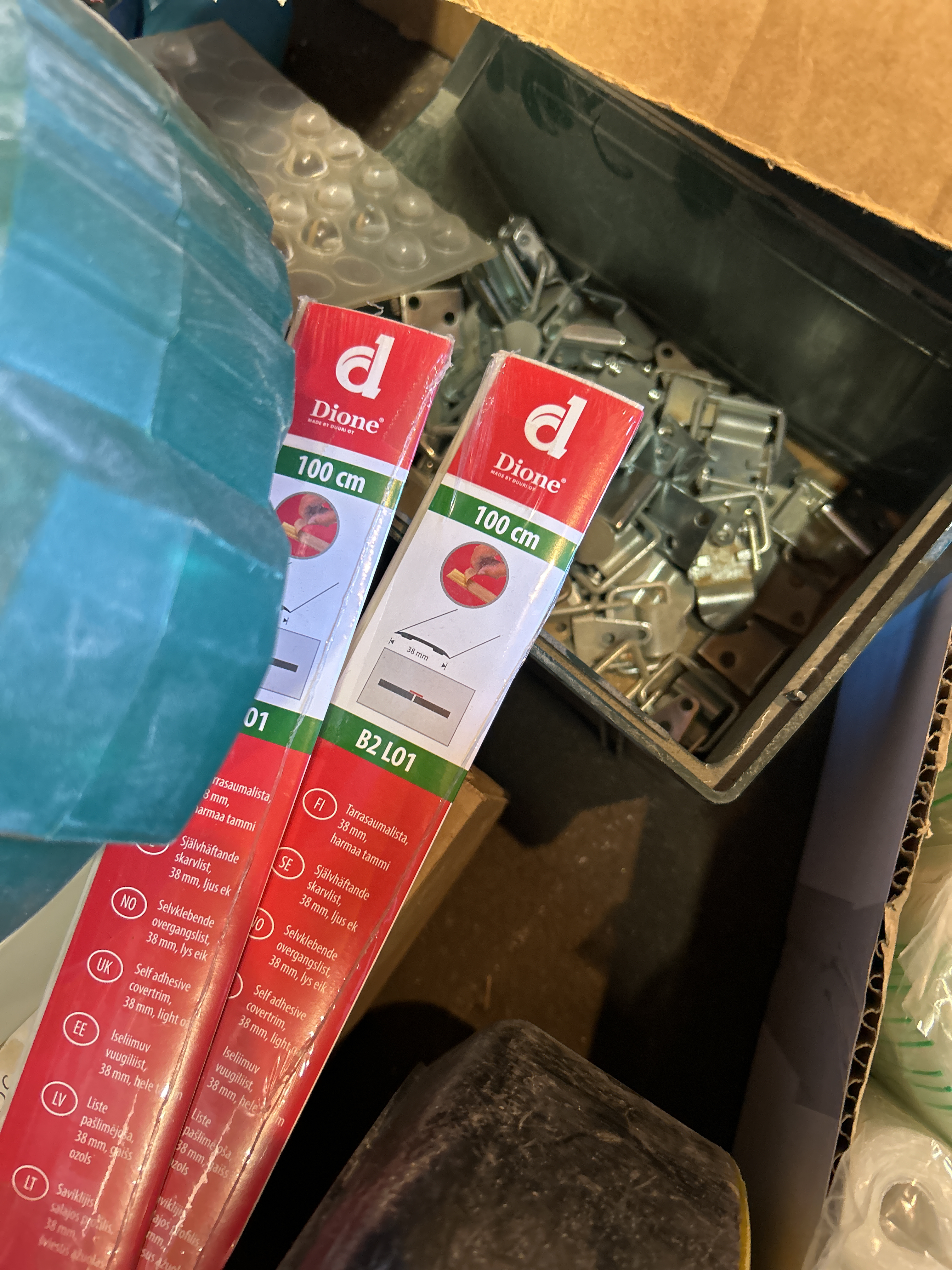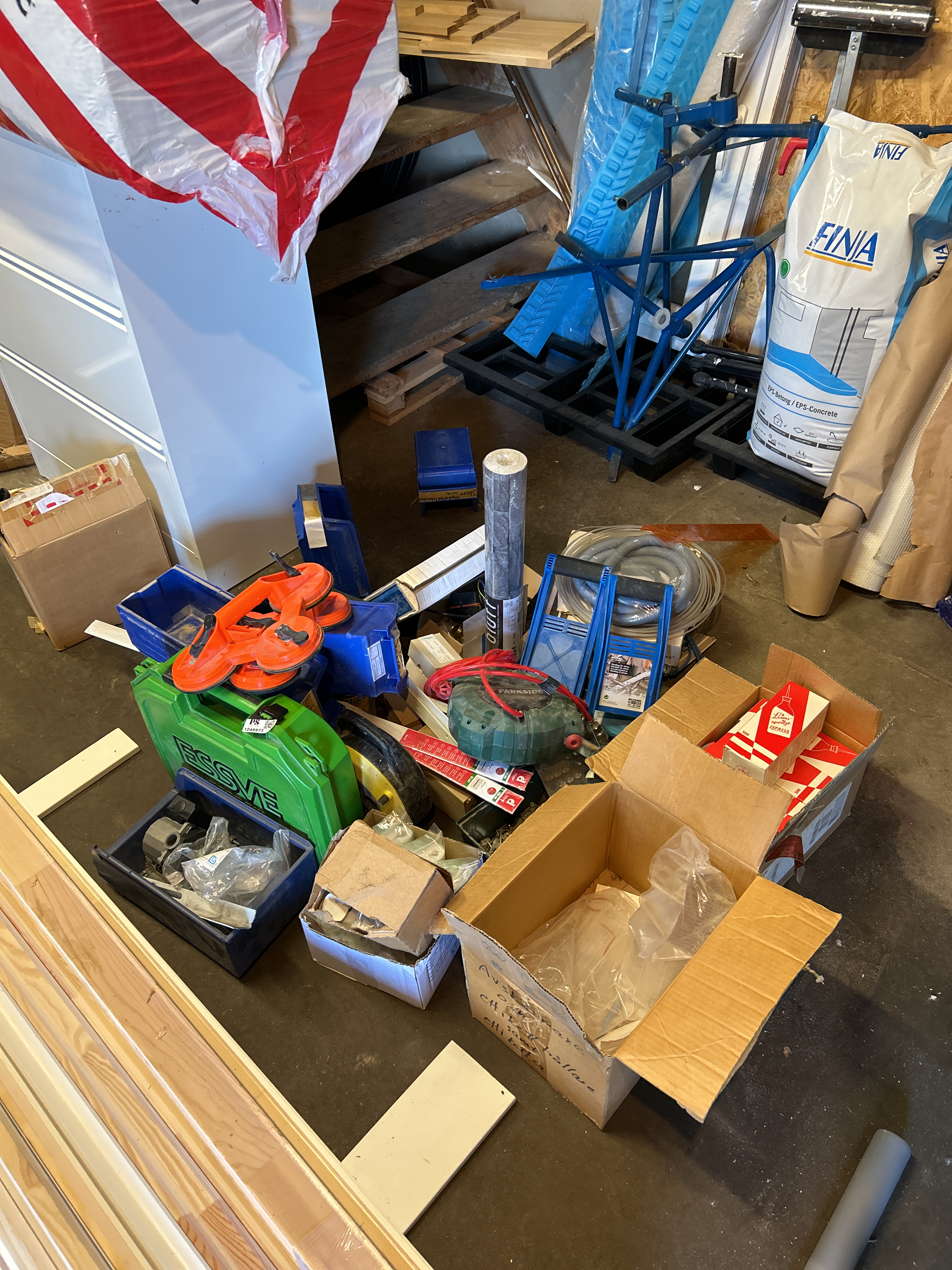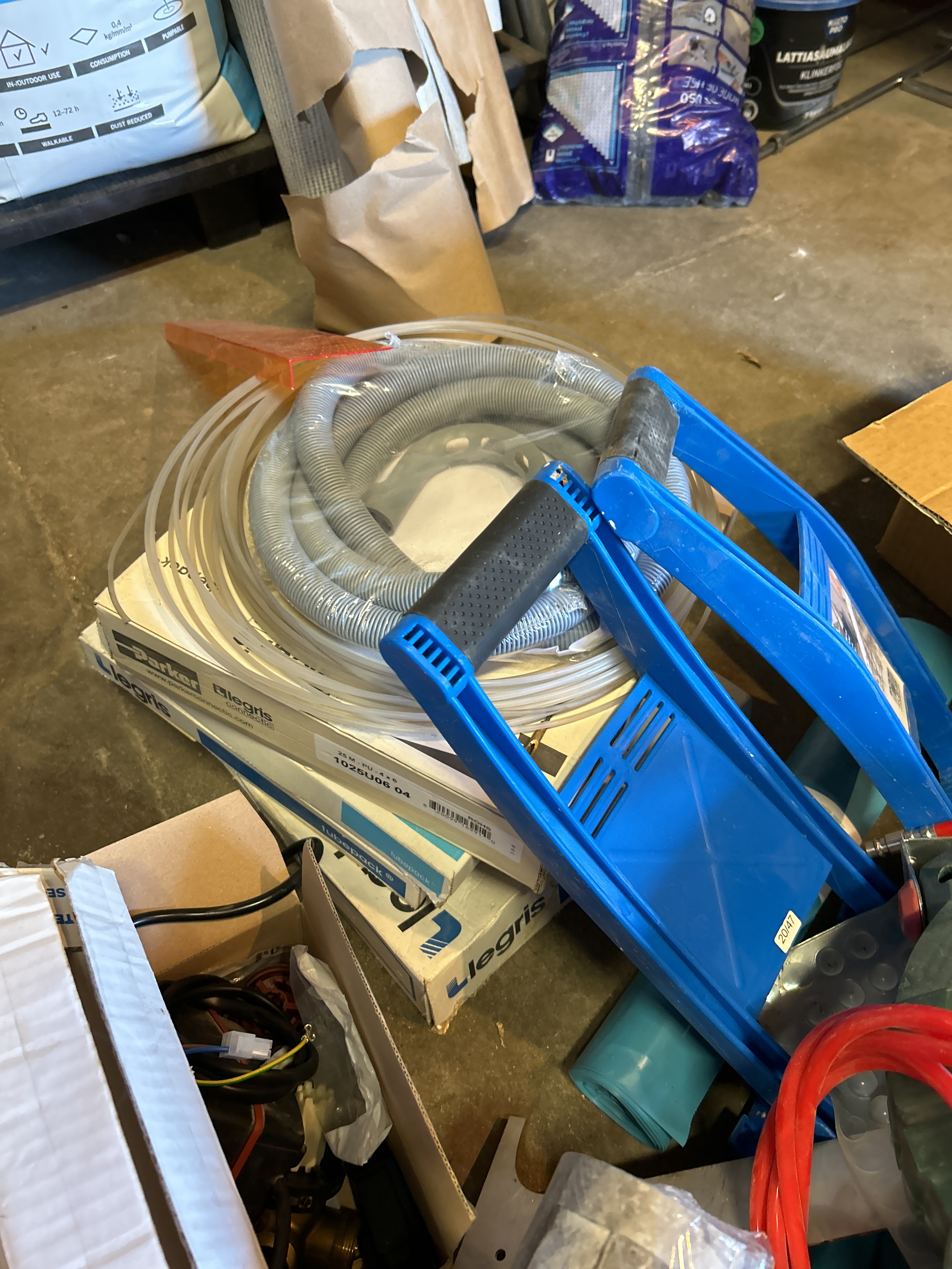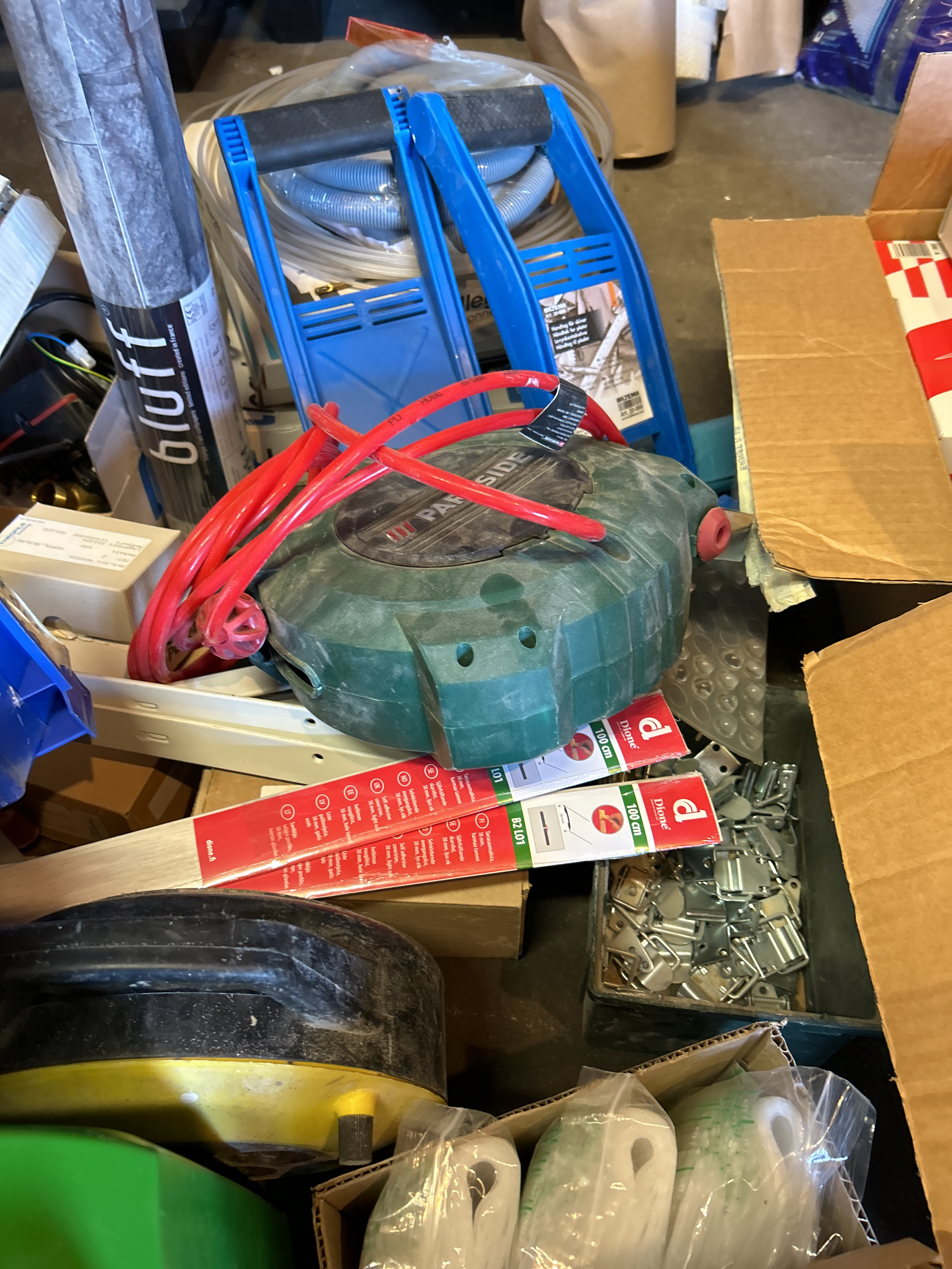 Samling med blandade objekt - Byggtillbehör, slang med mera