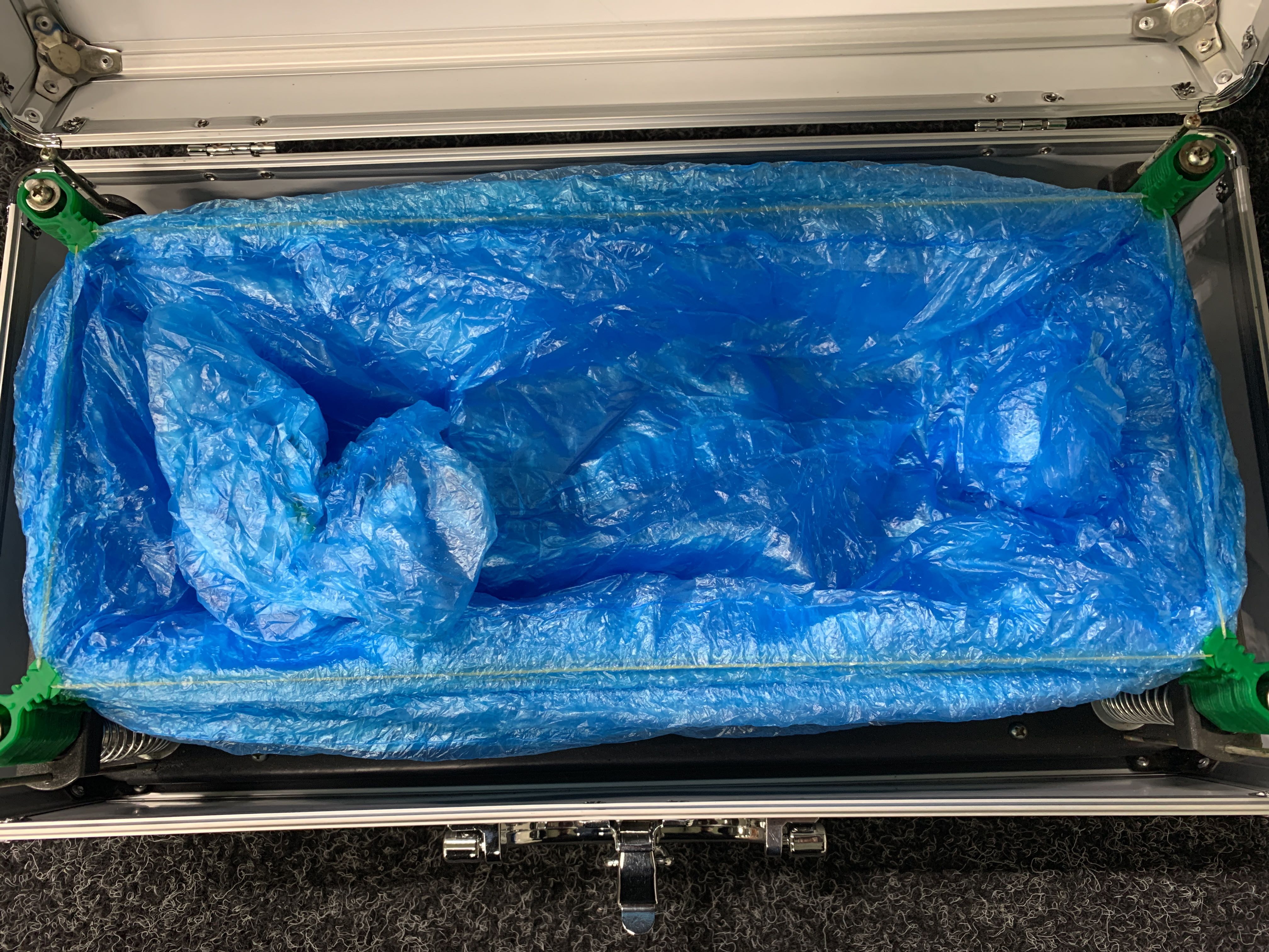Skoskyddsmaskinsystemet fungerar på en mekanisk fjäder. När du kliver in i mitten av lådan släpper den automatiskt ett skoskydd runt din sko.