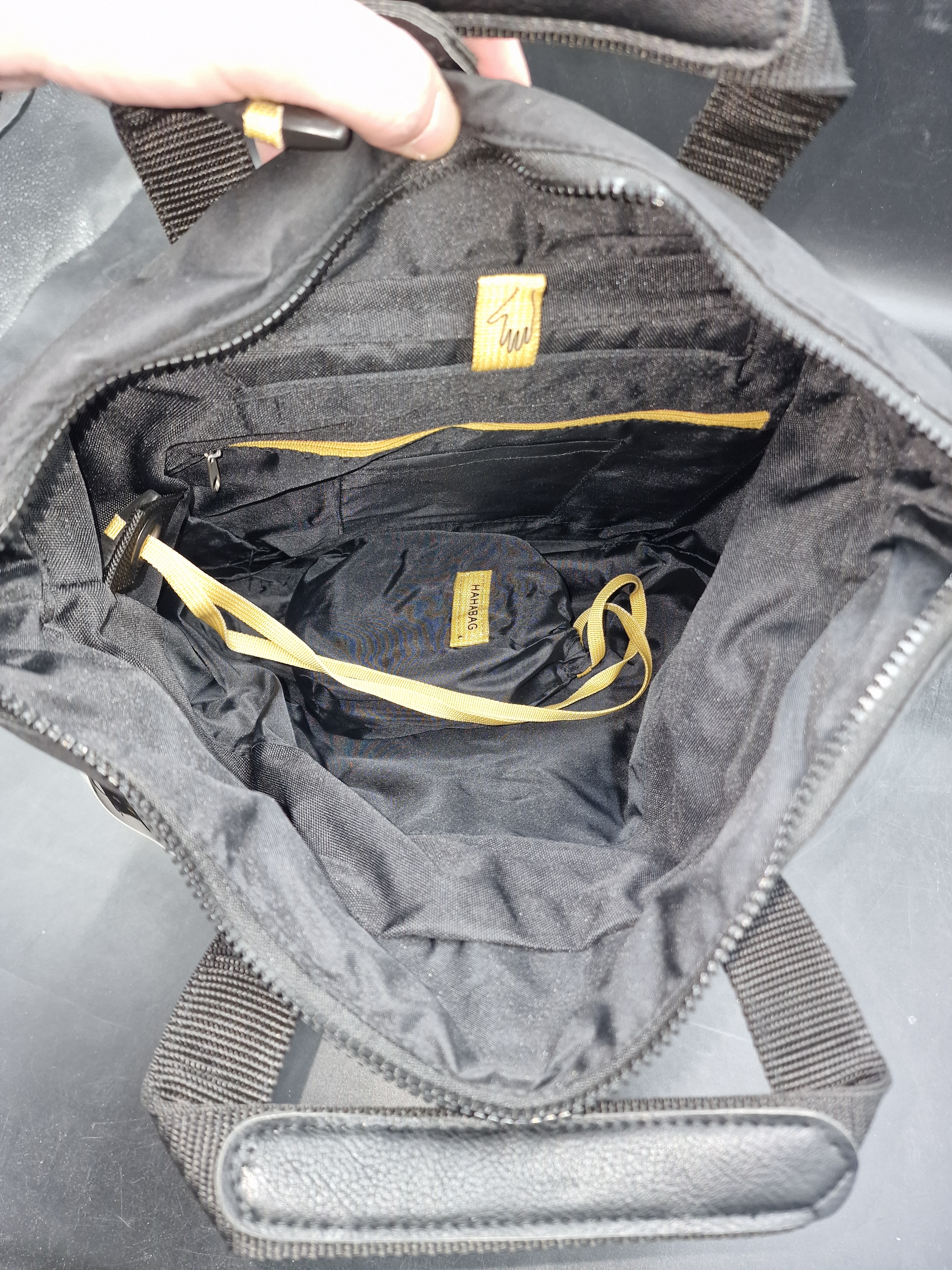 Detaljer: Logo tryckt på reflex. Liten ficka mitt fram. Botten förstärkt med konst läder. Svart foder, två inner fickor en med dragkedja. För stabilitet och skydd är baksidan och botten förstärkt med board.