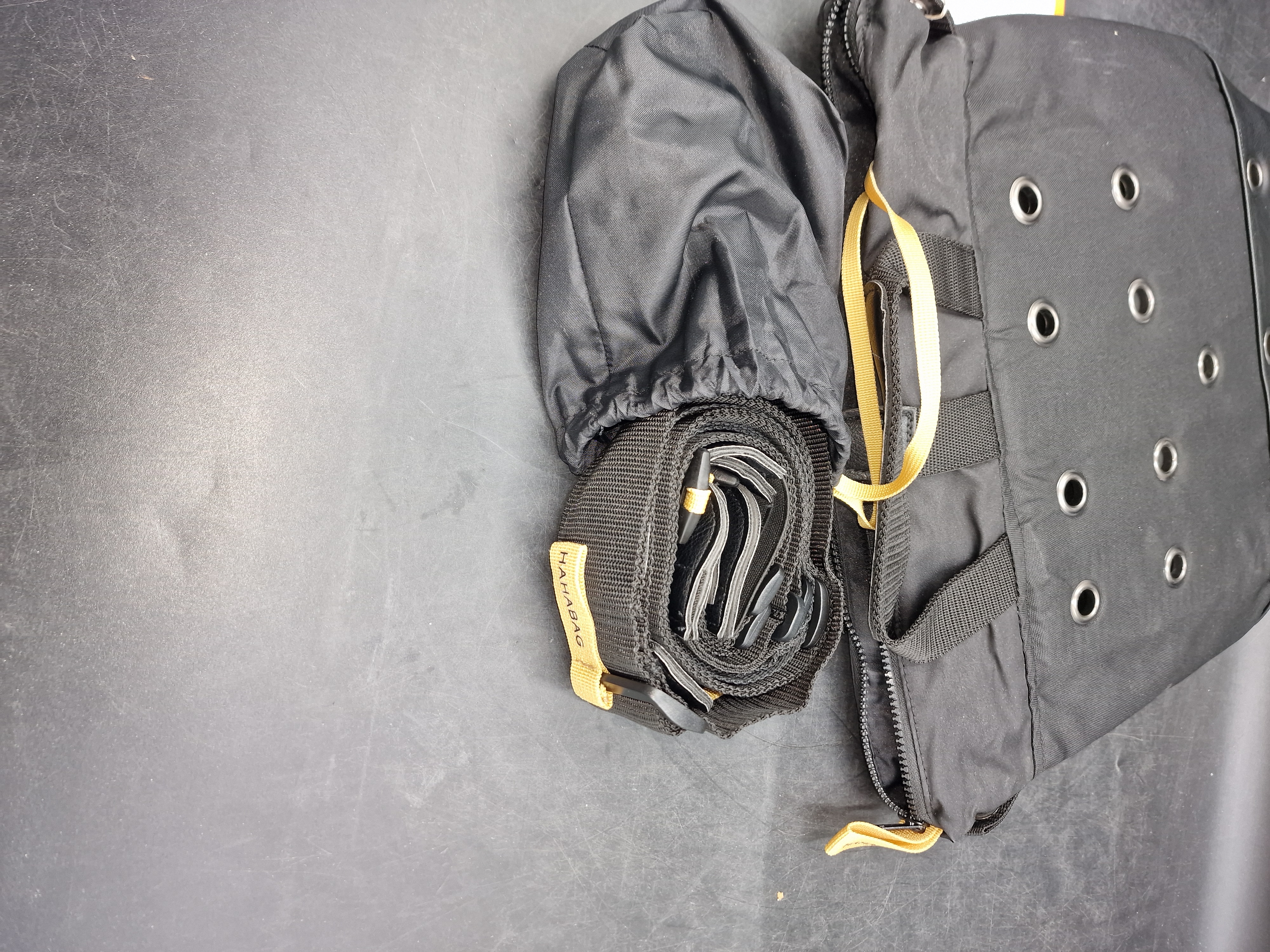 Inkluderar påse med axelrem, ryggsäcks remmar, rem för resväska samt förankrings rem.