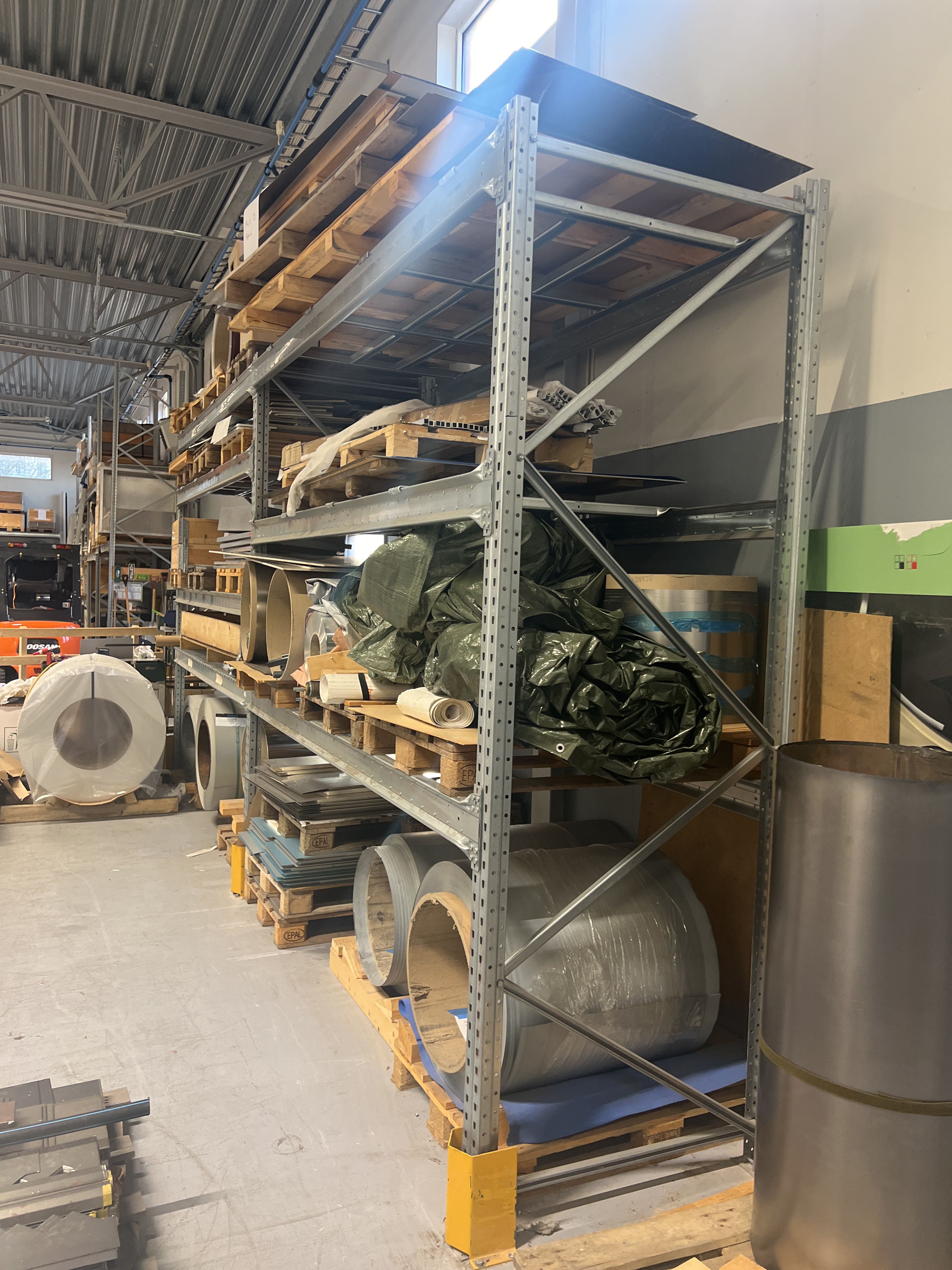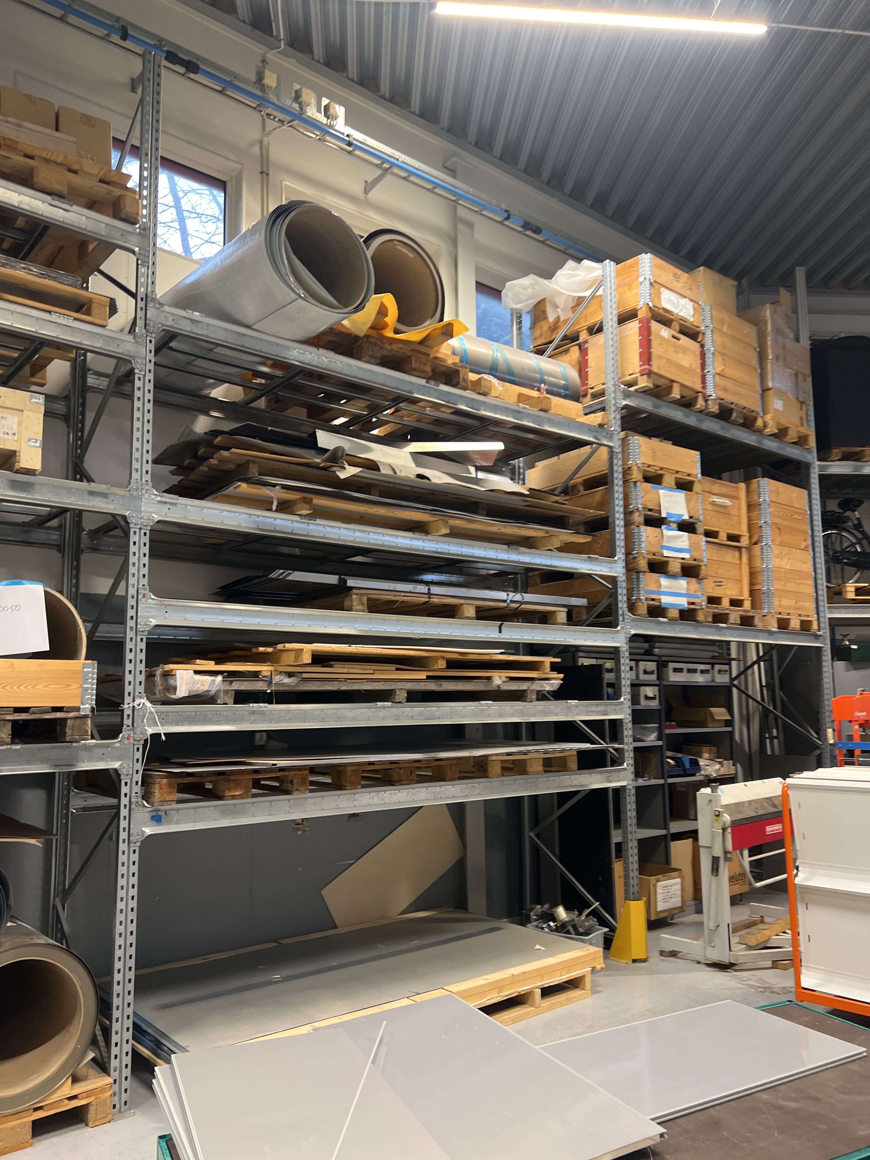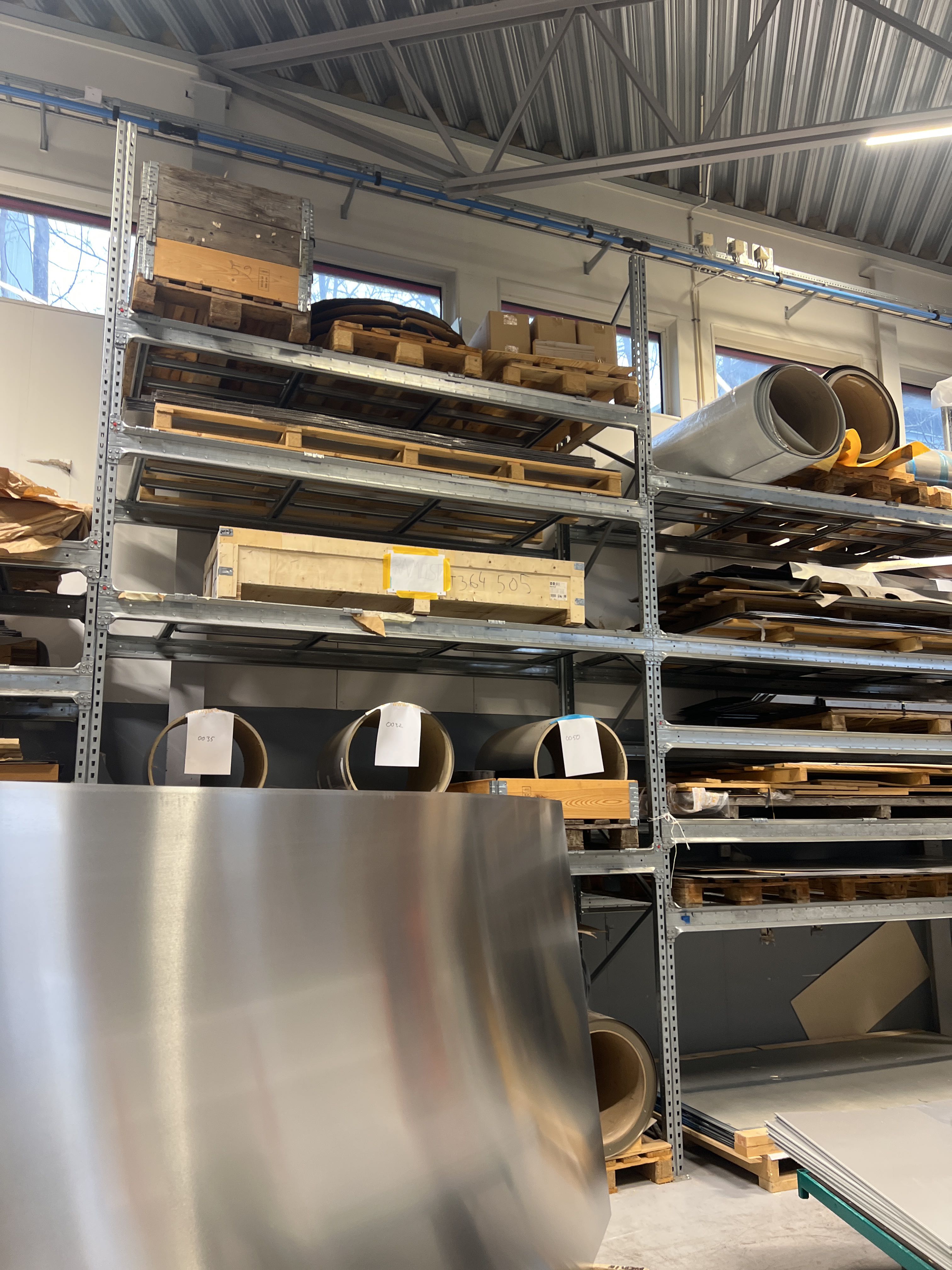 Lager med plåt, plåtband, aluminium, rostfristål, stål, kärnmaterial m.m.