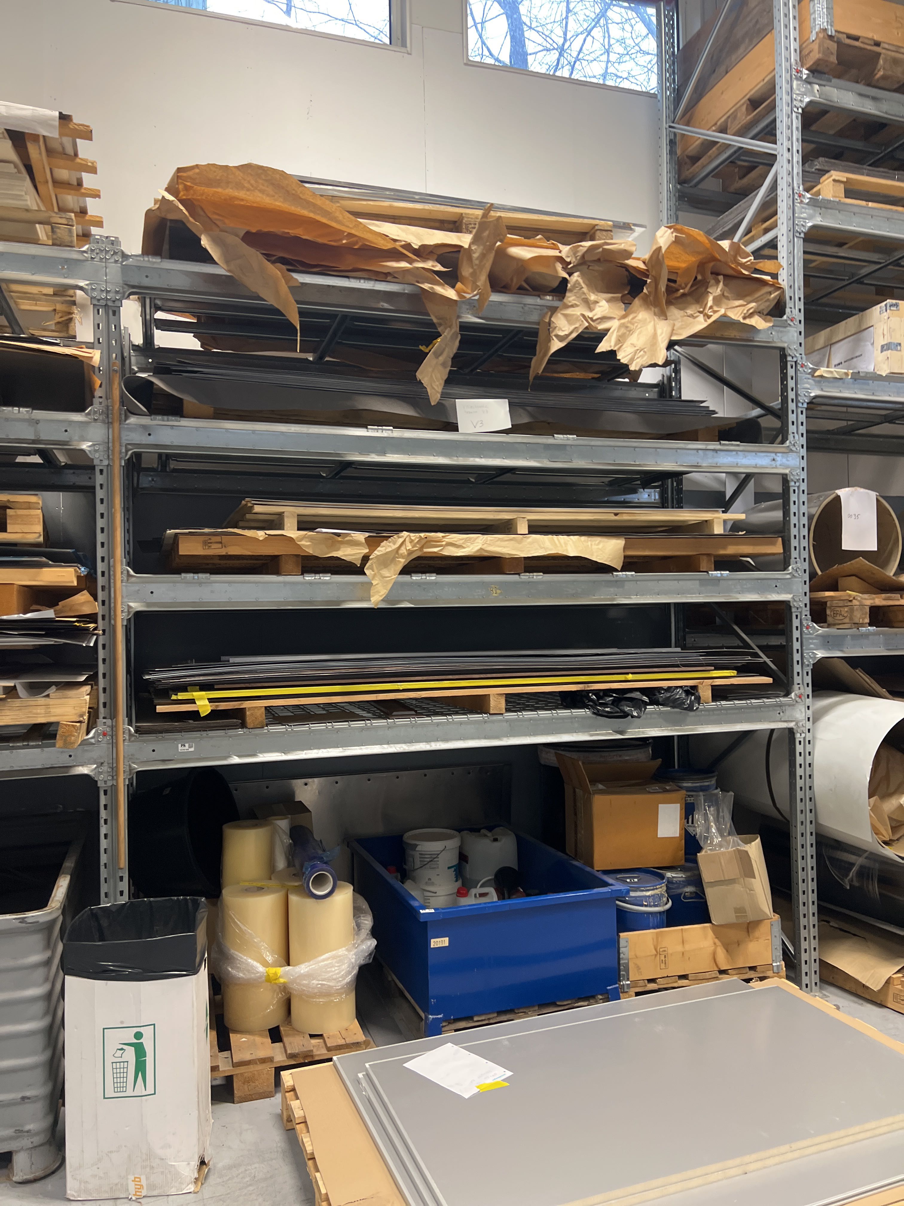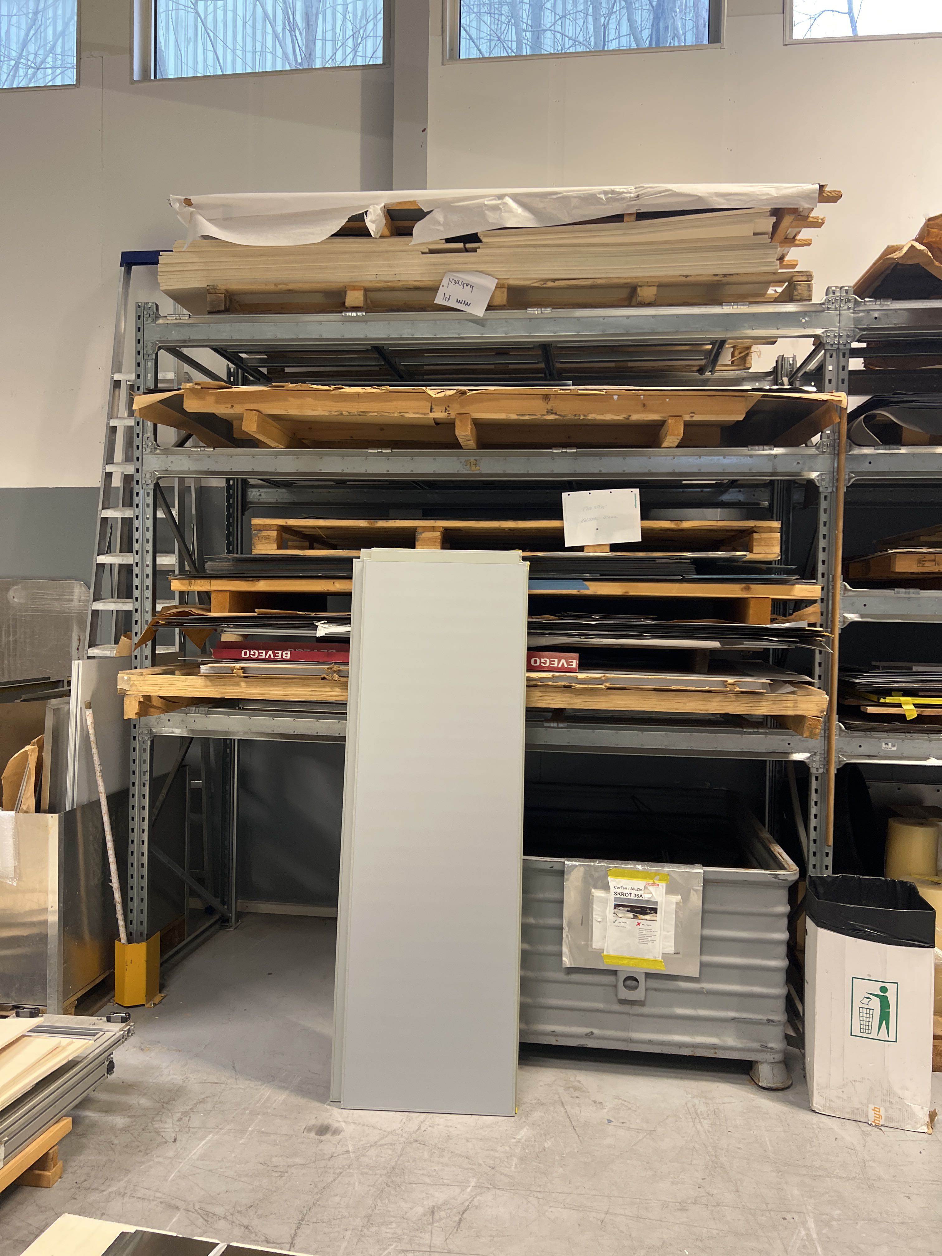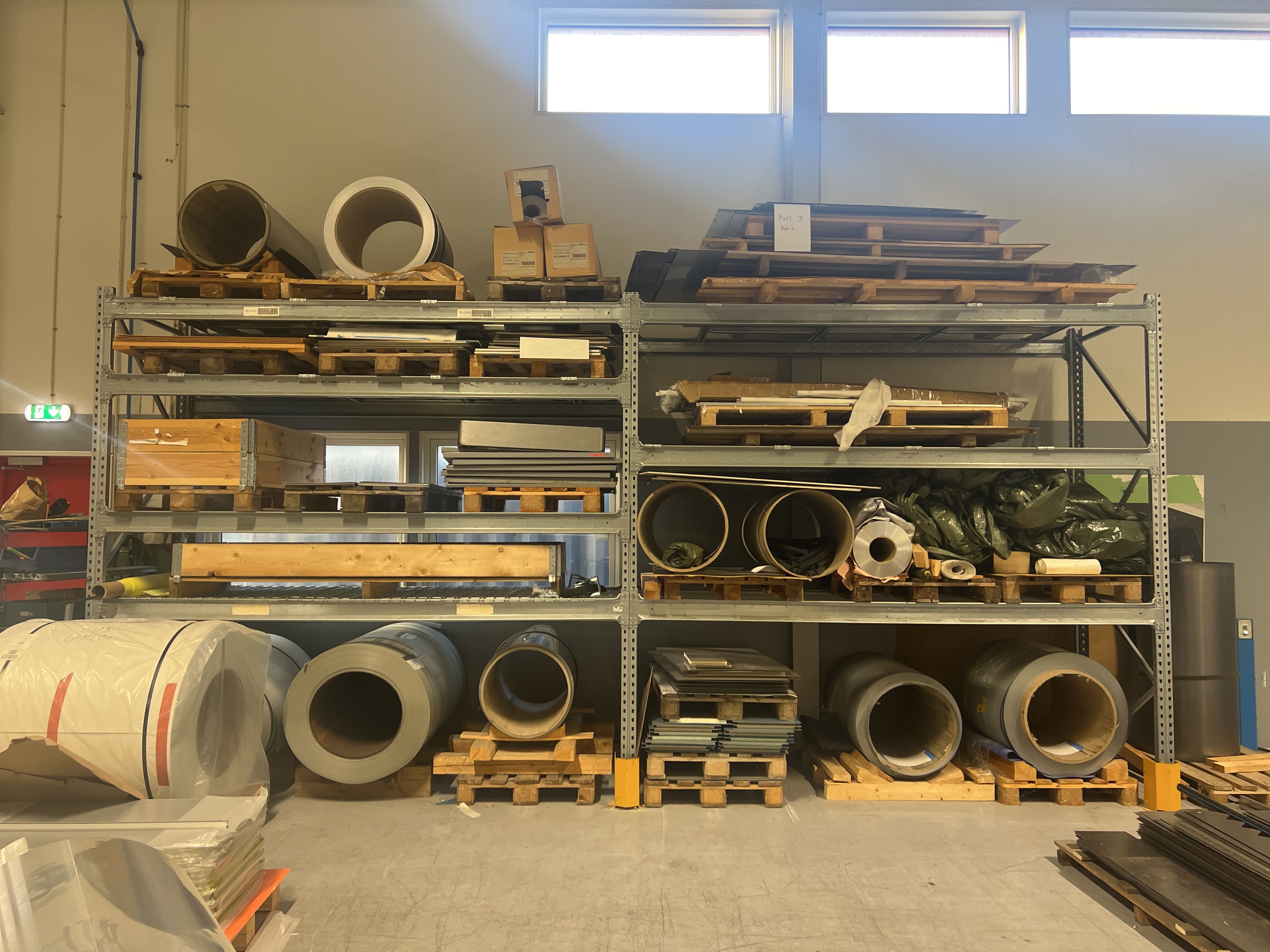 Lager med plåt, plåtband, aluminium, rostfristål, stål, kärnmaterial m.m.