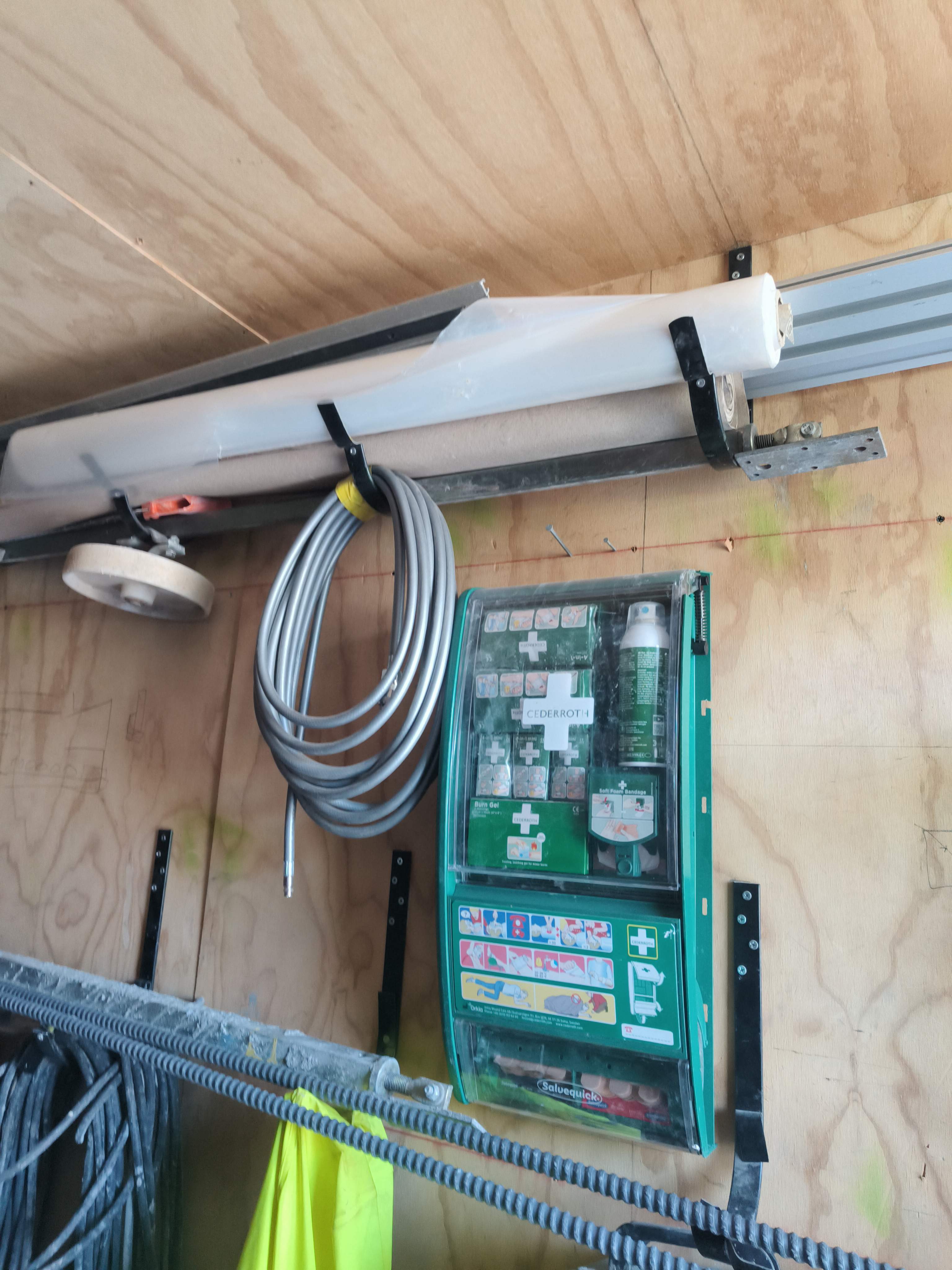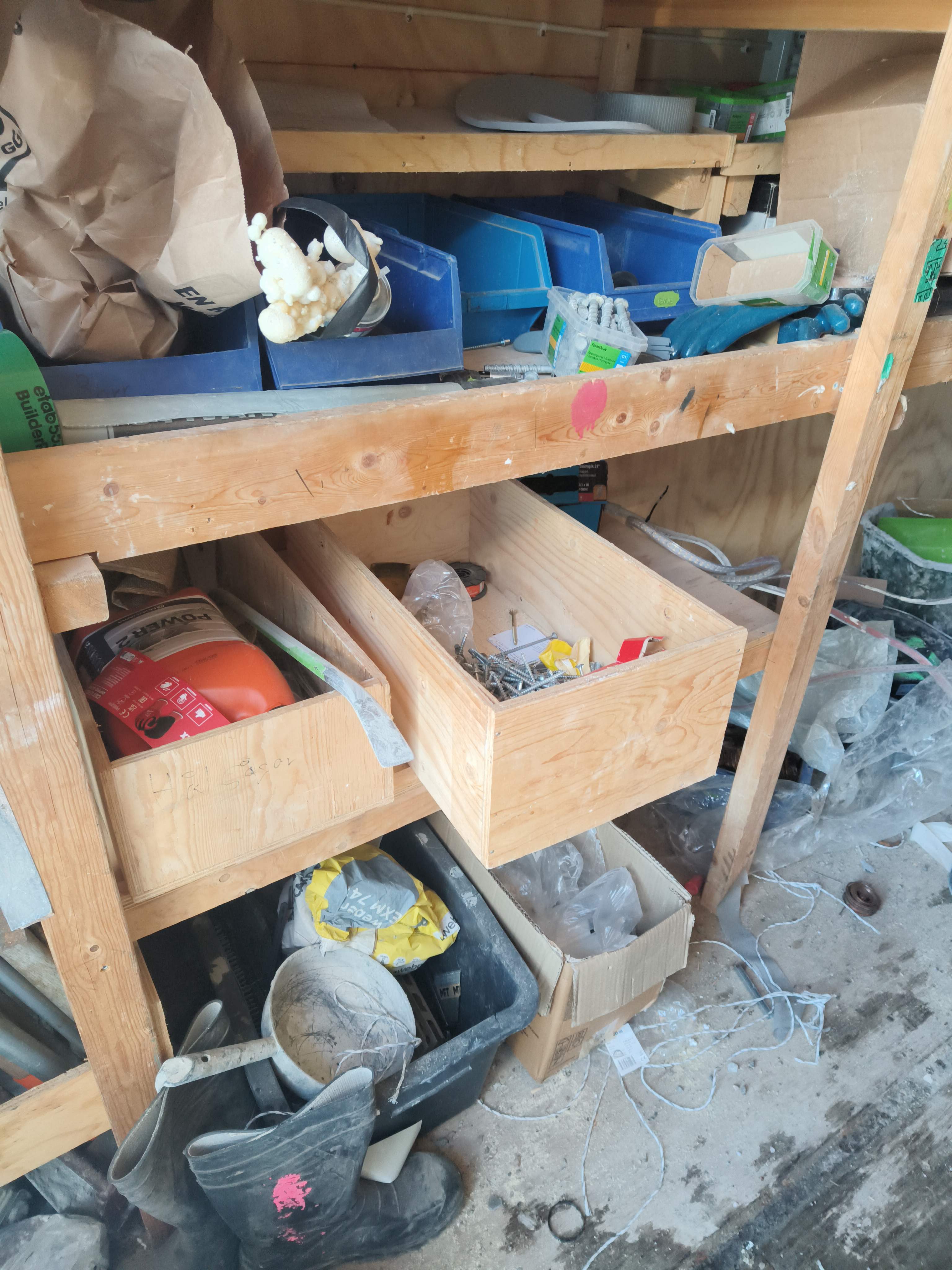 Innehåller diverse skruv, skarvkabel och tillbehör för bygg.