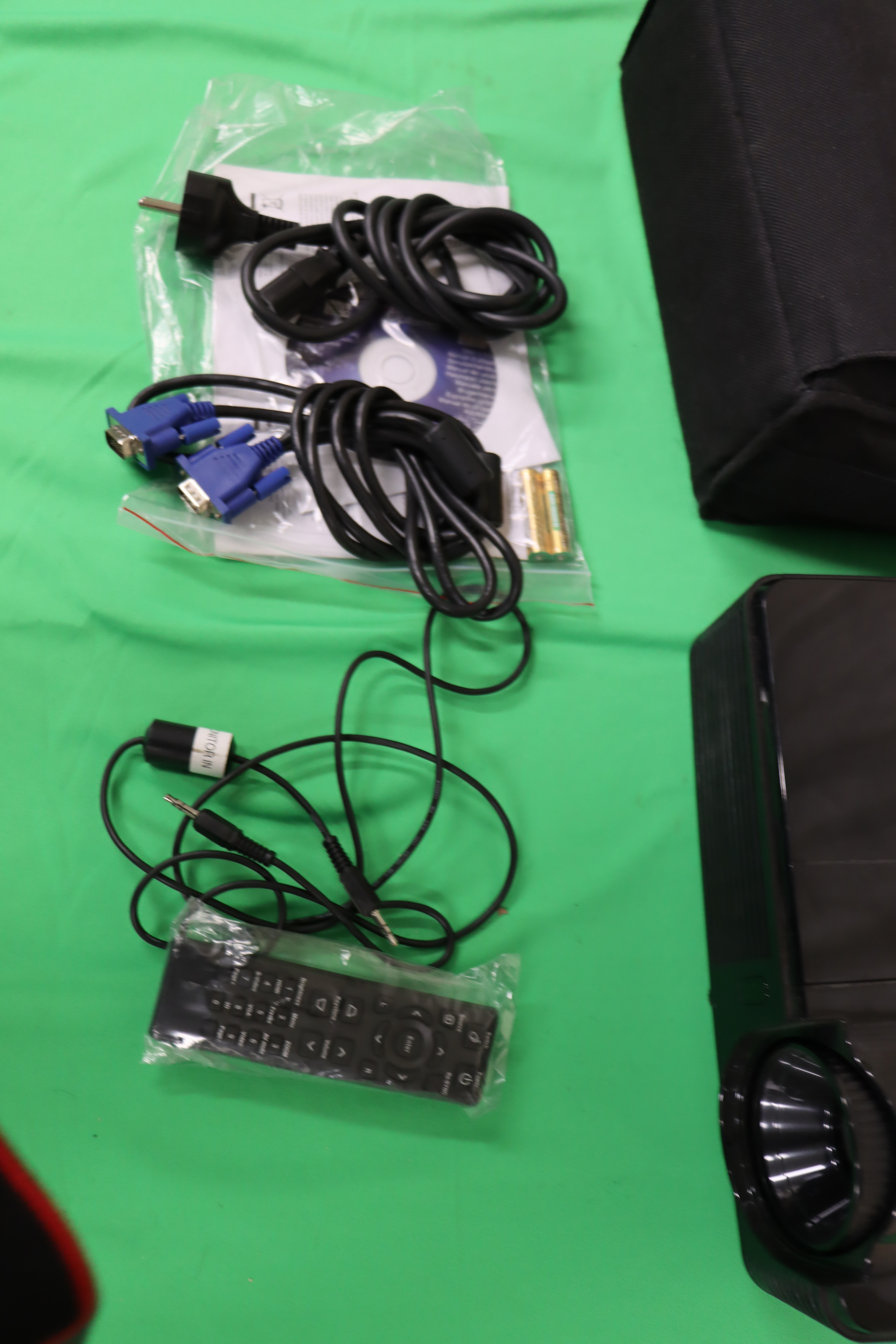 Asus TUFGaming-dator, flera HP EliteBooks, Lenovio Yoga samt etikettskrivare, projektor, LED-ringljus och Bluetooth-högtalare.