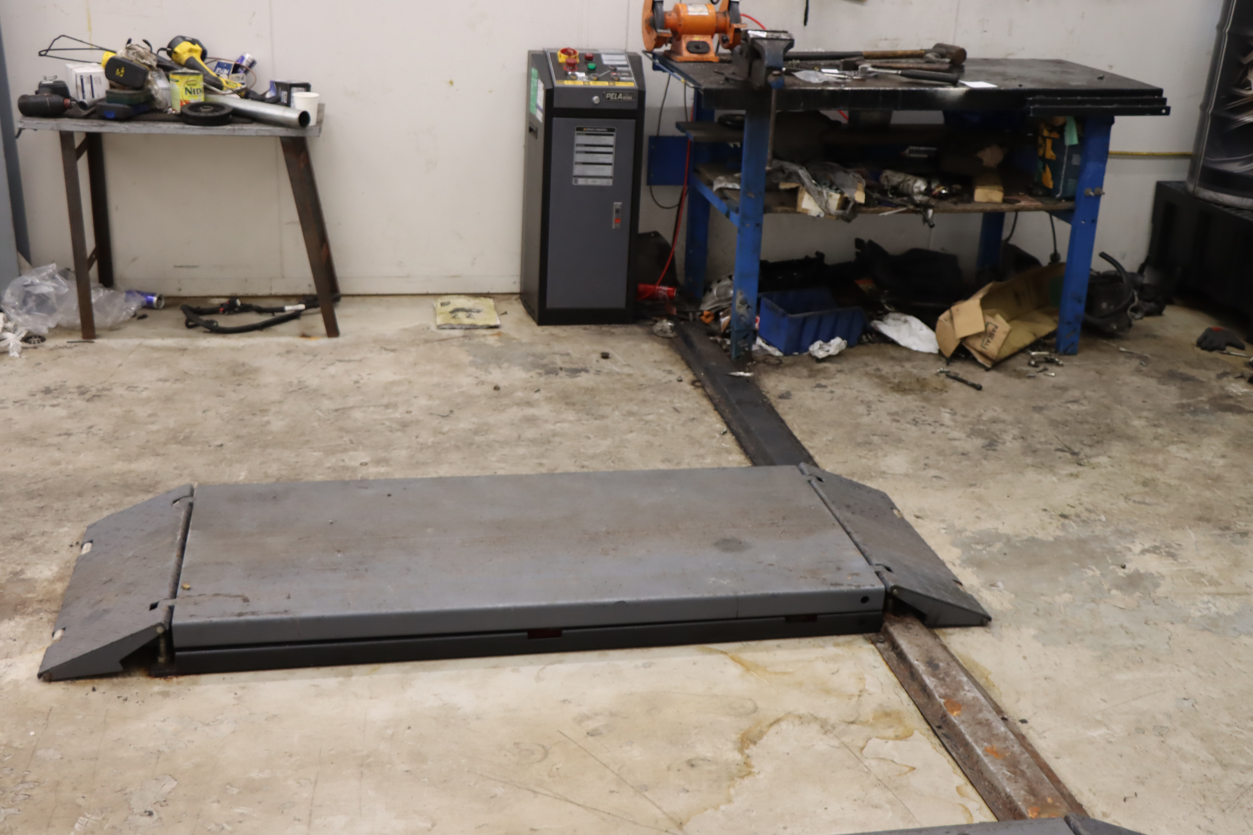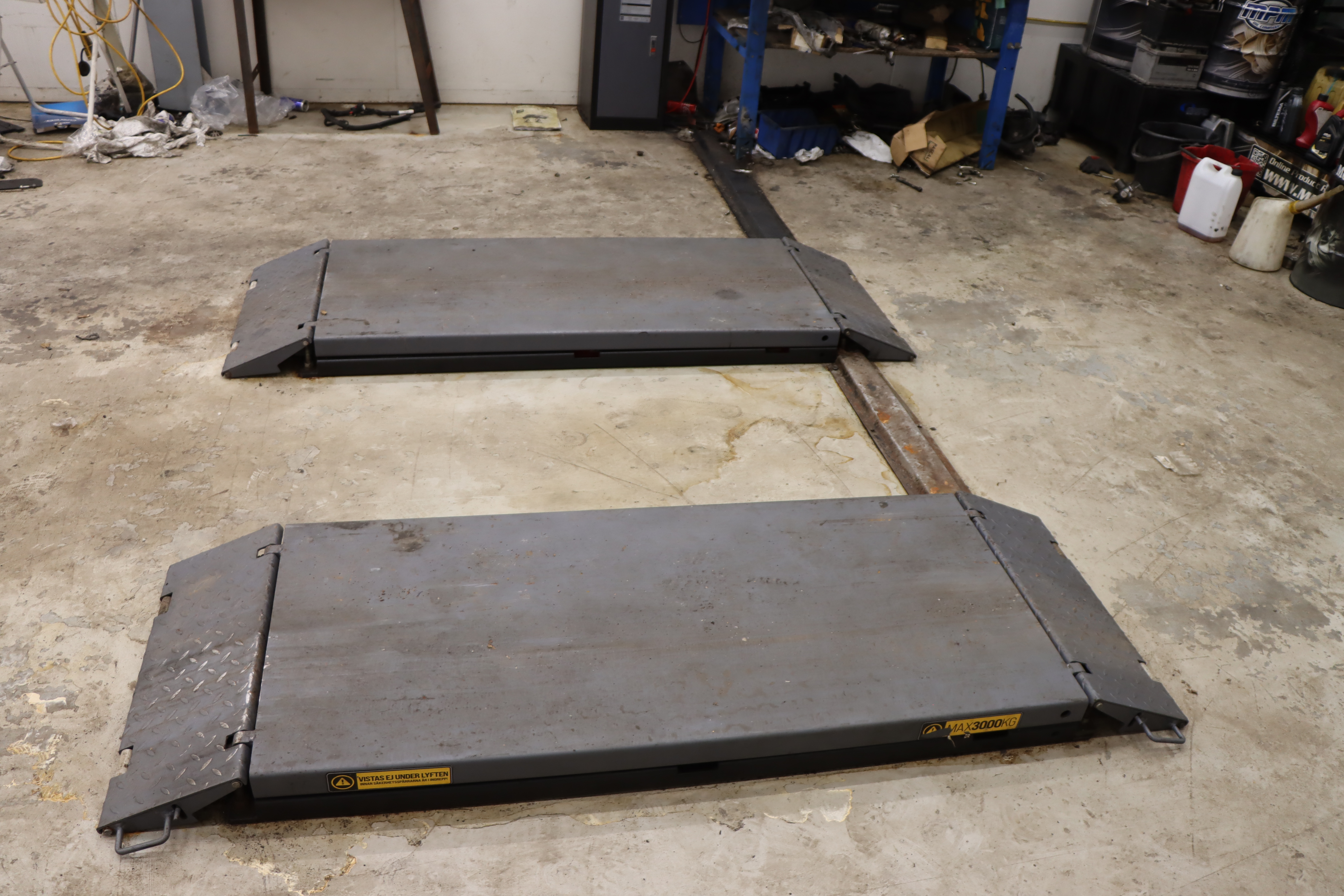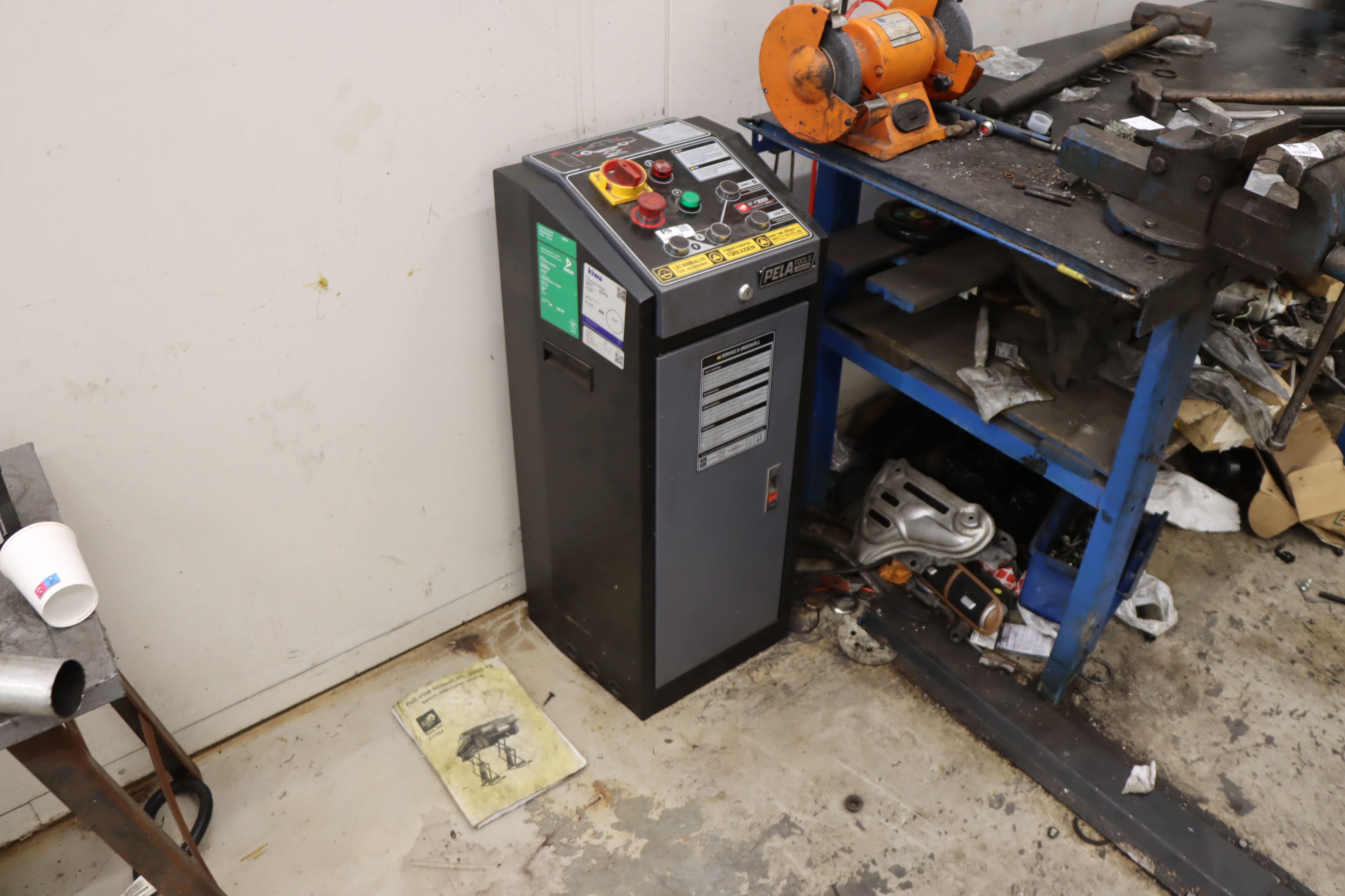 Auktionen innehåller: Saxlyftar, 2-pelarlyft, däckbalanseringsmaskin, verktyg m.m