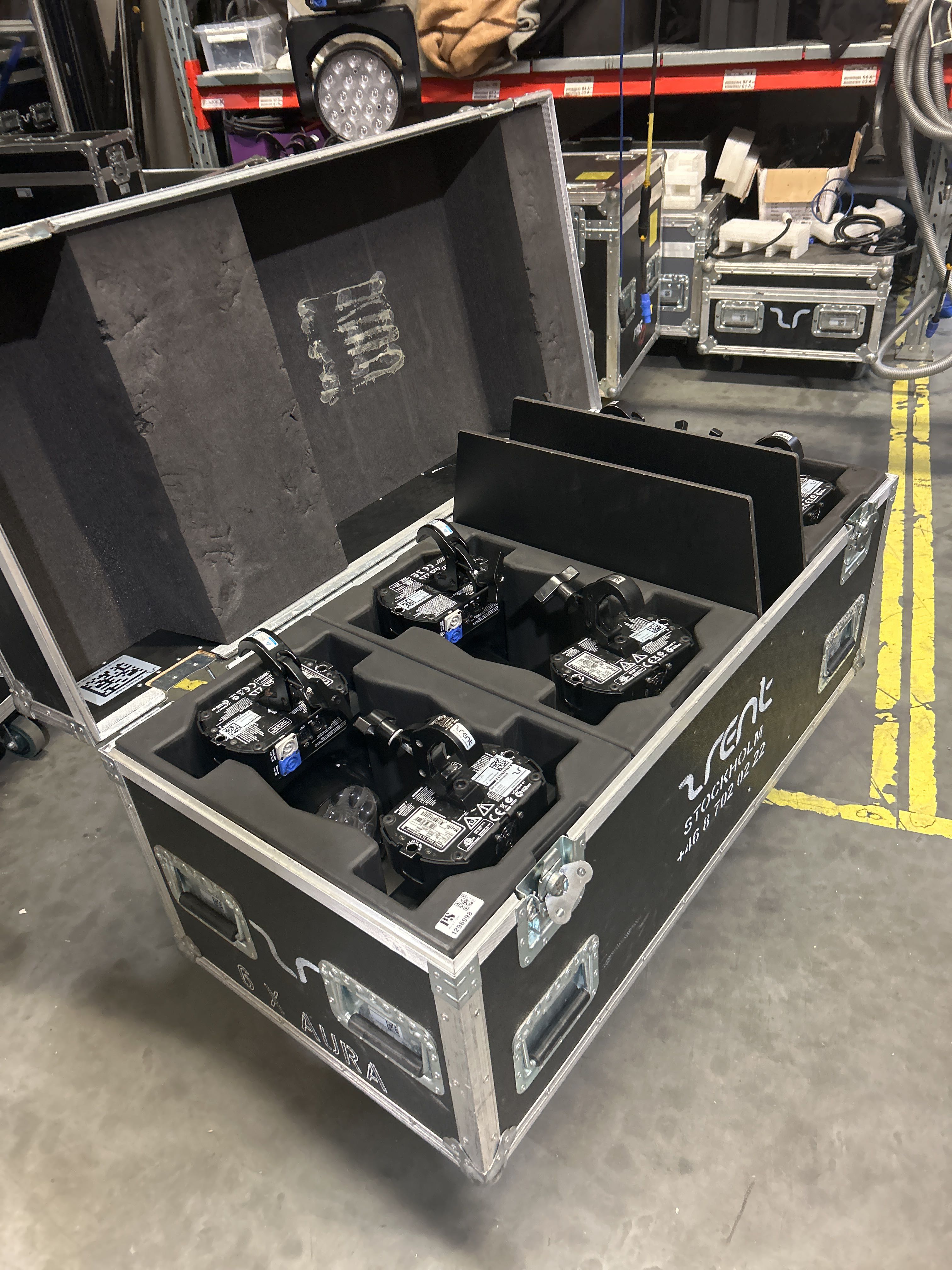 Rörliga strålkastare 6 st - Martin MAC Aura, Wash, RGBW, DMX5 i case