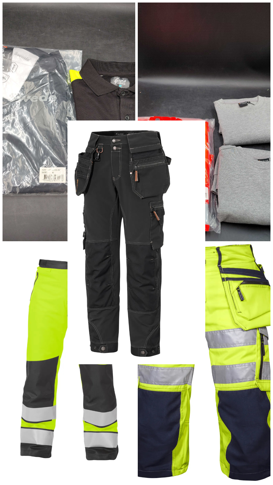 Arbetskläder i olika storlekar