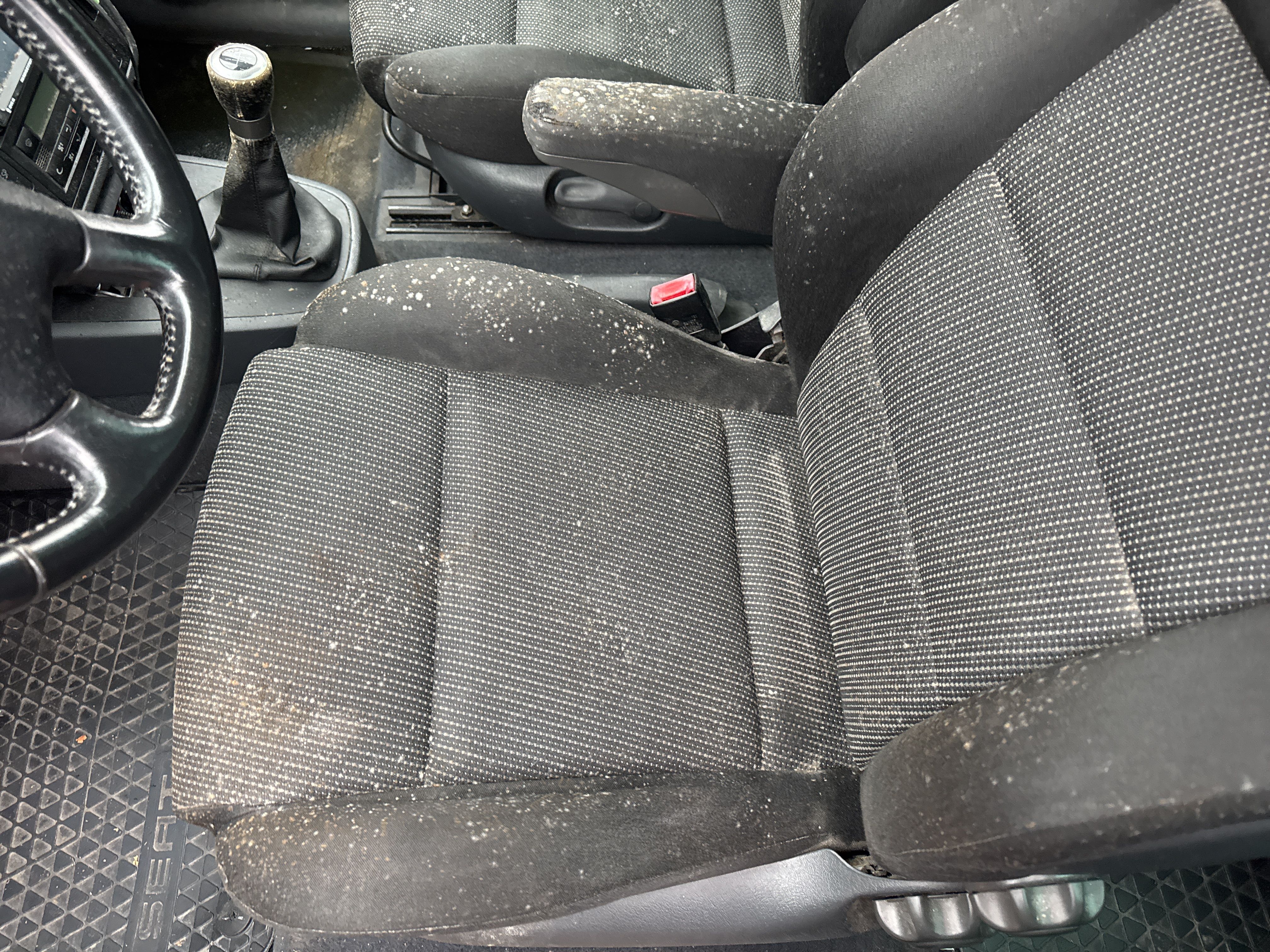 Det är vita fläckar på säten