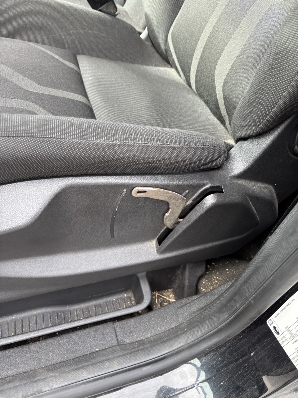 Plasthölje för höj/sänk av förarstol trasigt.