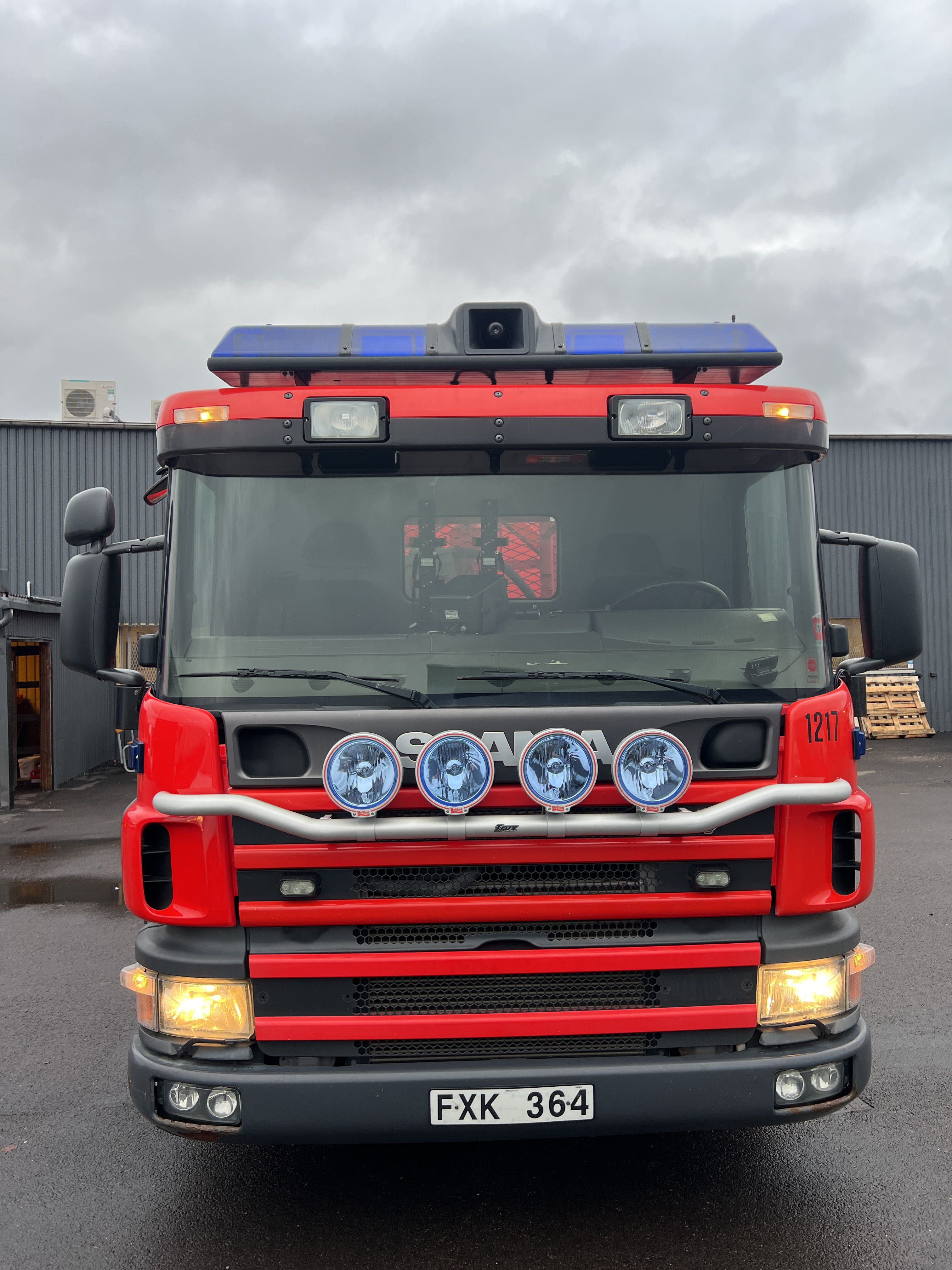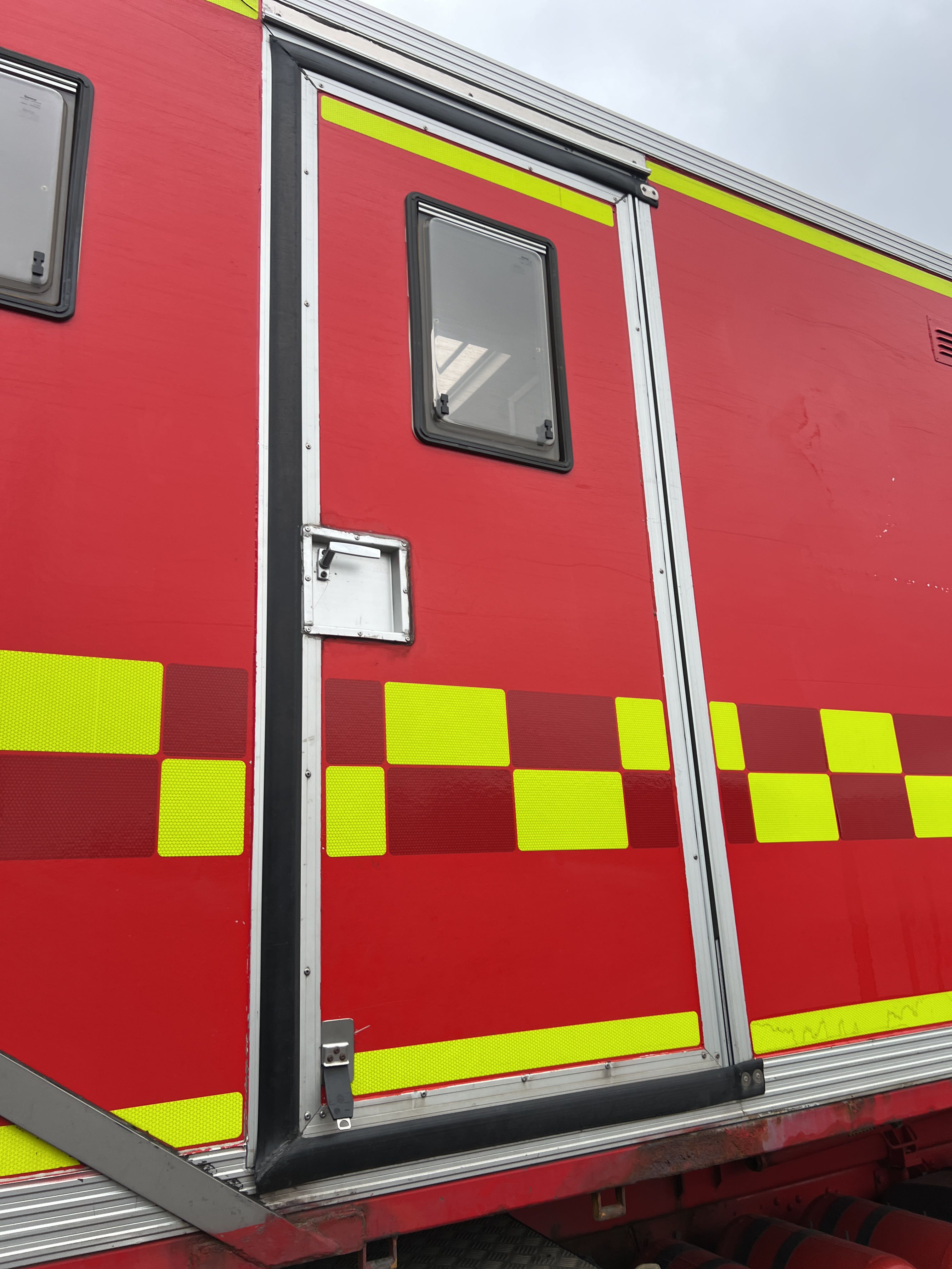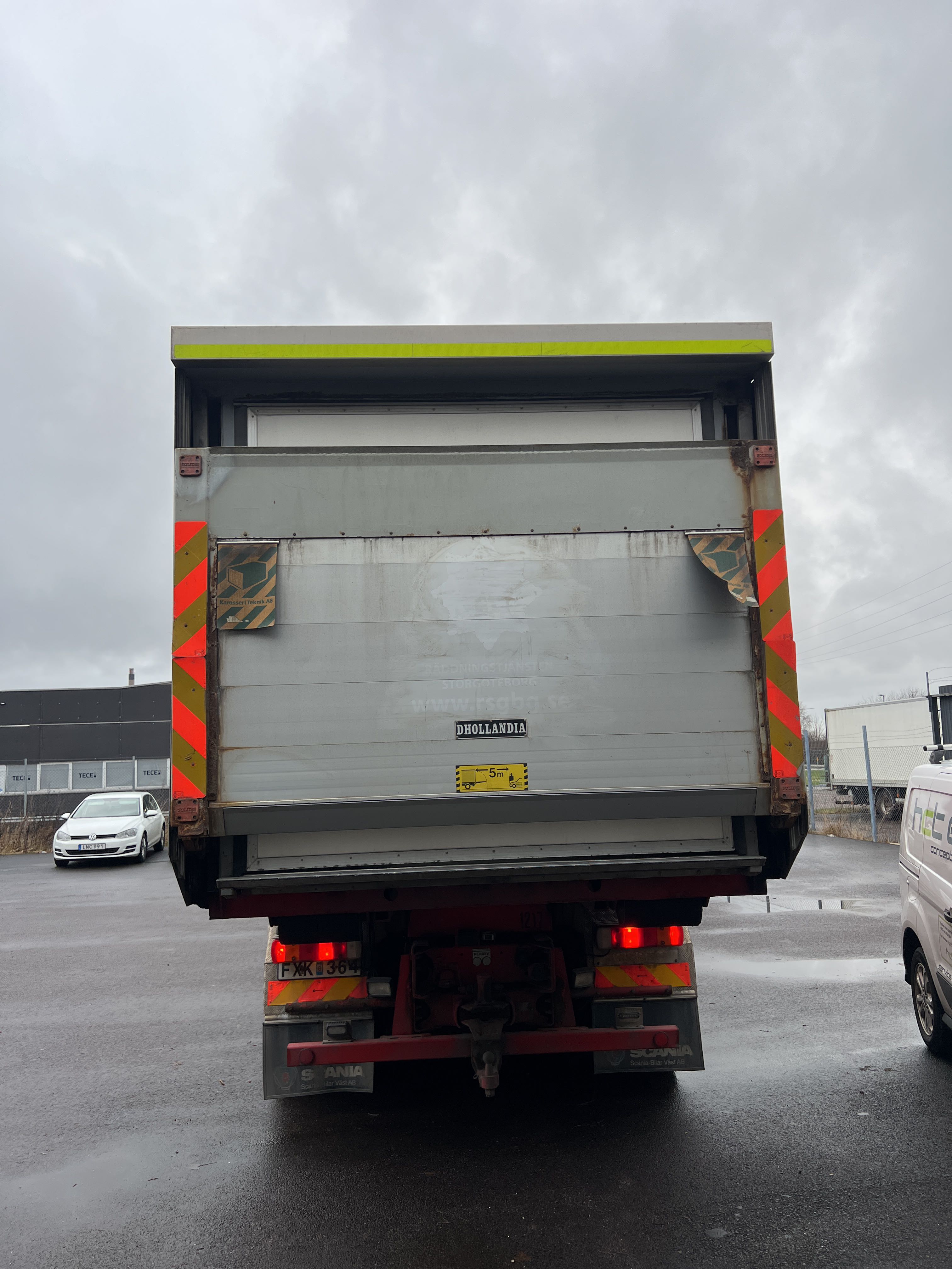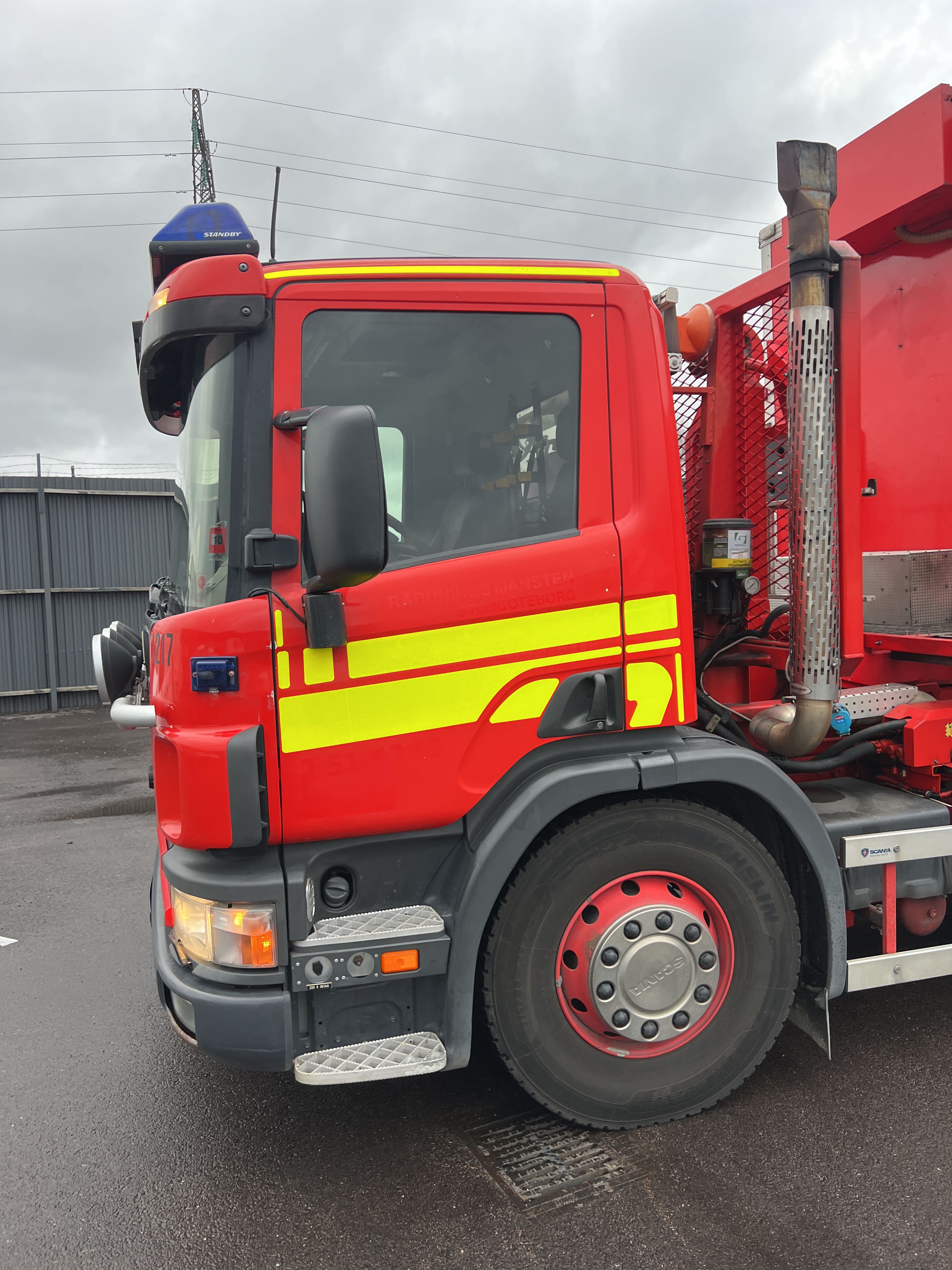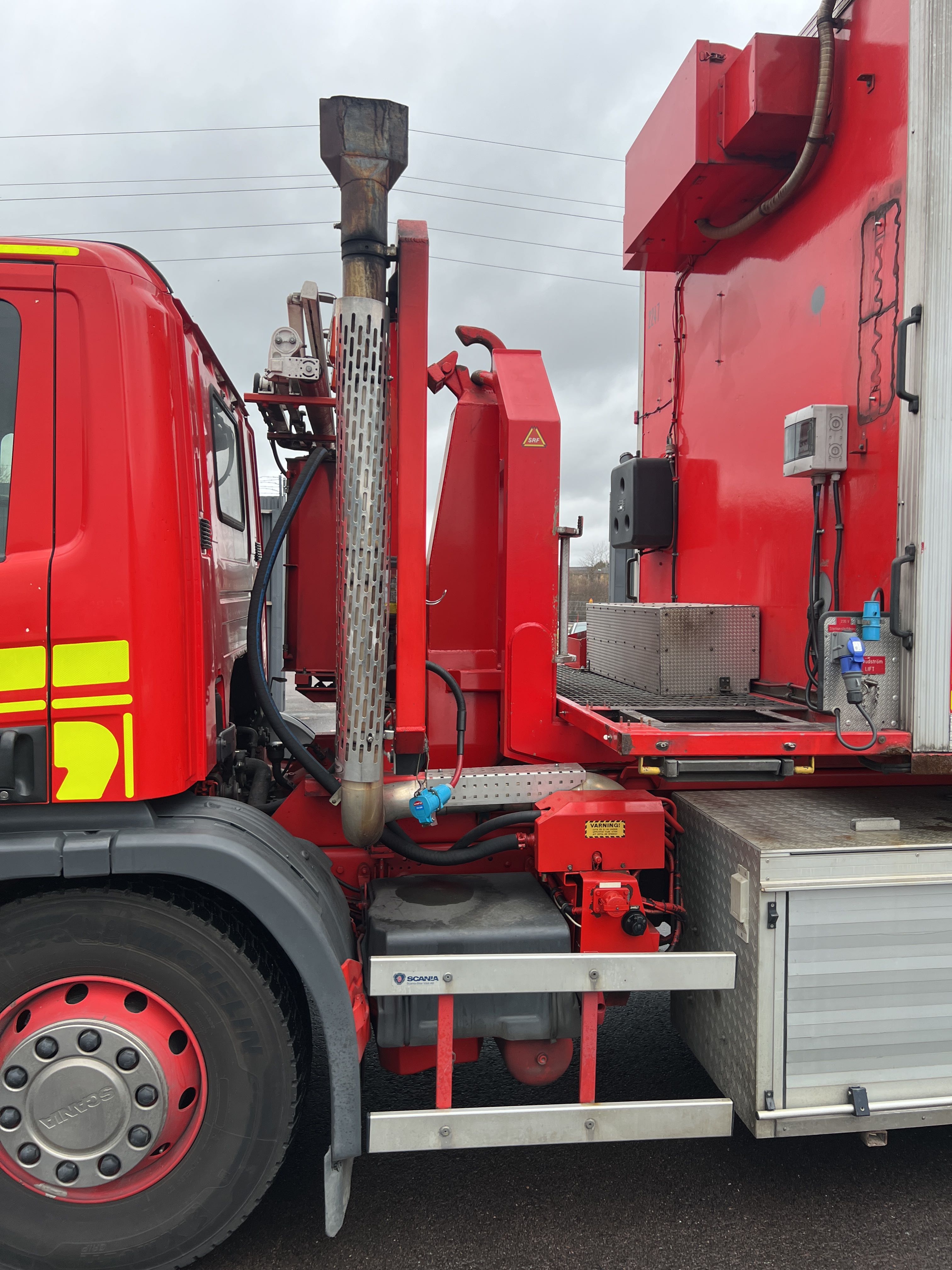 - Räddningstjänstfordon/brandbil med påbyggd enhet märkt "Rökskydd", inredd med hyllsystem, sittplatser och enklare köksdel. Utrustad med Dhollandia bakgavellyft och elanslutningar.