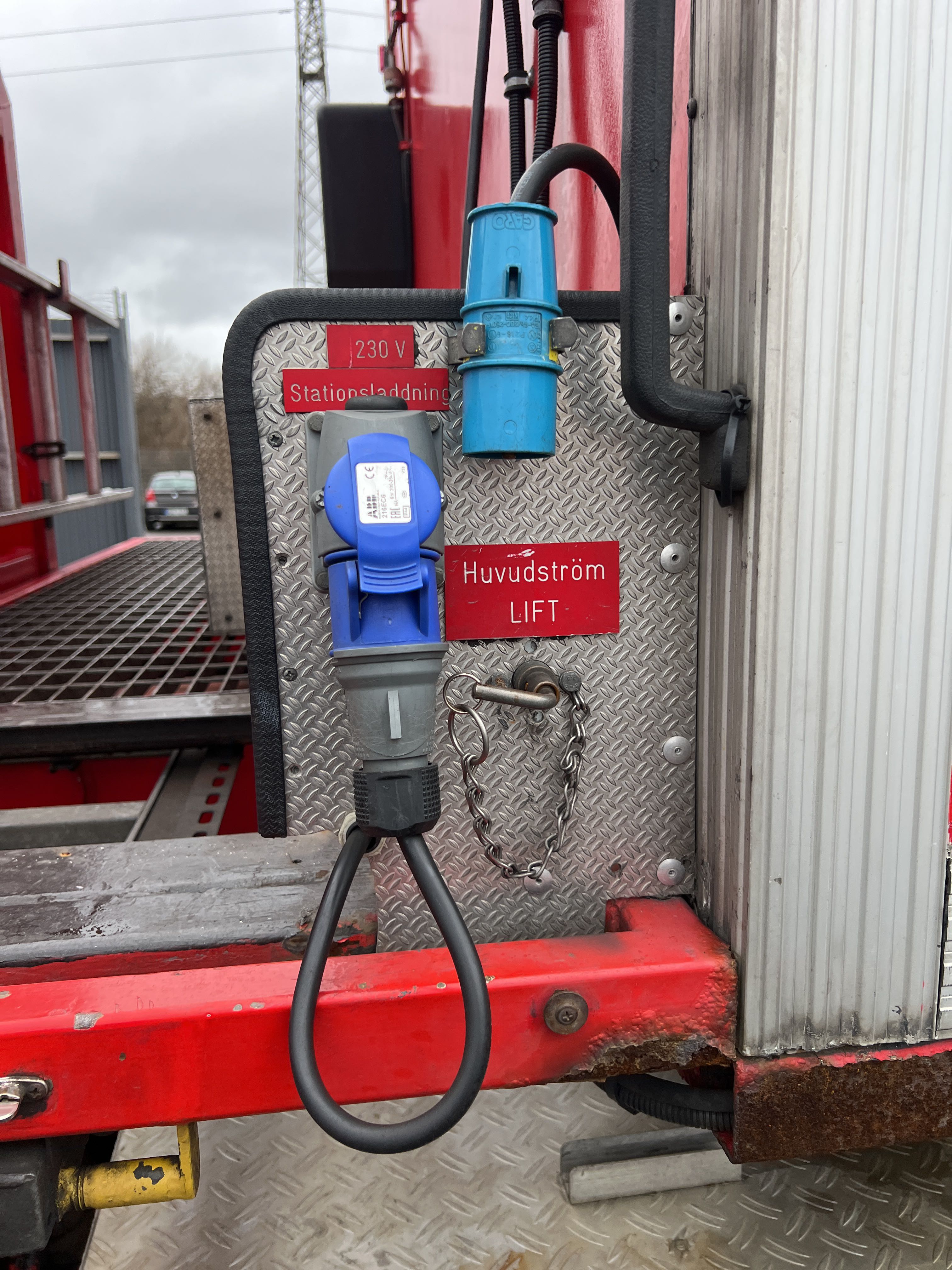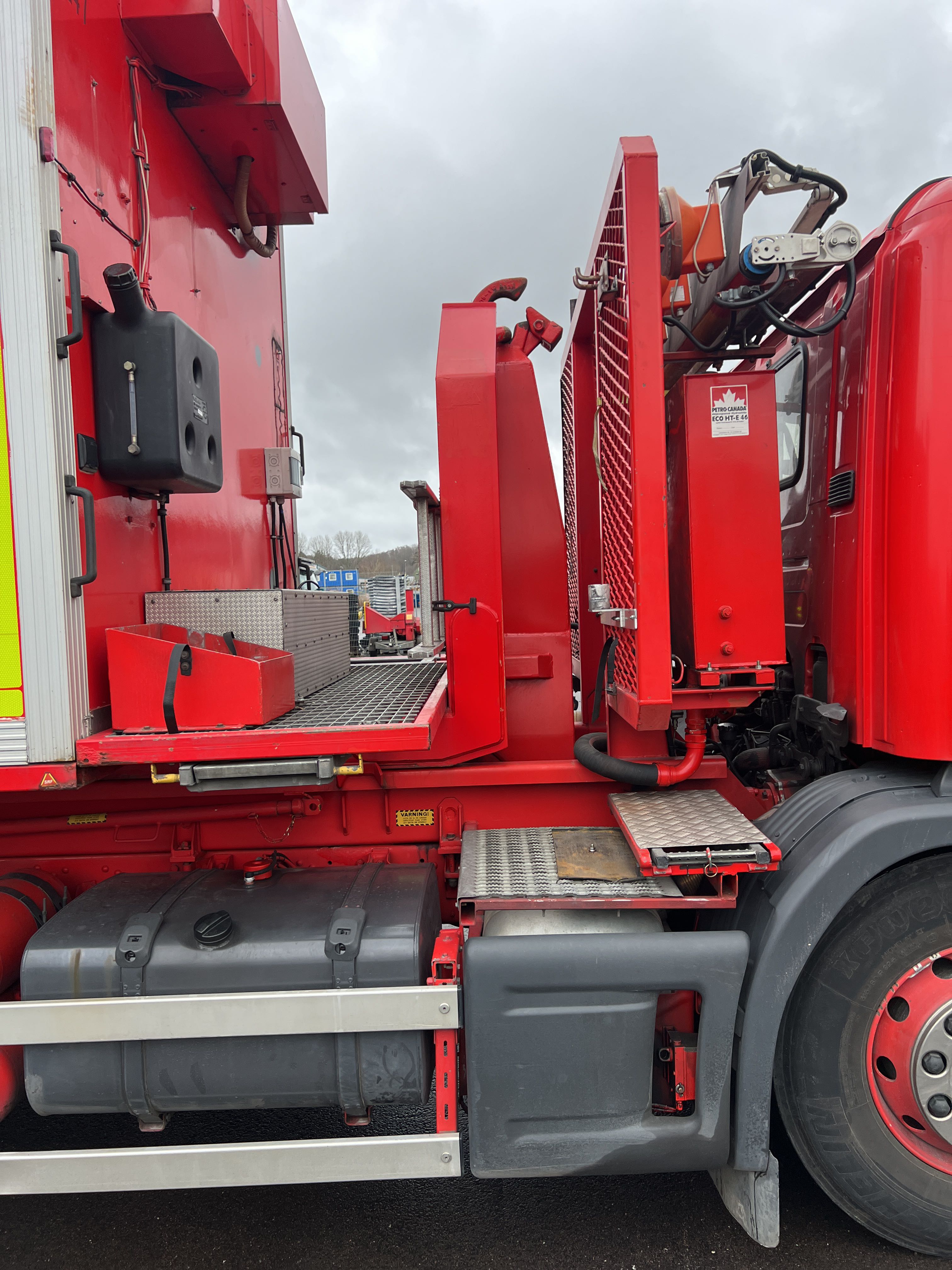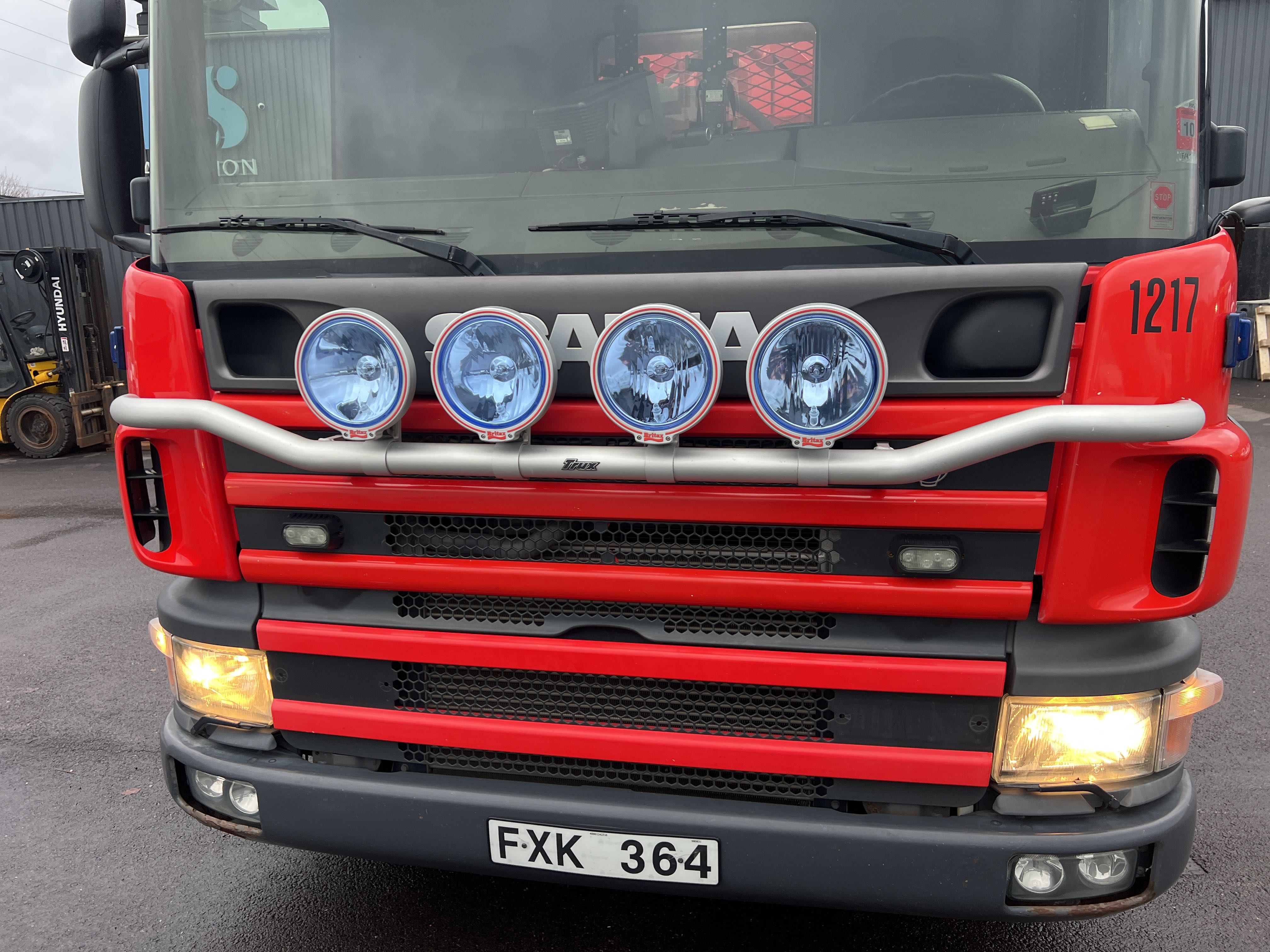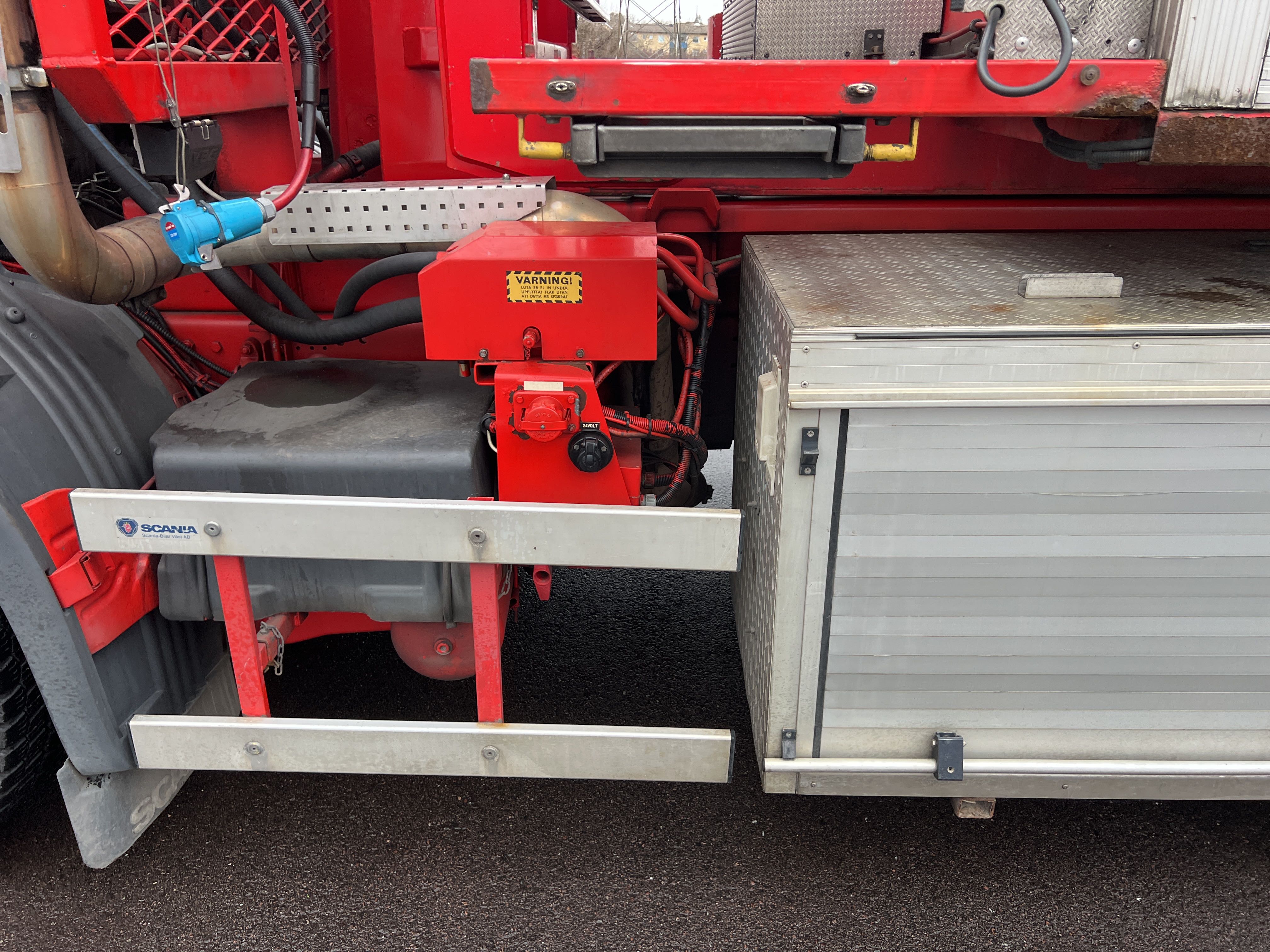 - Räddningstjänstfordon/brandbil med påbyggd enhet märkt "Rökskydd", inredd med hyllsystem, sittplatser och enklare köksdel. Utrustad med Dhollandia bakgavellyft och elanslutningar.