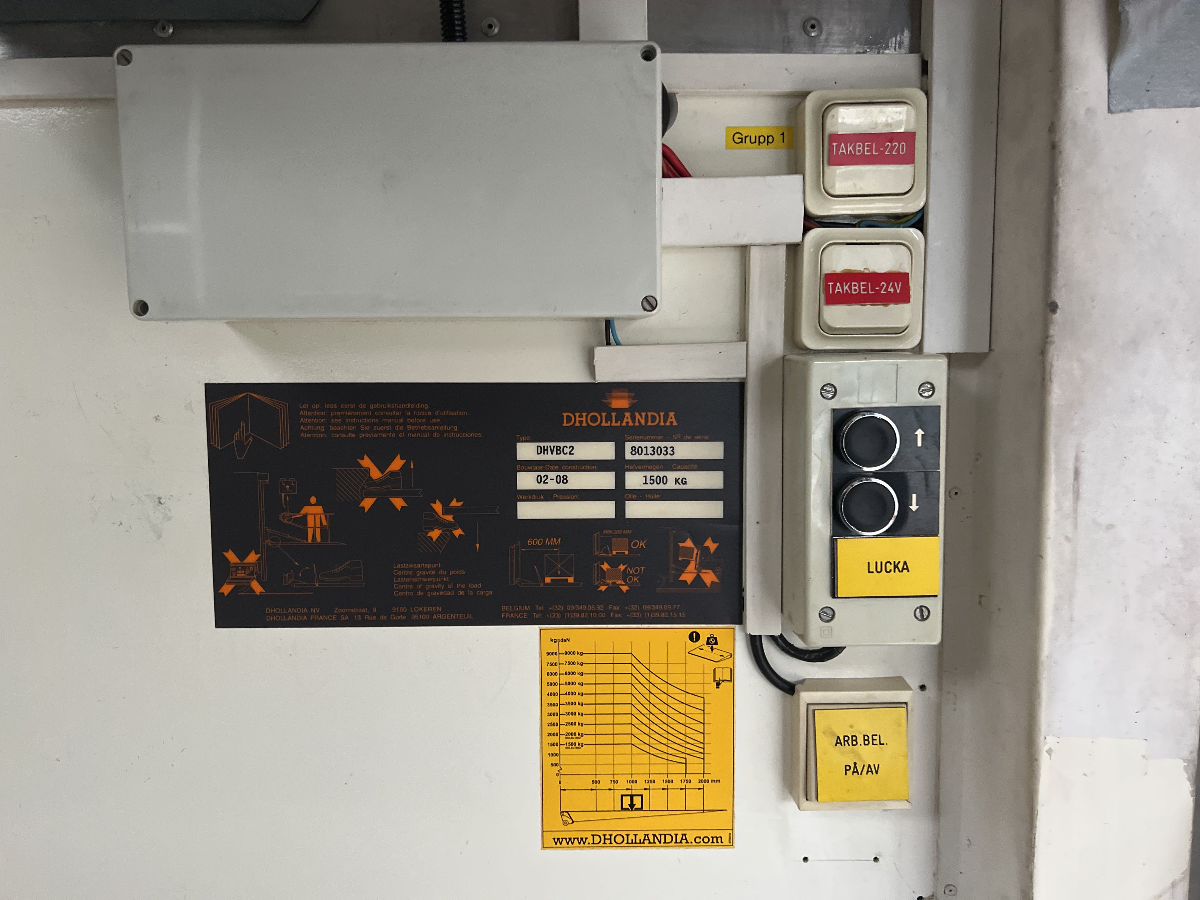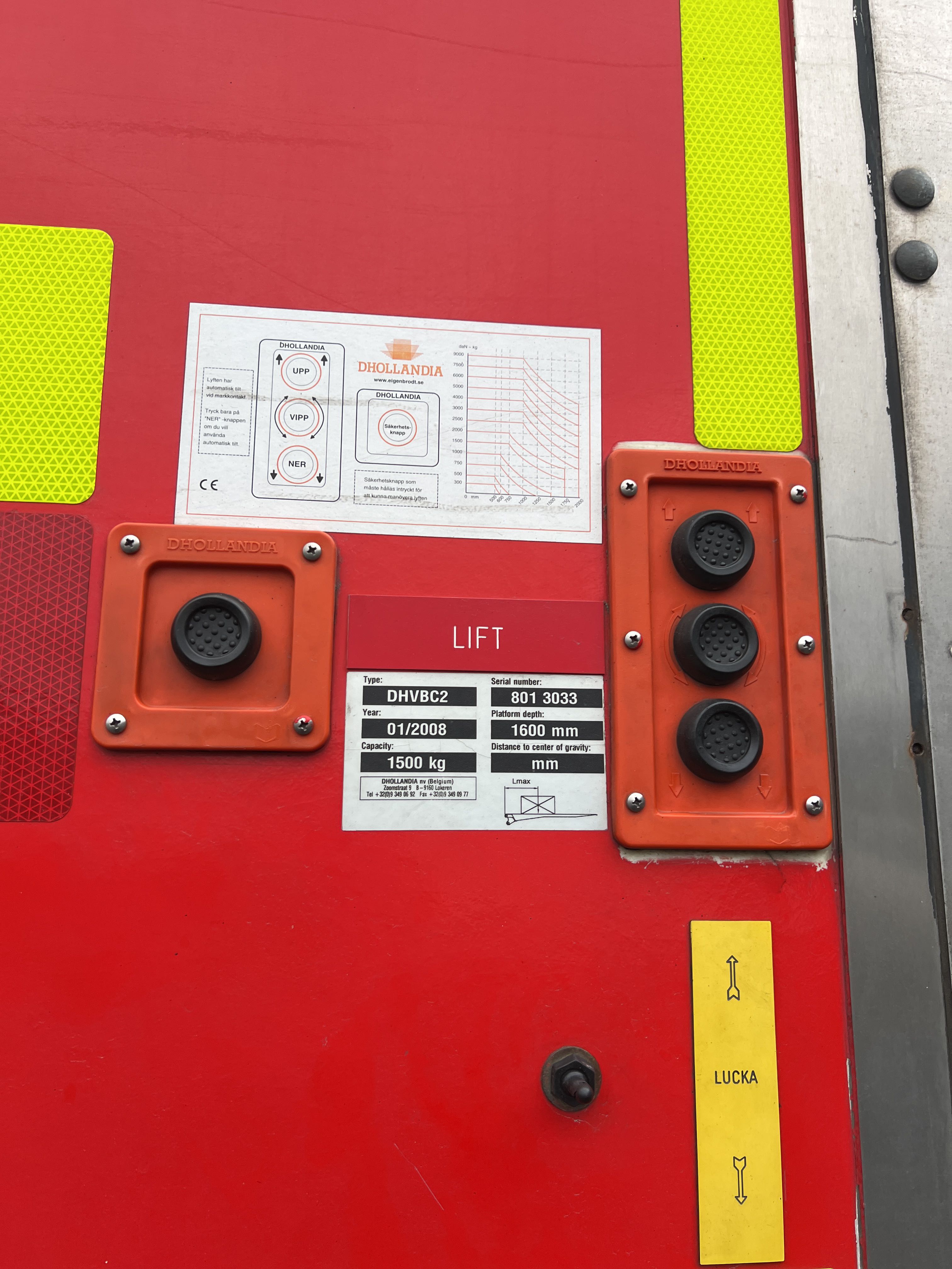 Lyft: Dhollandia DHVBC2, kapacitet 1500 kg, årsmodell 2008
