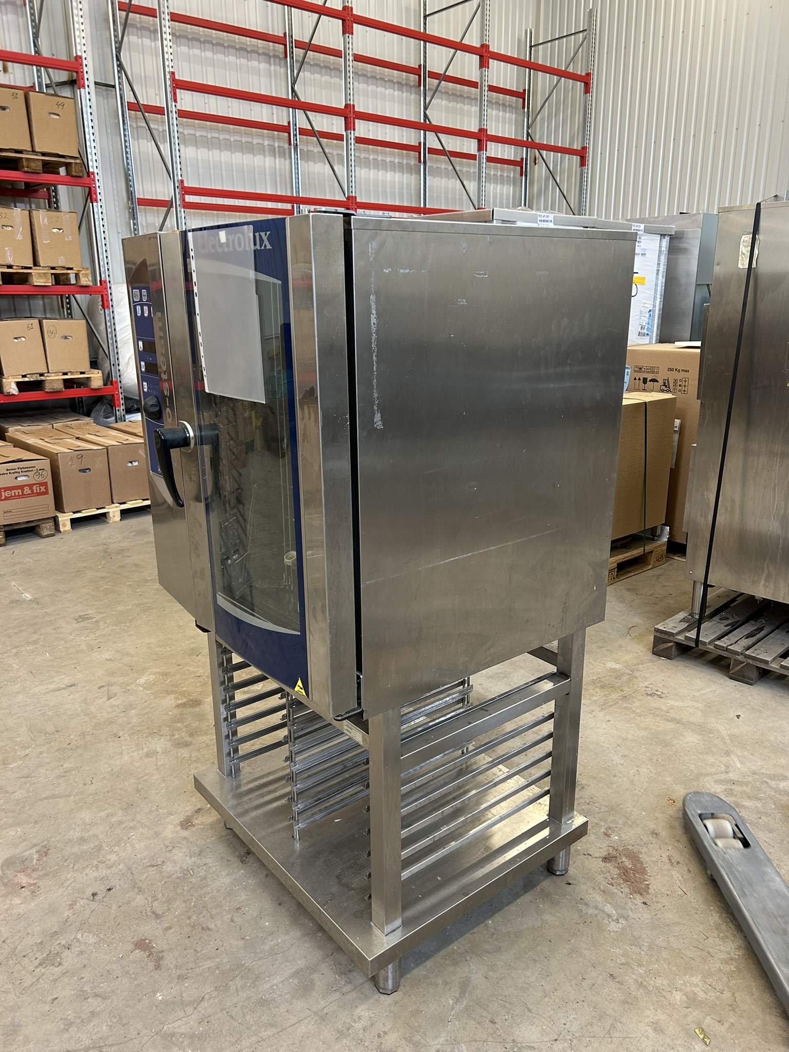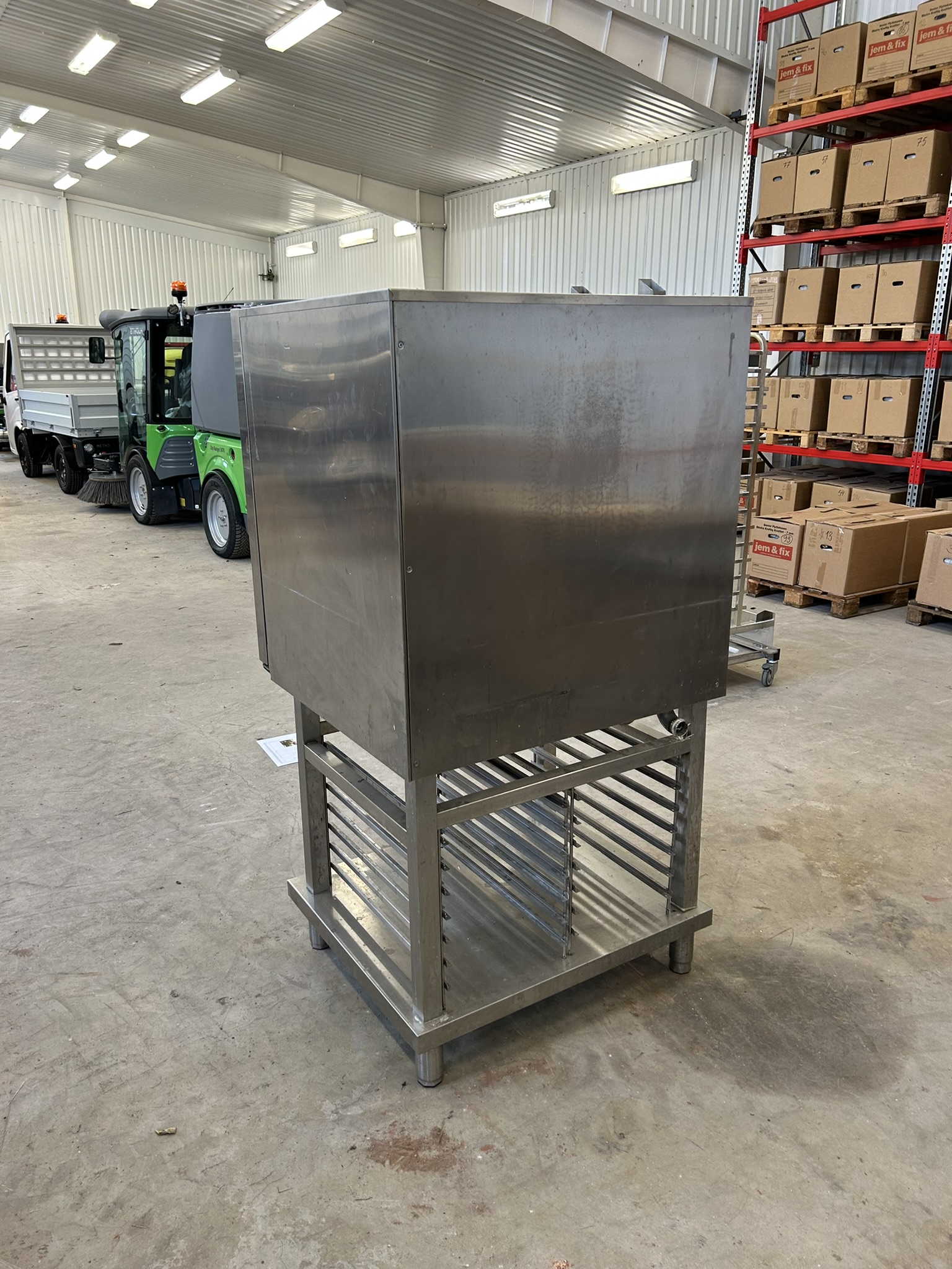 Utrustad med digital styrpanel, programfunktioner, temperatur- och tidsstyrning samt automatisk rengöringsfunktion. Levereras monterad på rostfritt underrede med gejdrar för GN-bleck. Glaslucka med insynsfönster och invändig belysning.