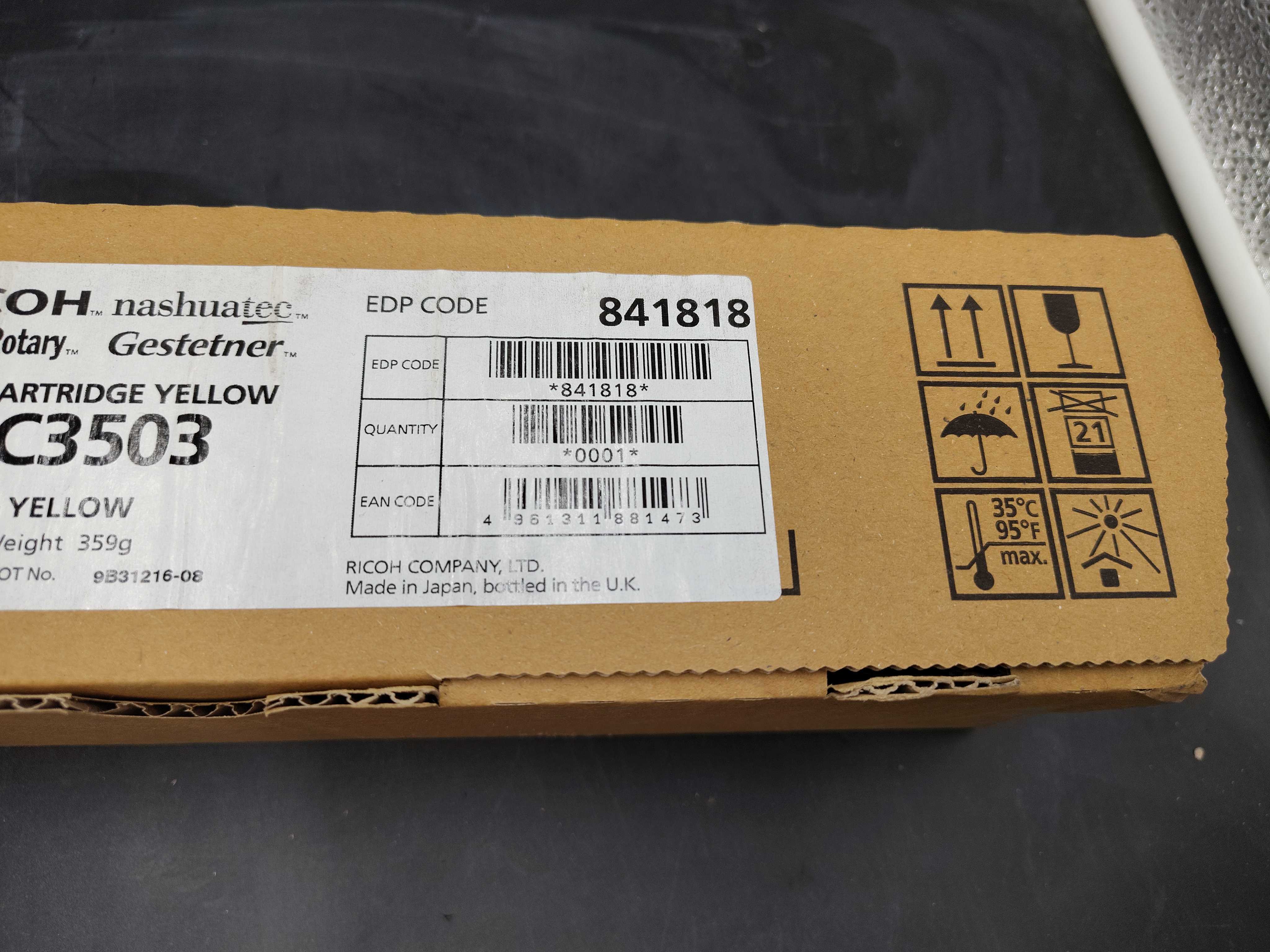 1 st toner gul, Ricoh MP C3503, vikt ca 359 g, EDP code 841818