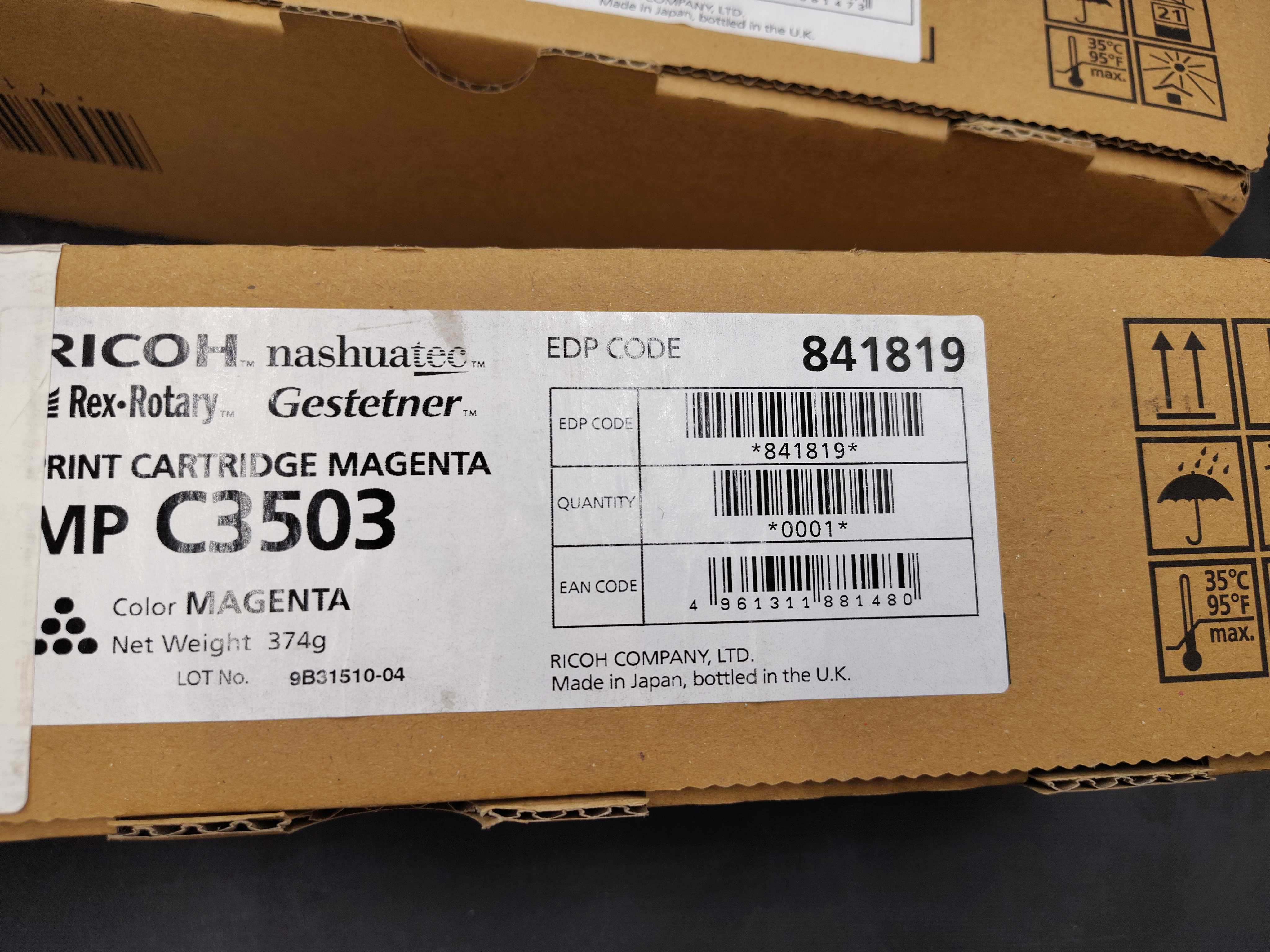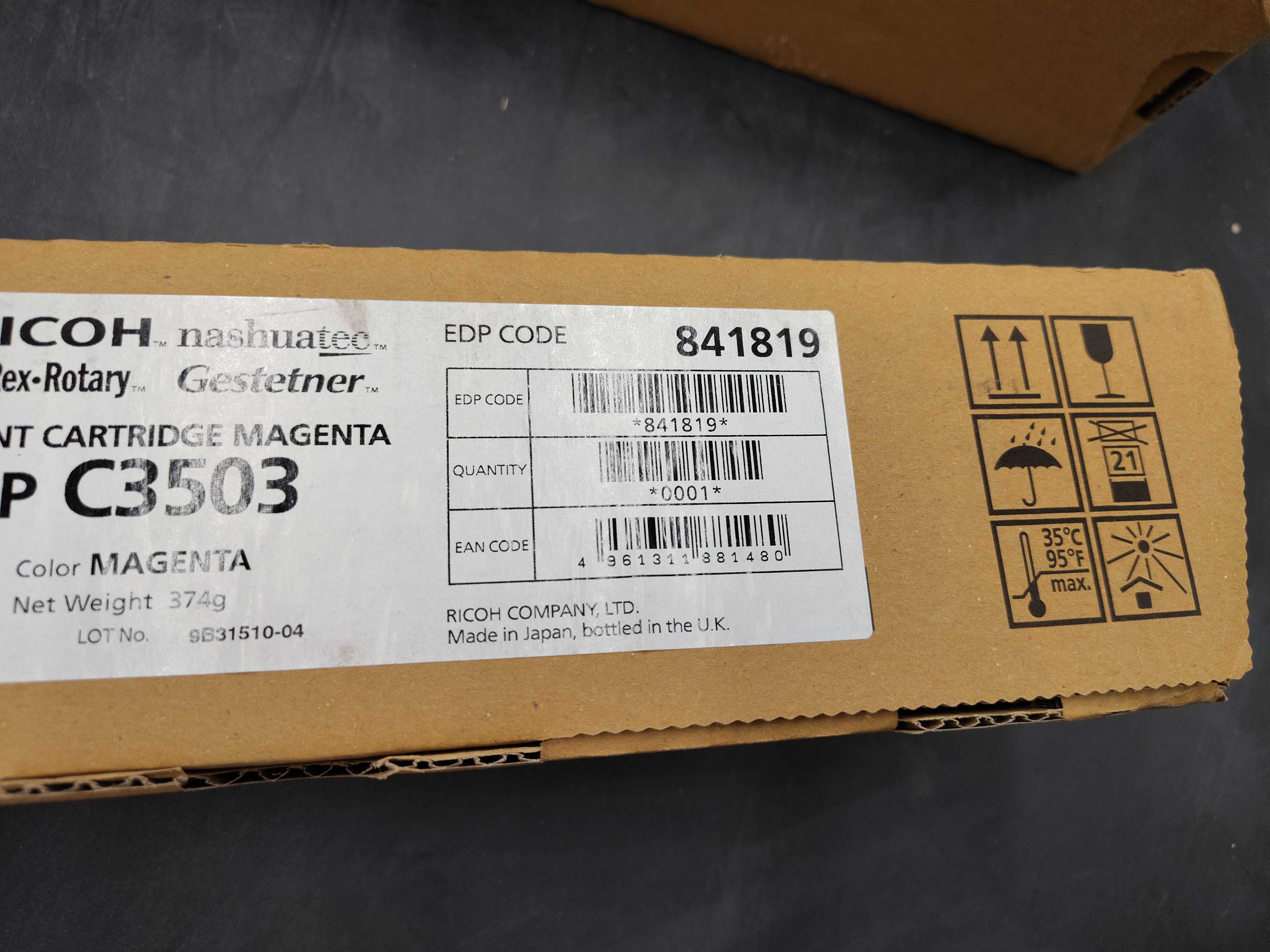 1 st toner magenta, Ricoh MP C3503, vikt ca 374 g, EDP code 841819