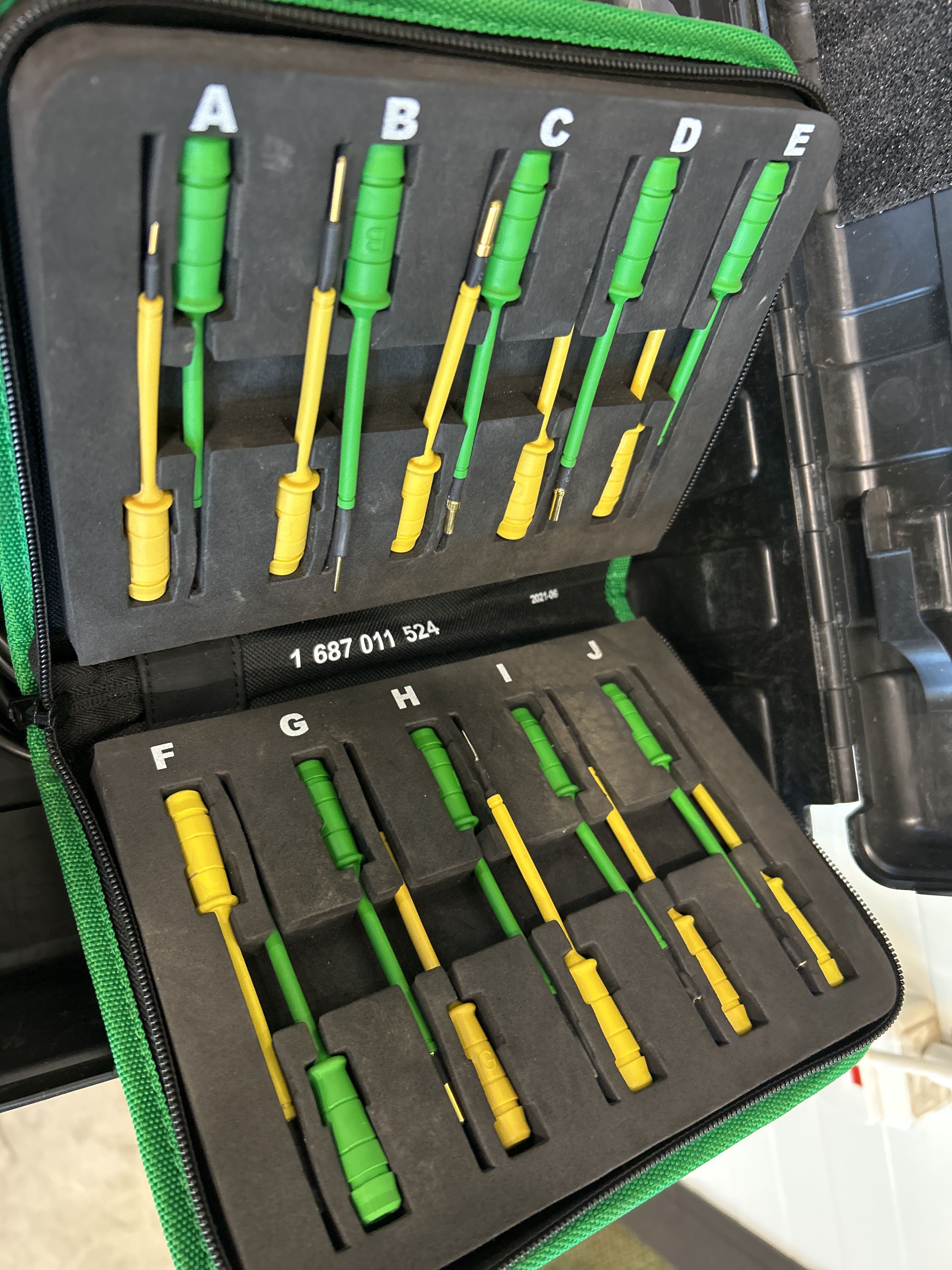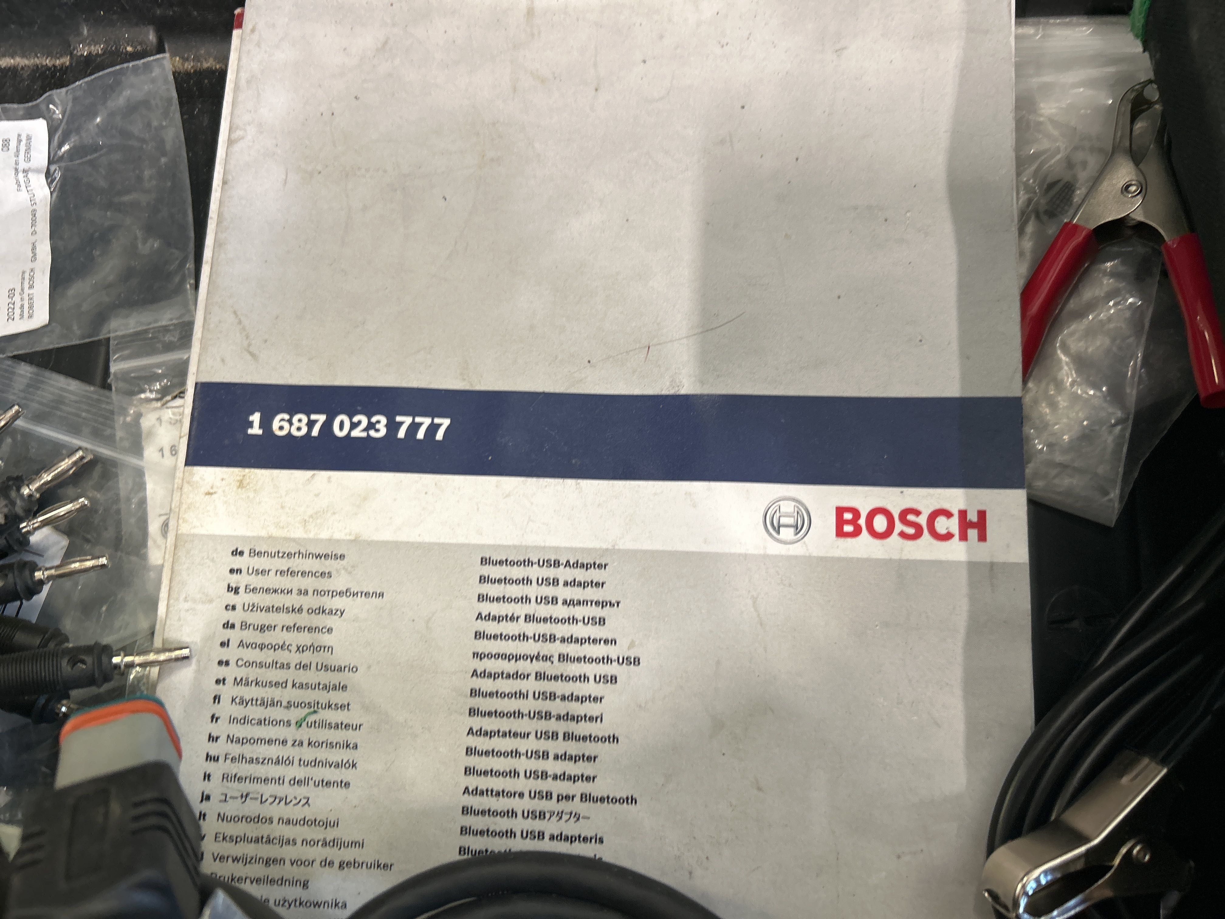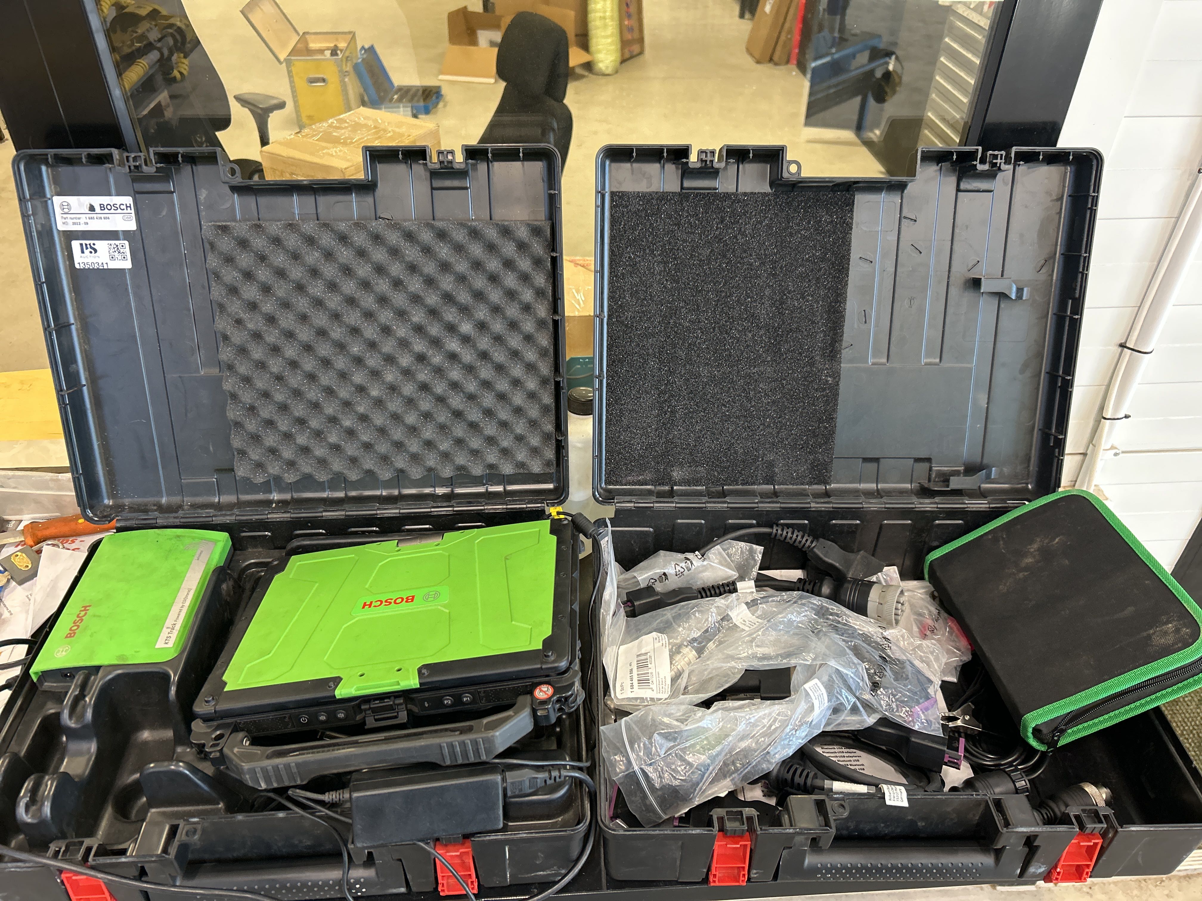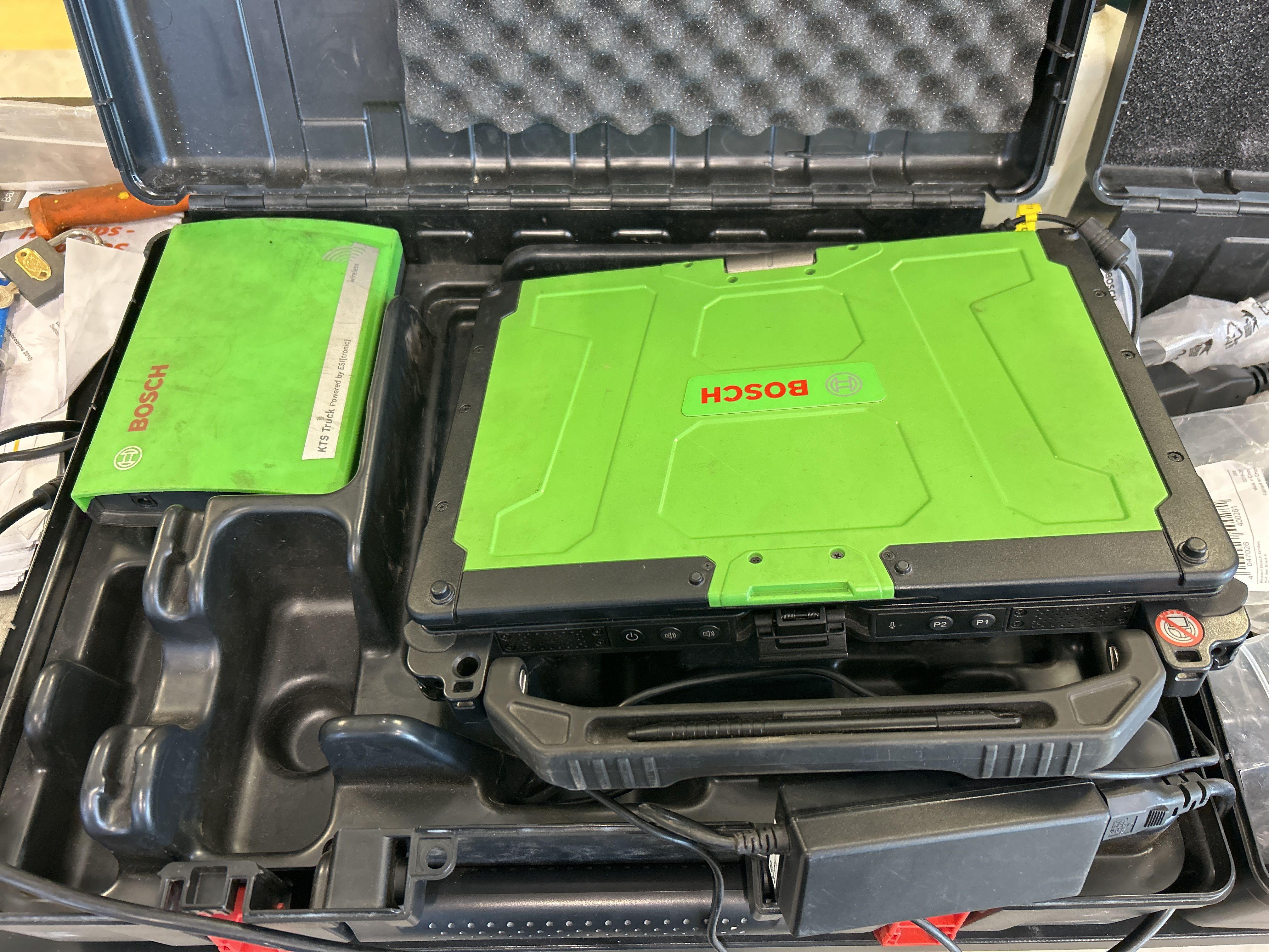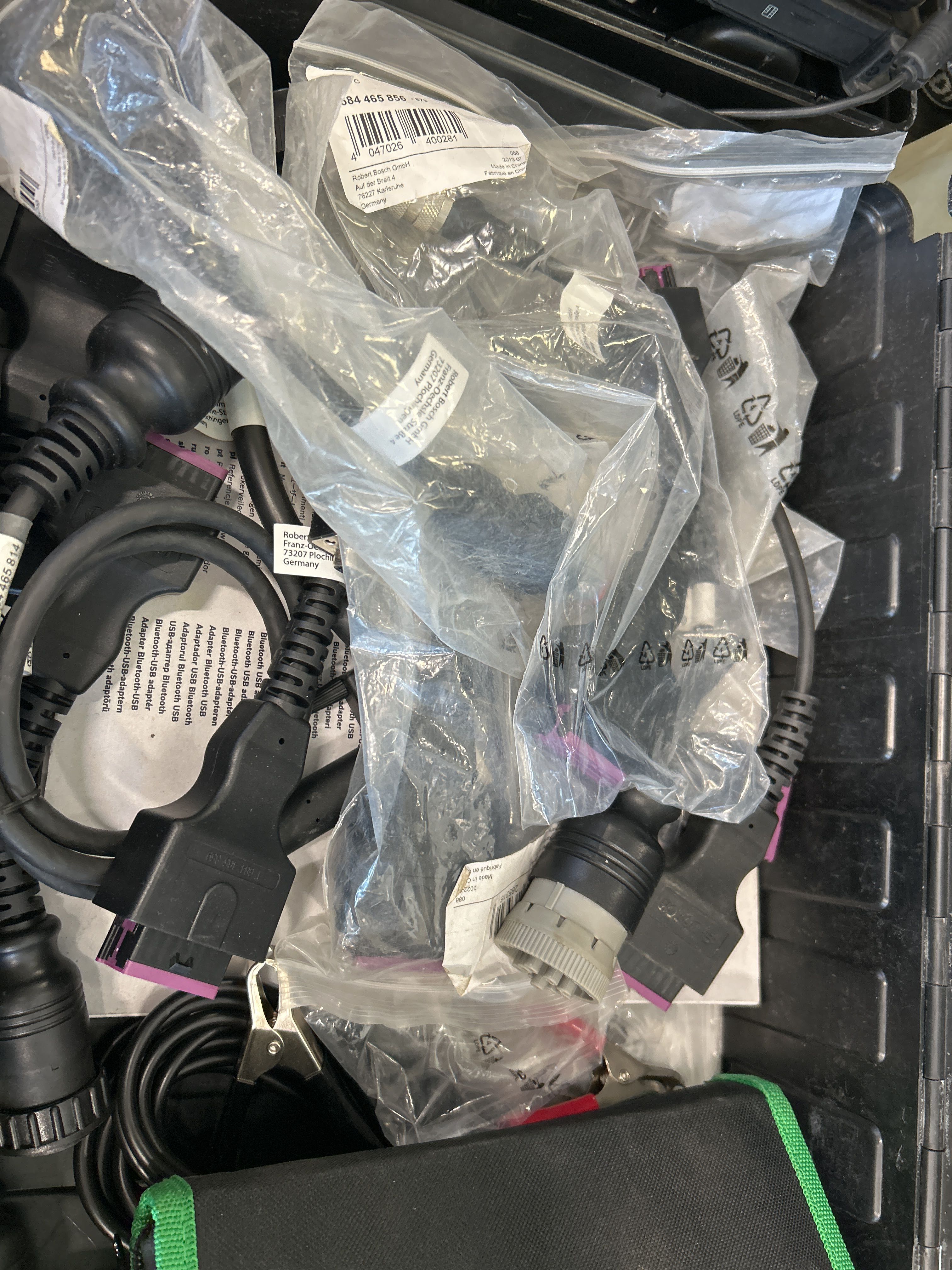 Felsökningsdator från Bosch, med tillbehör och transportväskor.