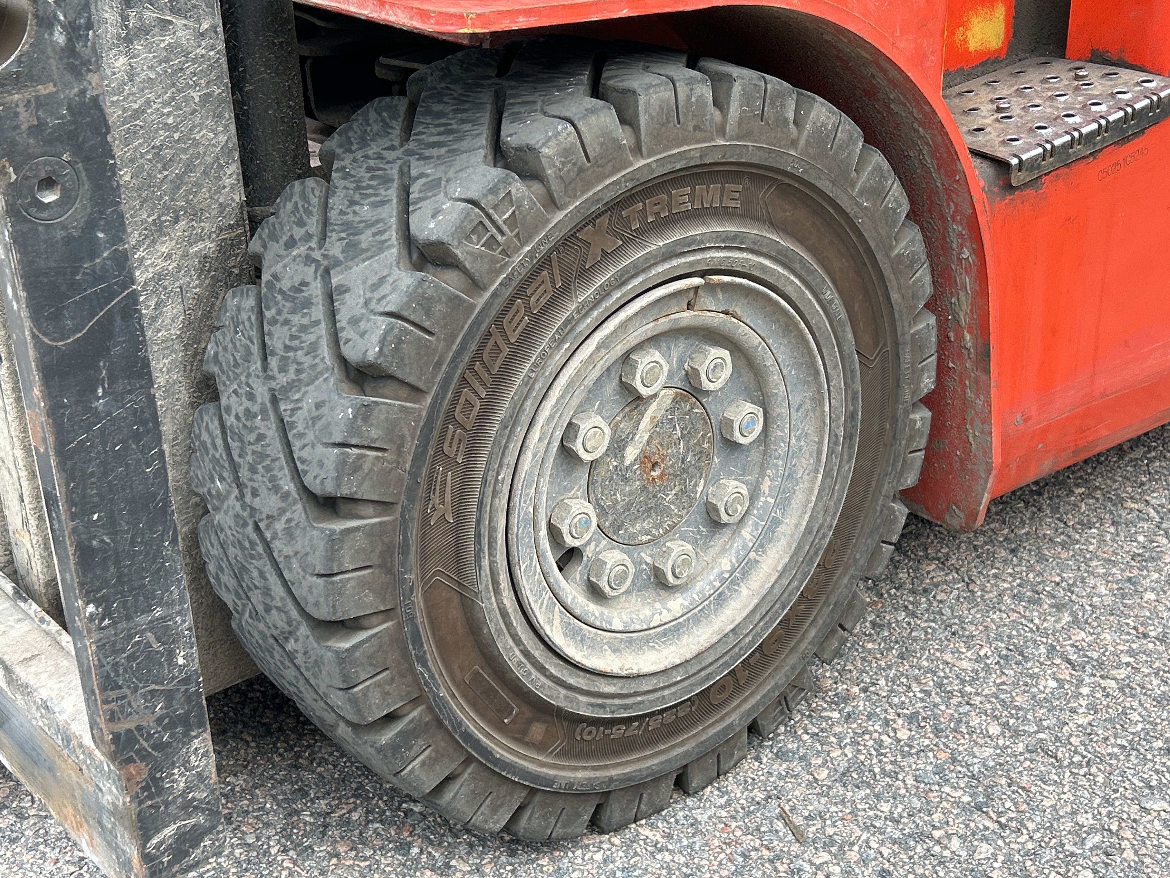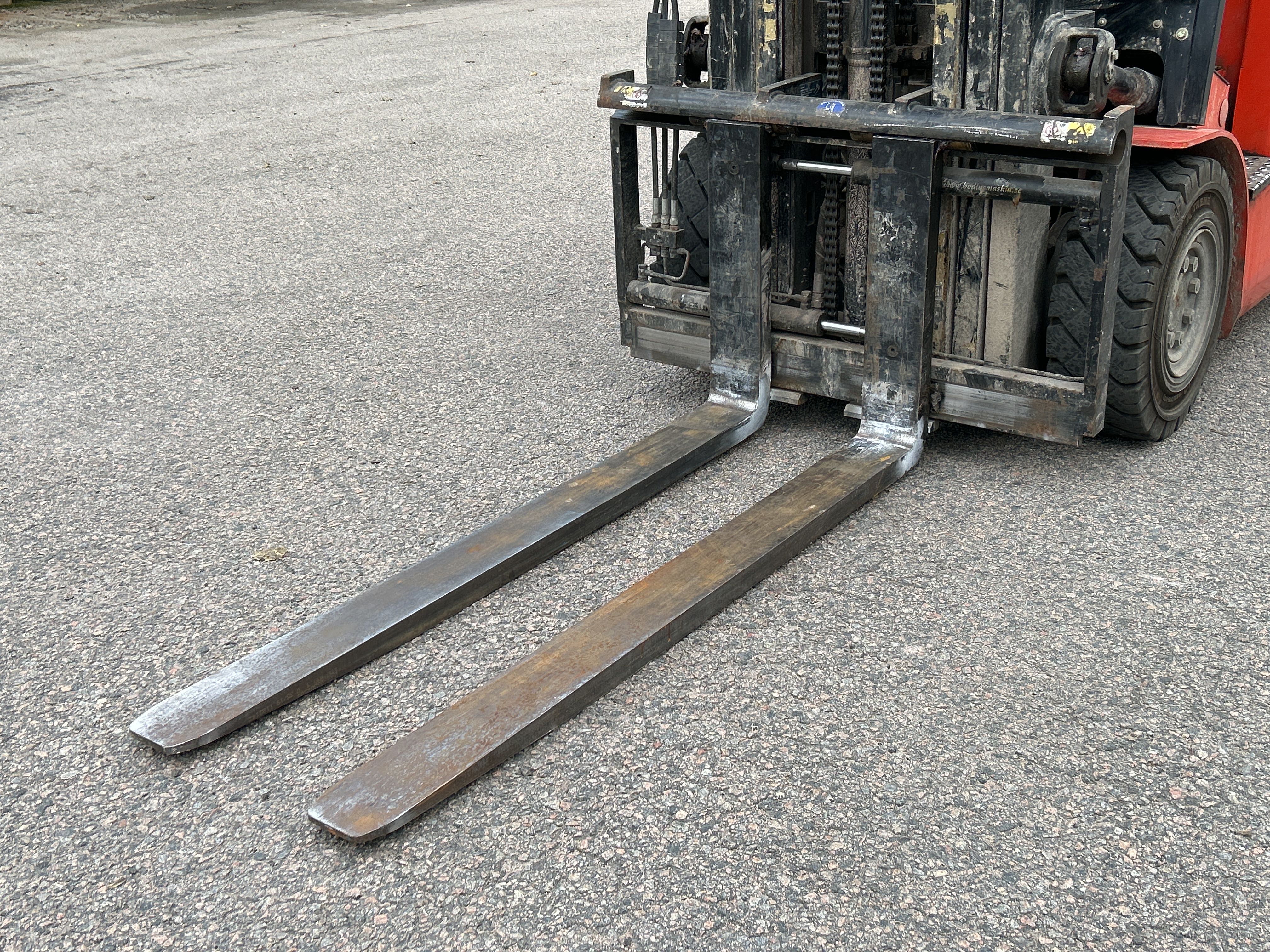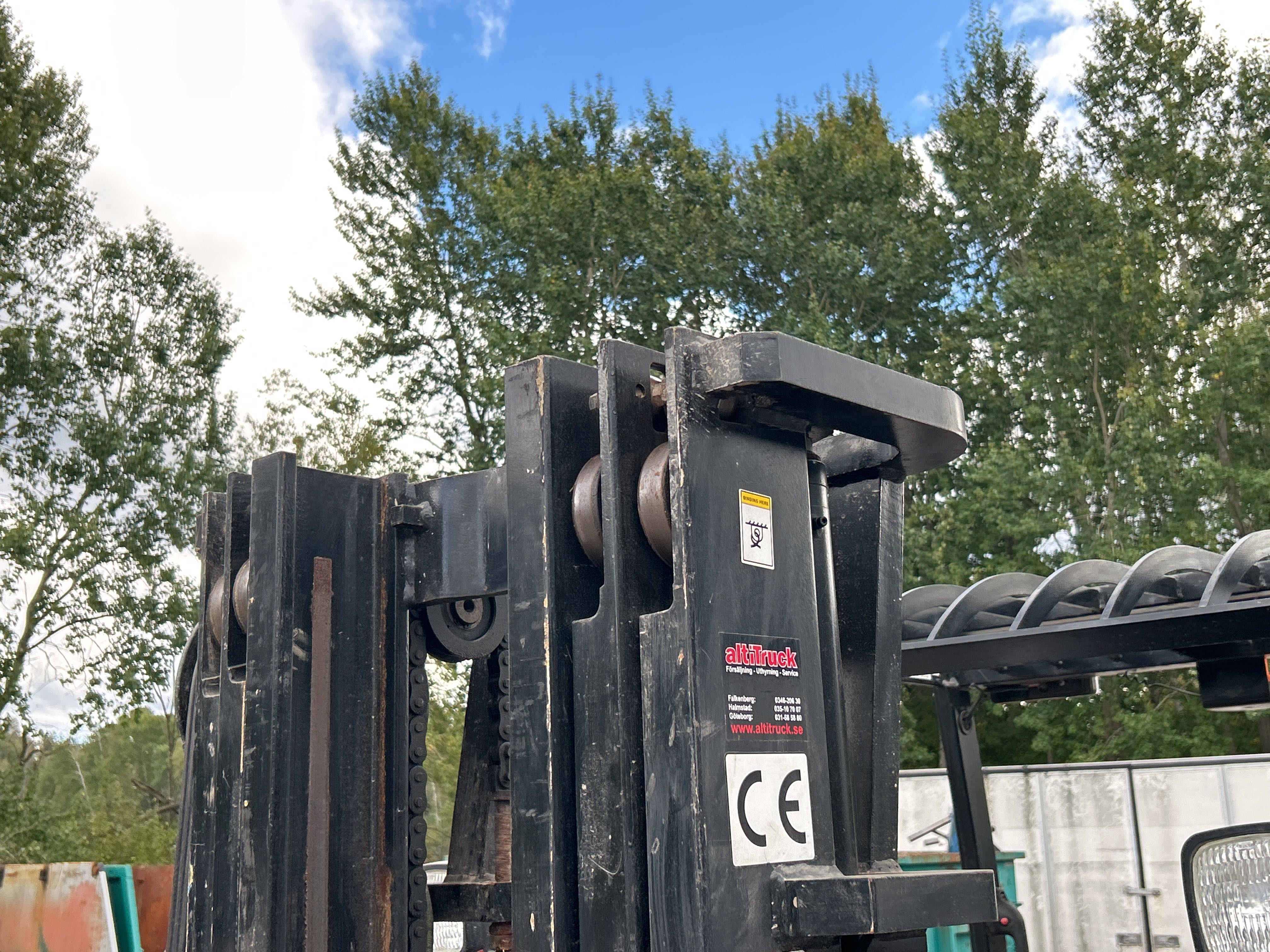 • Motviktstruck med 2,5 tons lyftkapacitet, utrustad med Bodins gaffelställ (modell 7773-CSN) och dubbla gafflar