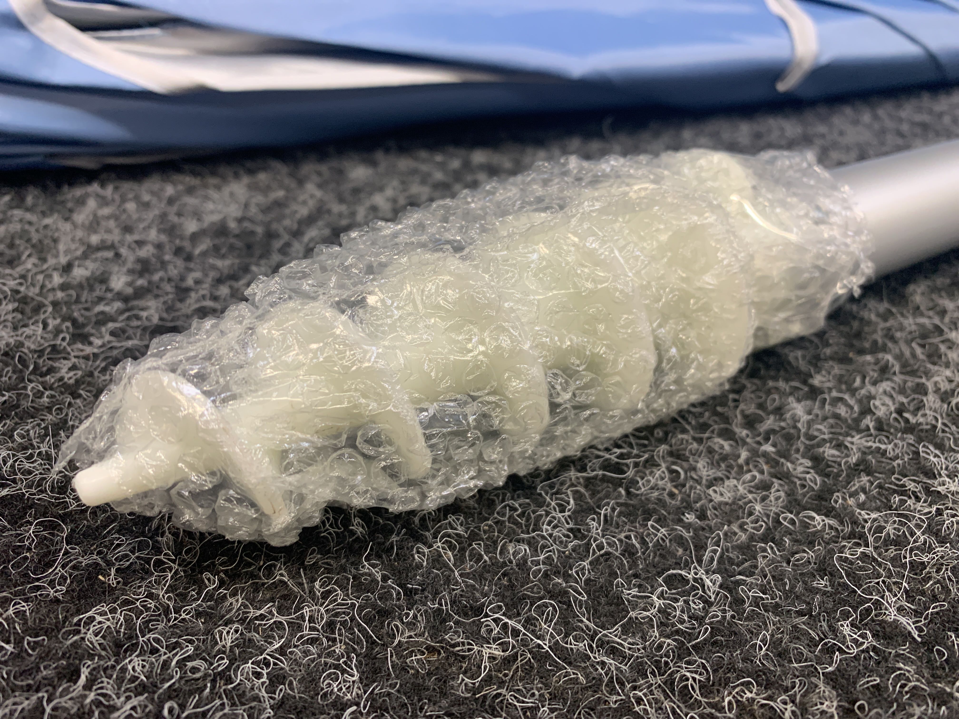 Ventilationsöppning upptill. Skaft i aluminium. Skaftet har en skruv längst ner som underlättar användningen. En praktisk bärväska medföljer.
