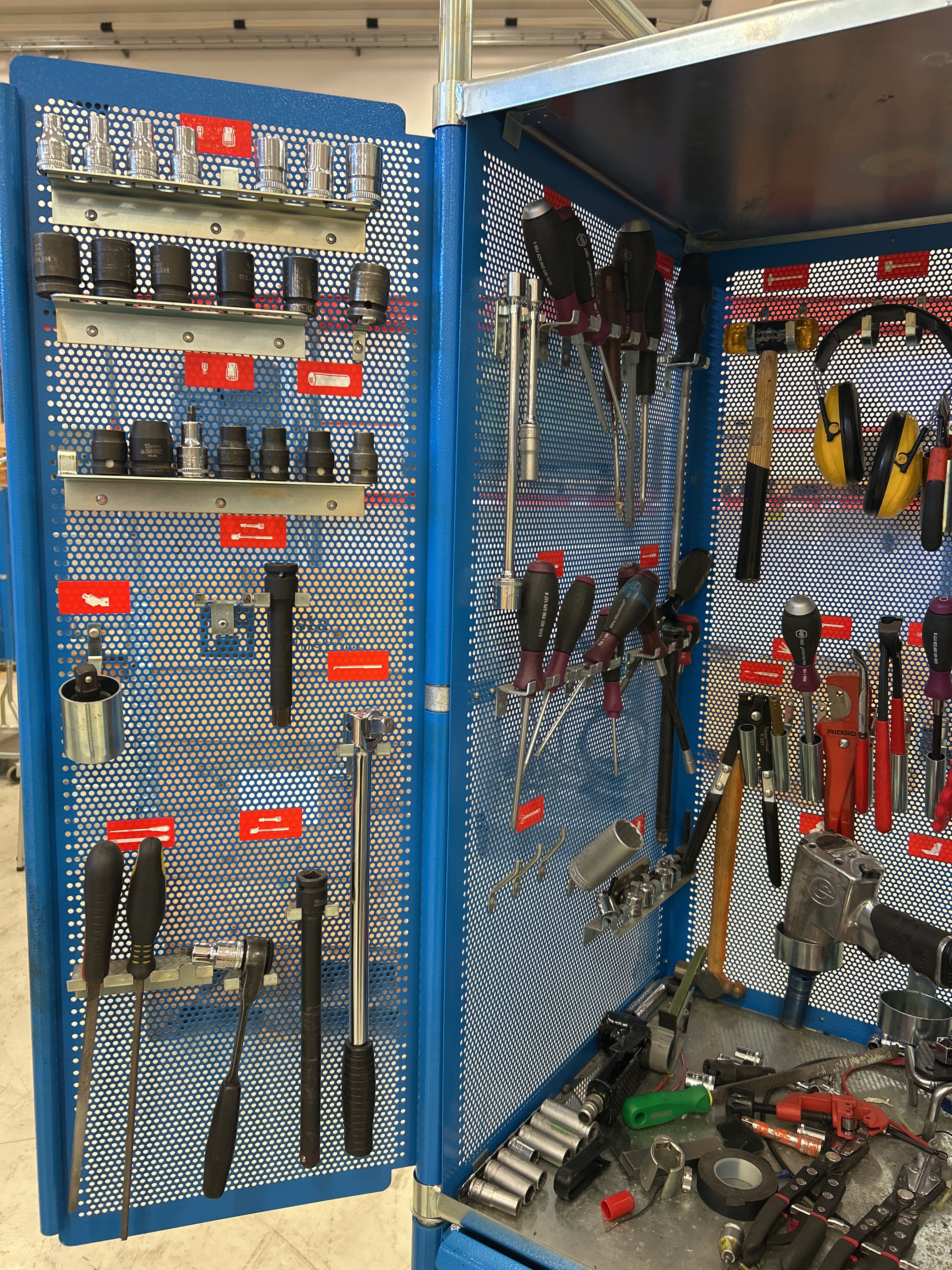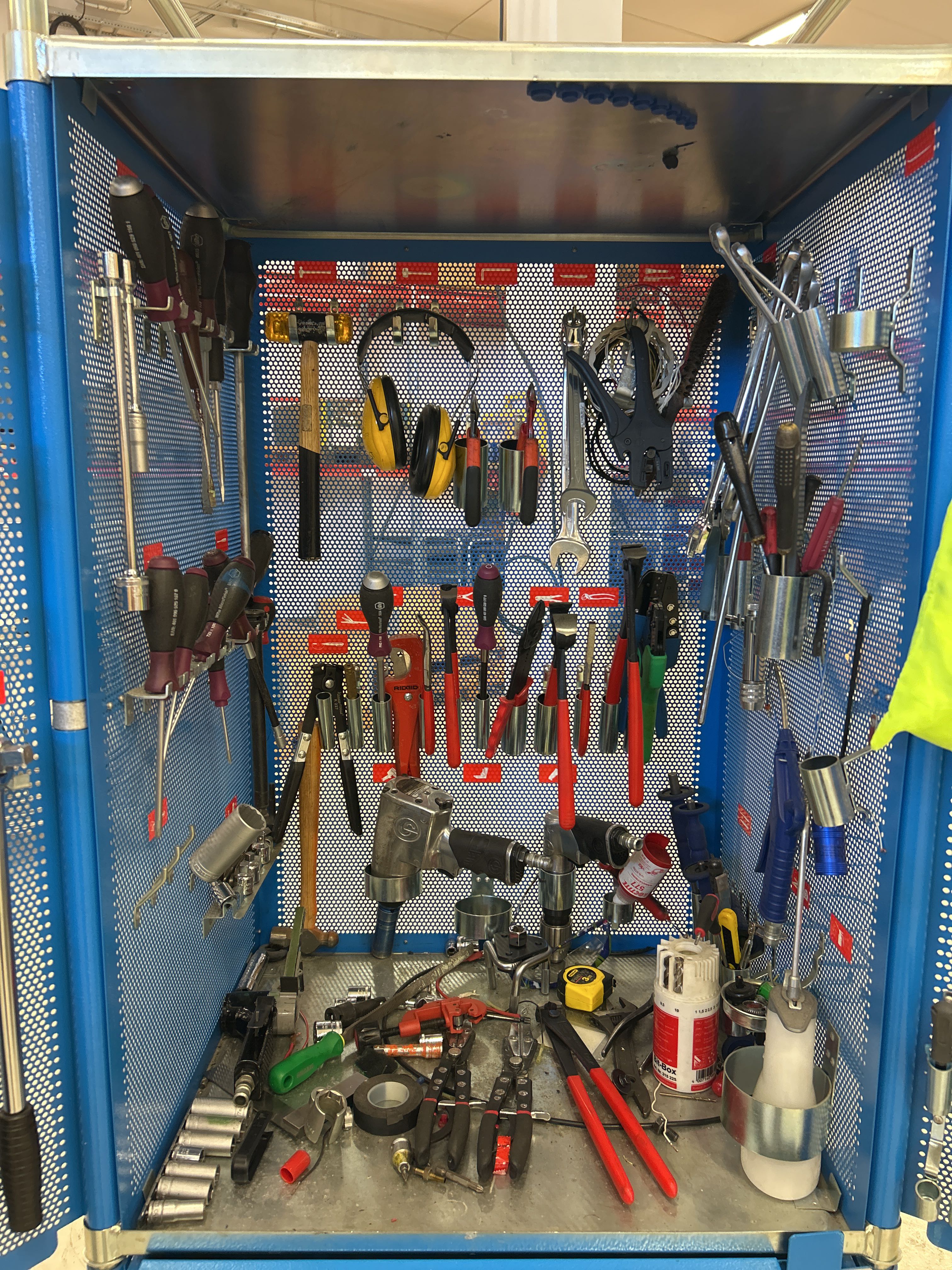 Verktygsvagnen innehåller bland annat: