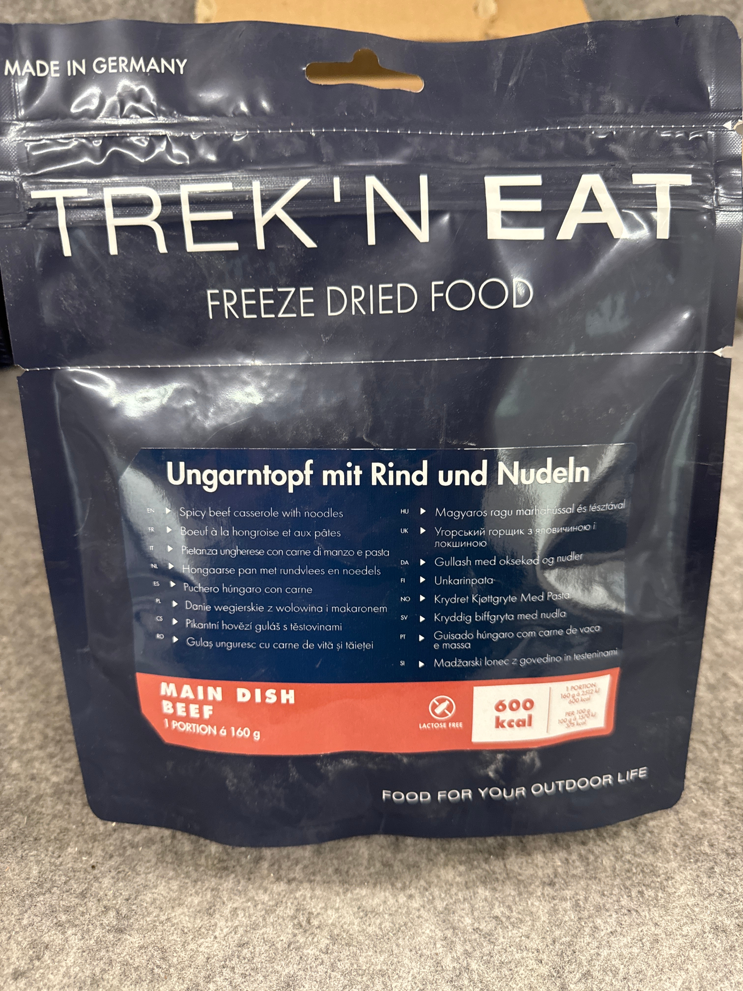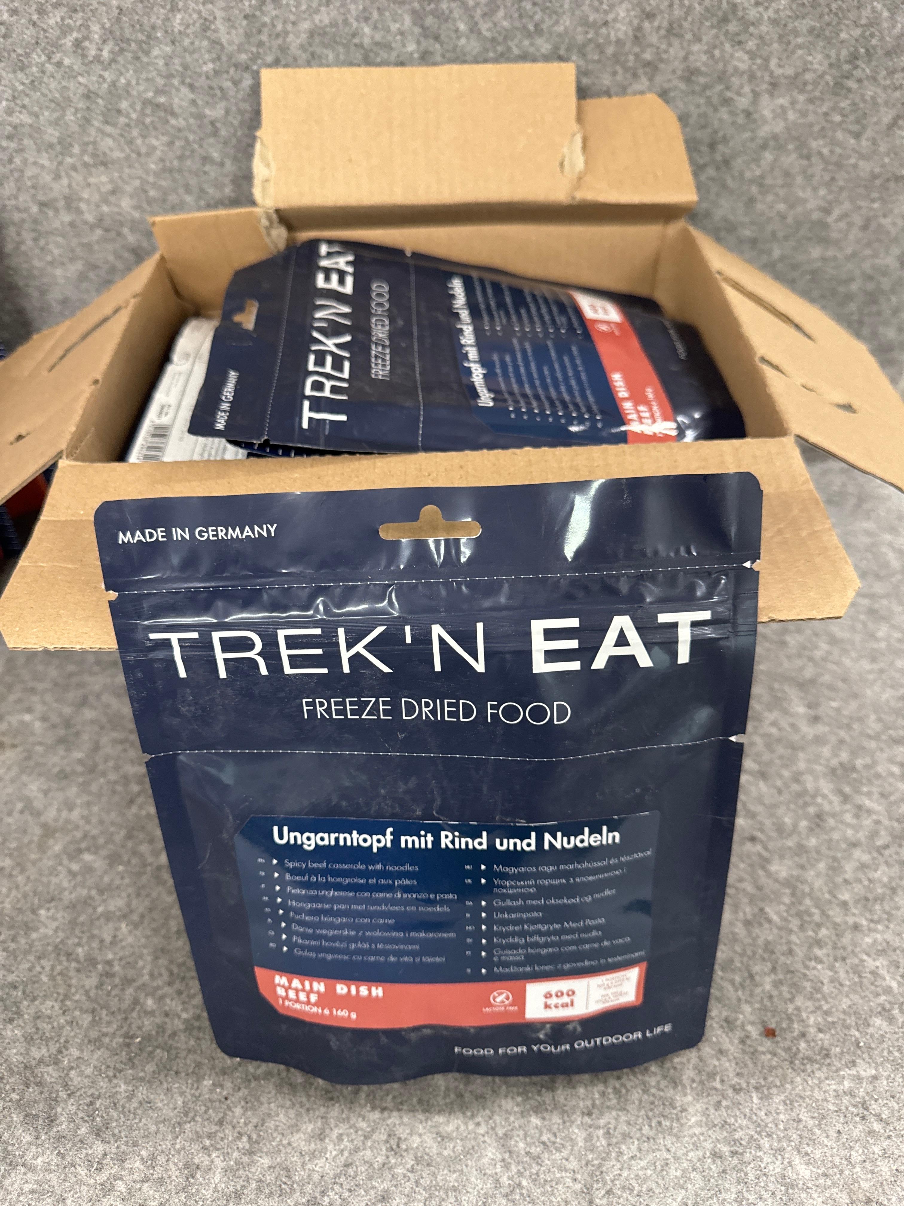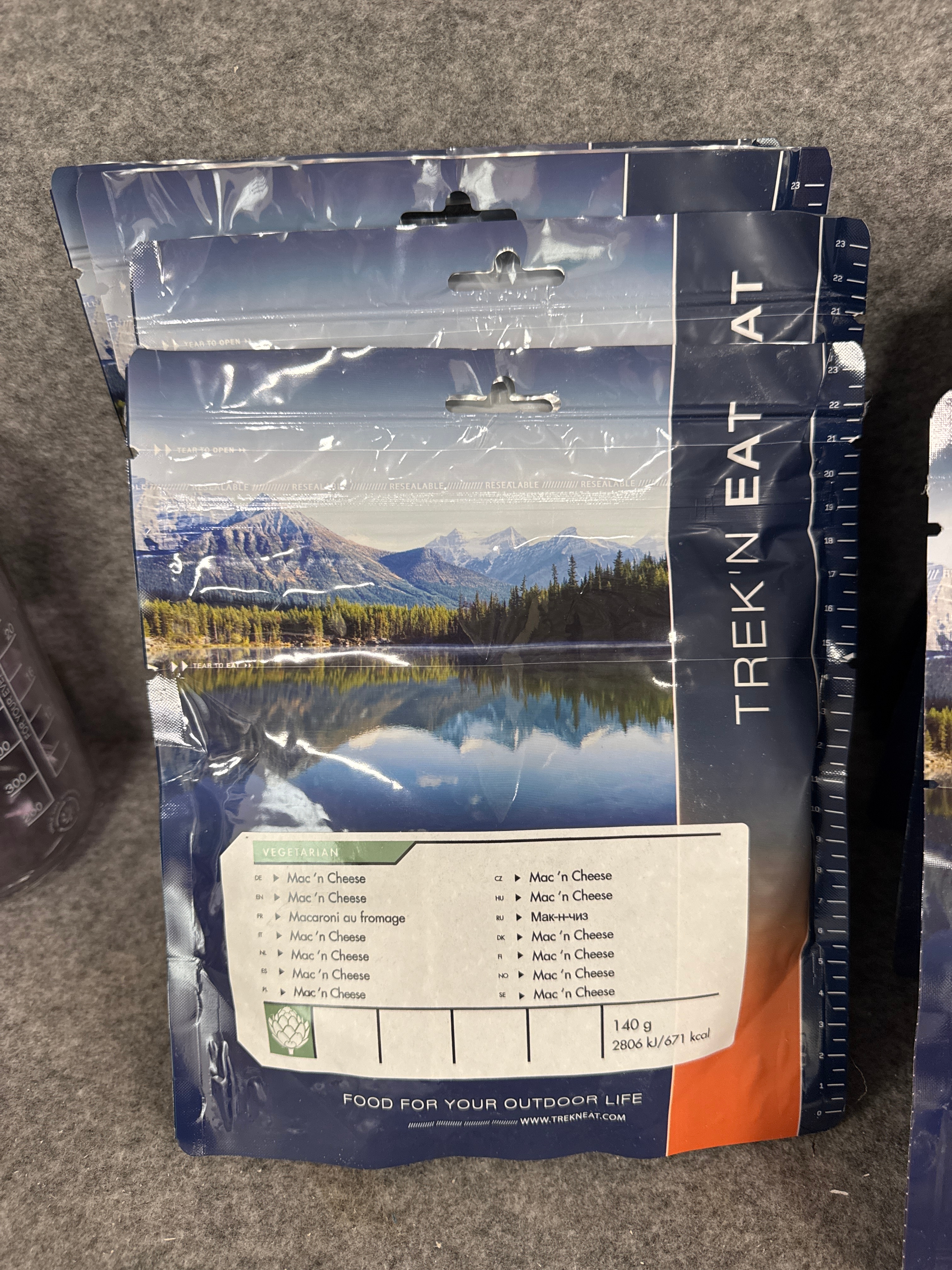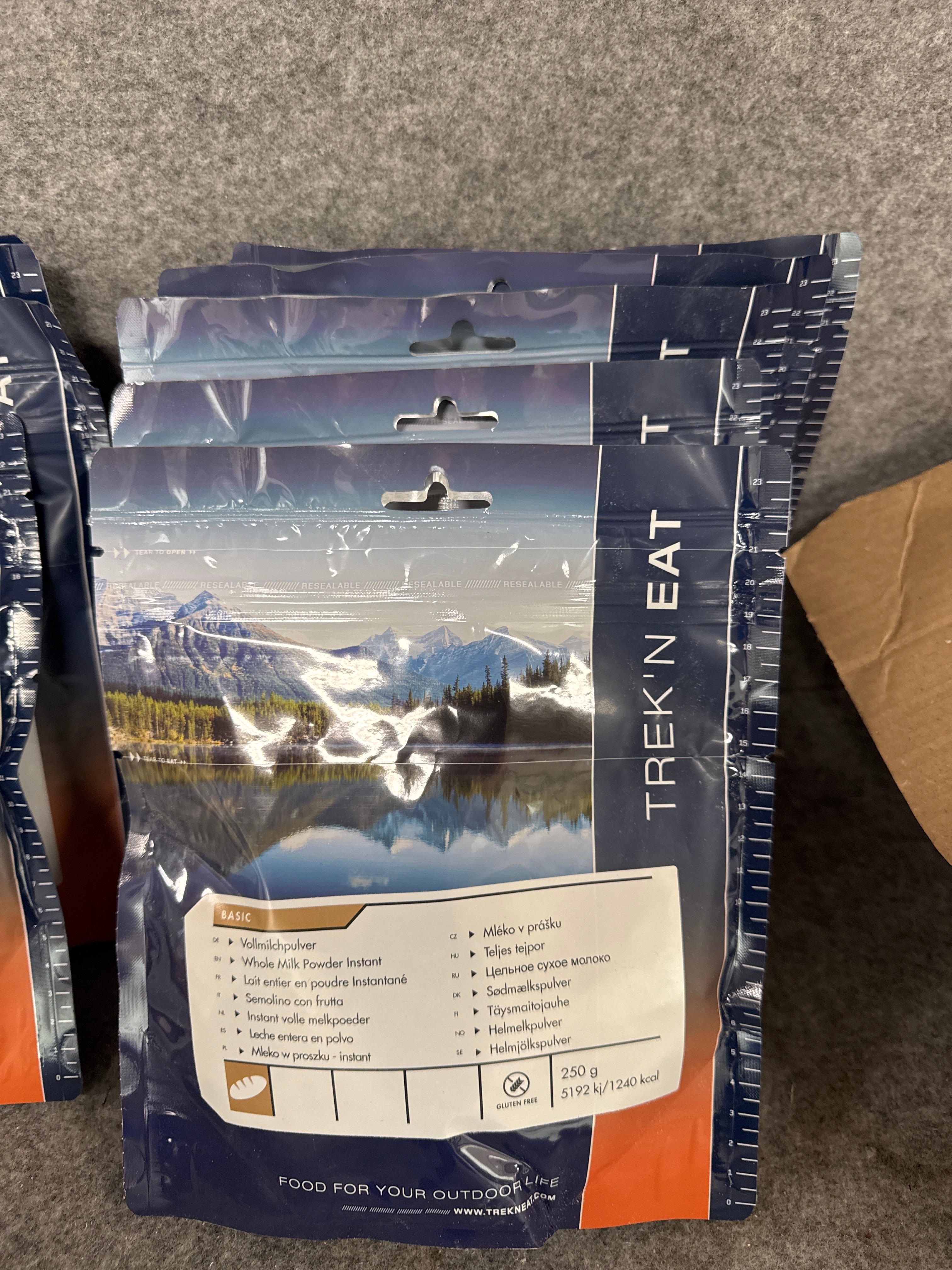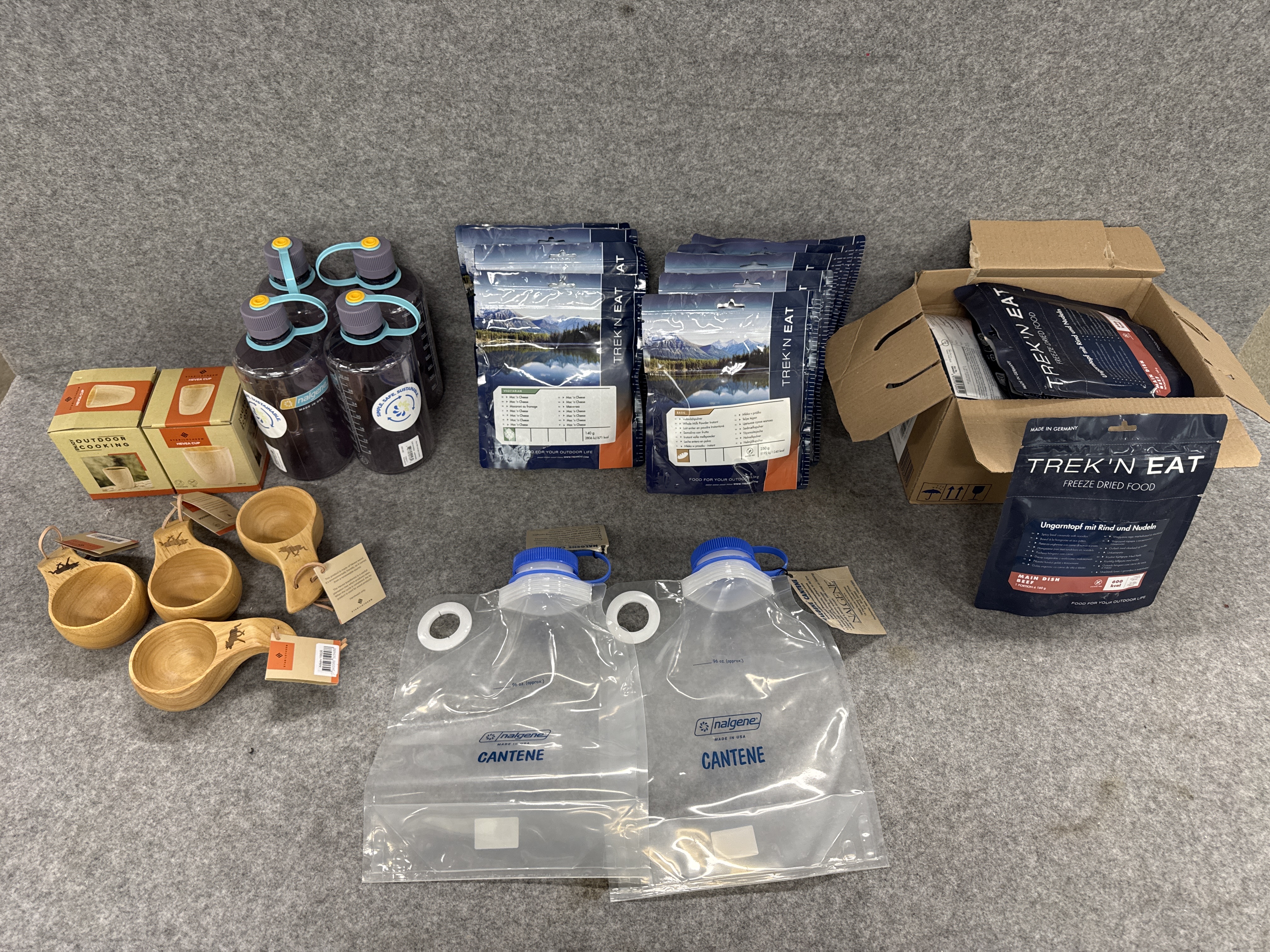 Campingutrustning med frystorkade matpåsar