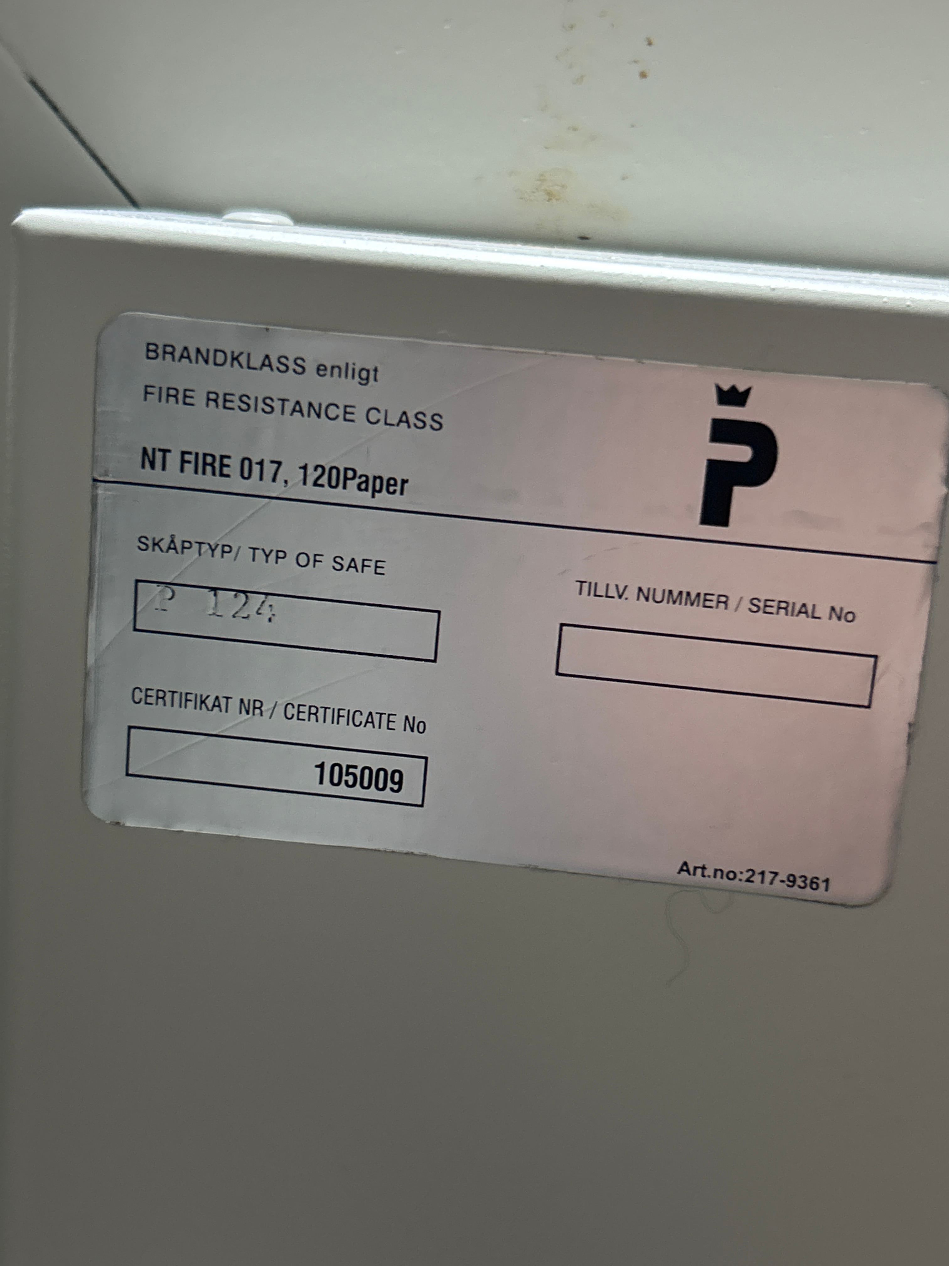 Kassaskåp - P124, NT FIRE 017 (120P)