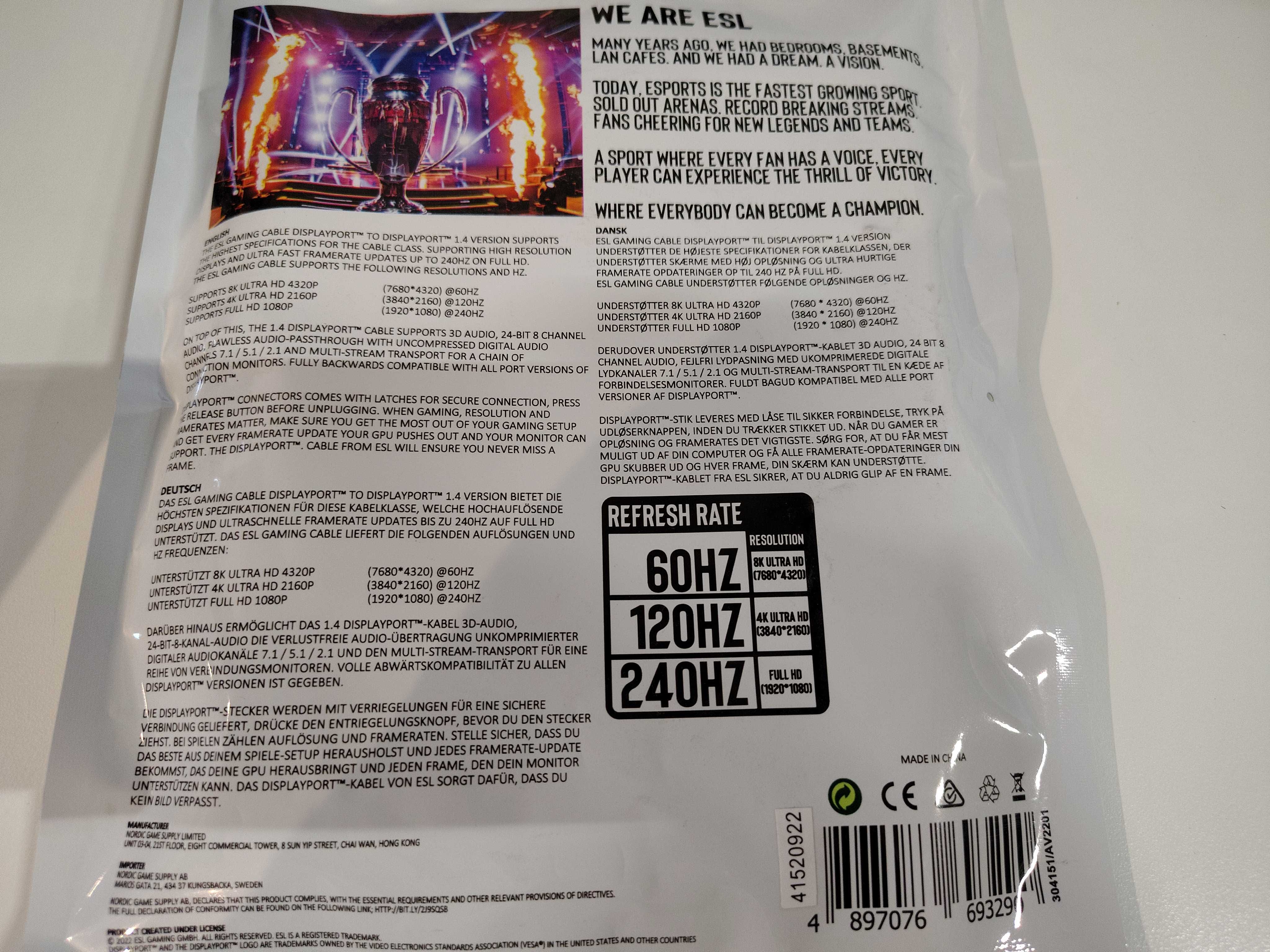 Kabel displayport, 10 st - ESL Gaming, 1 meter